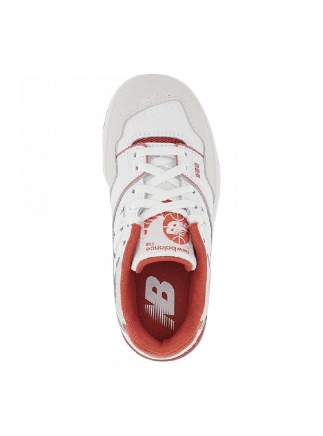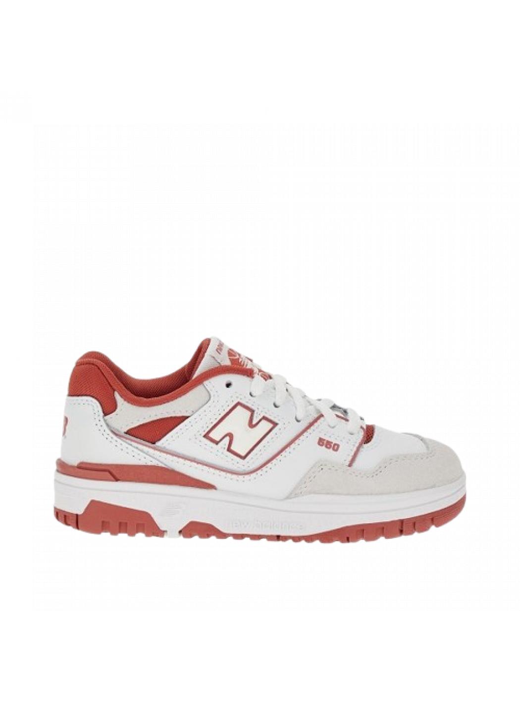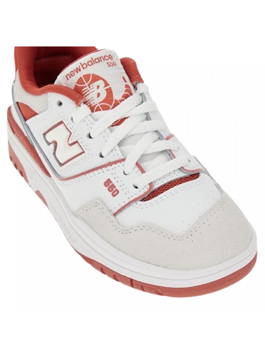 550 baskets en cuir avec des détails en maille et en daim, enrichies par le monogramme N incrusté sur les côtés. Fermeture à cordes, onglet en tissu avec étiquette de logo et logo imprimé sur le talon. Revêtement amovible et semelle intérieure en tissu technique. Semelle en caoutchouc.
