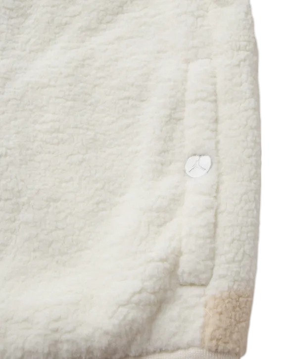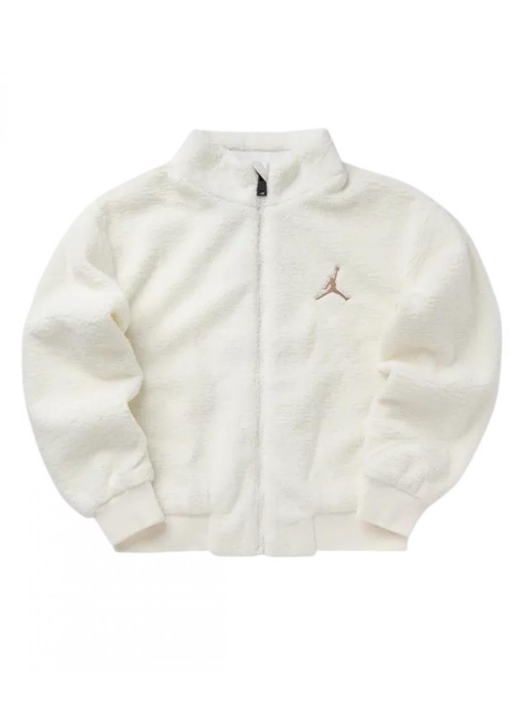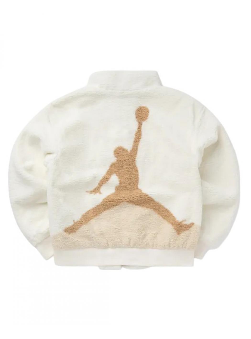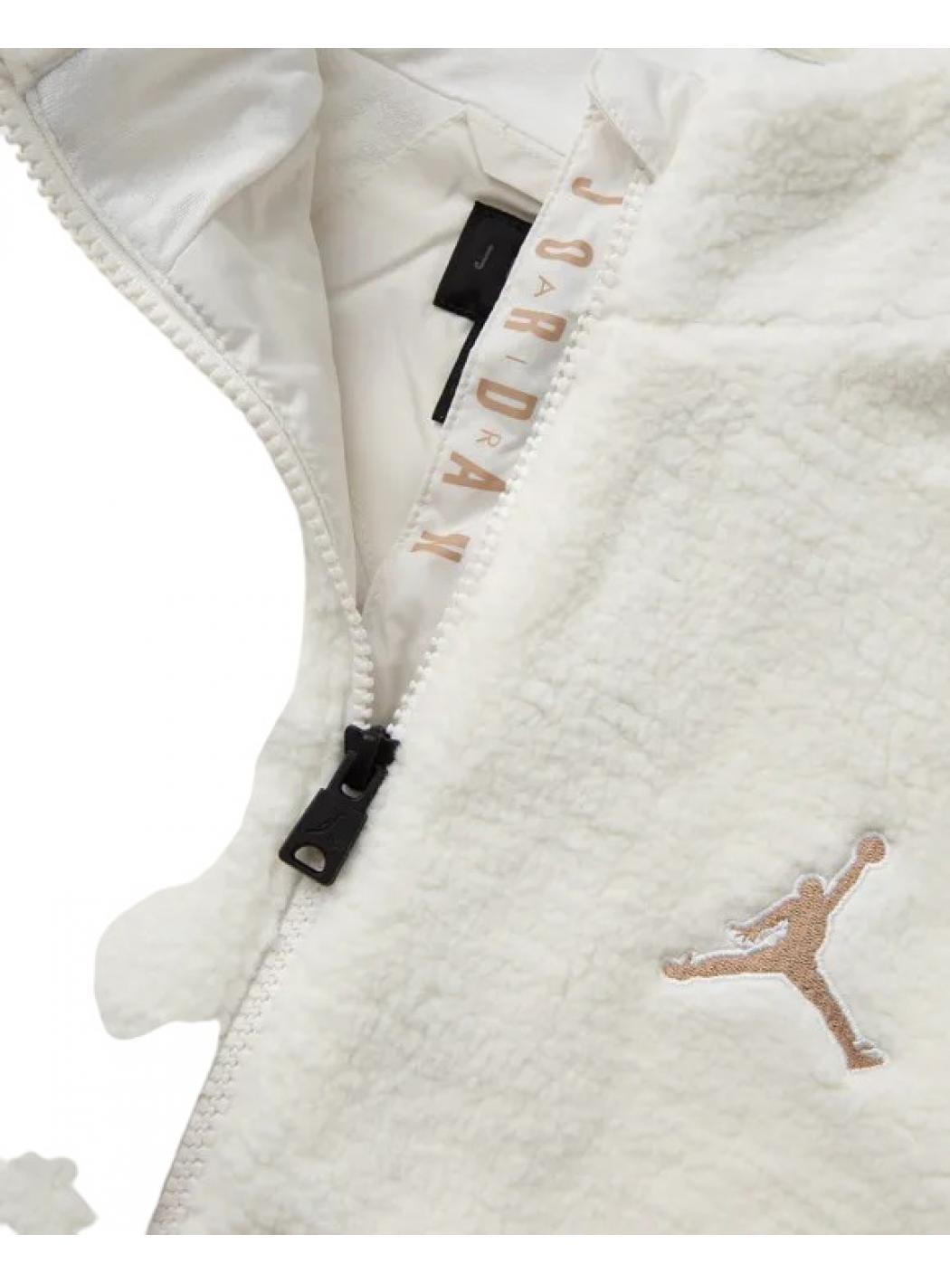 Cette veste Jordan confortable est faite de tissu doux à cheveux longs. Il a une longue fermeture éclair, un haut cou et les épaules descendent pour un ajustement décontracté.