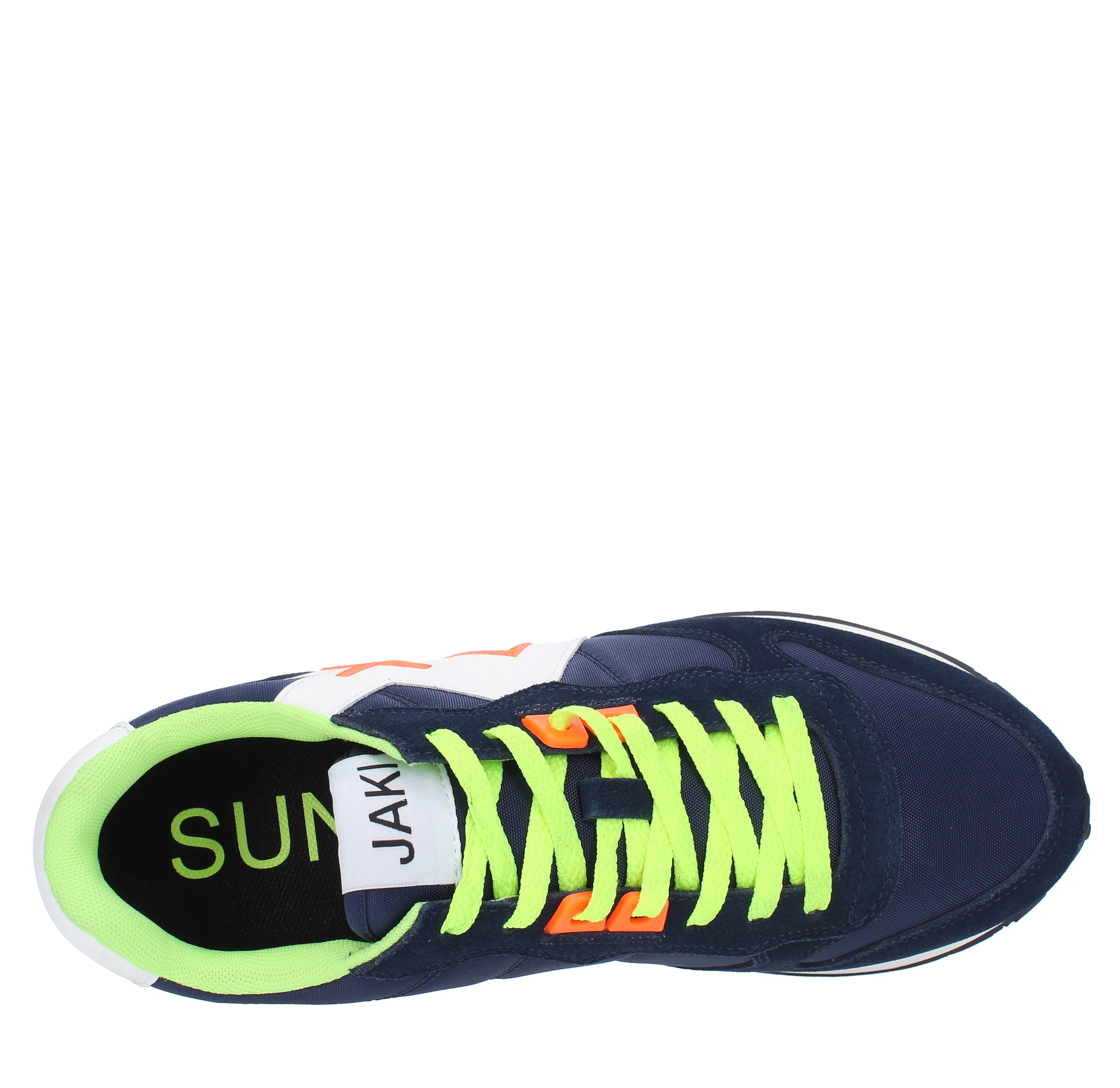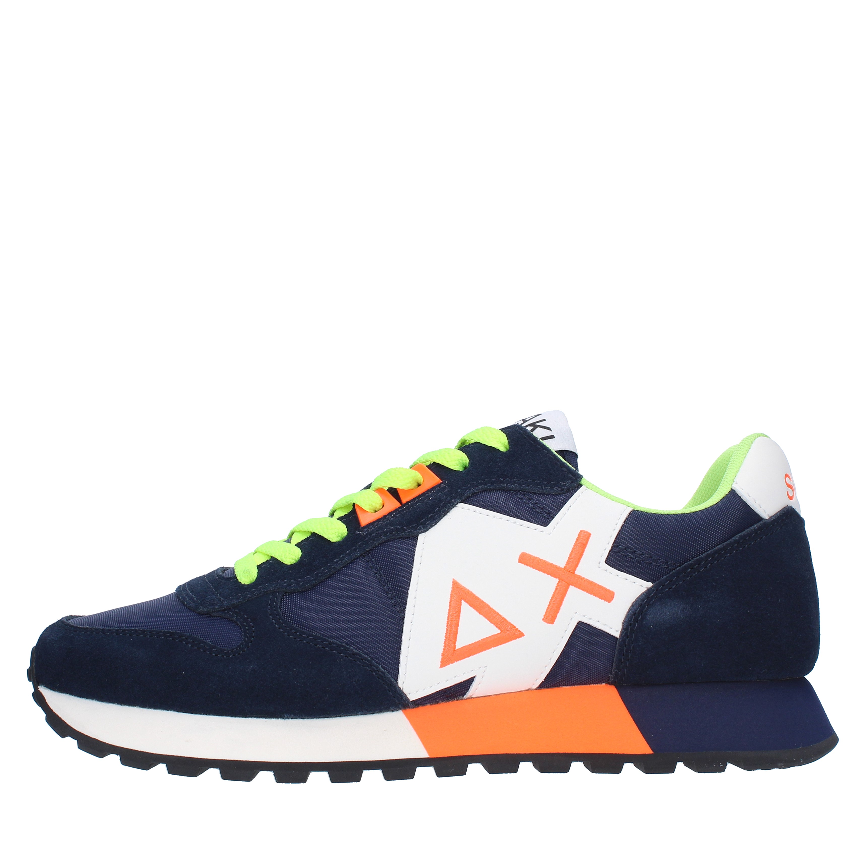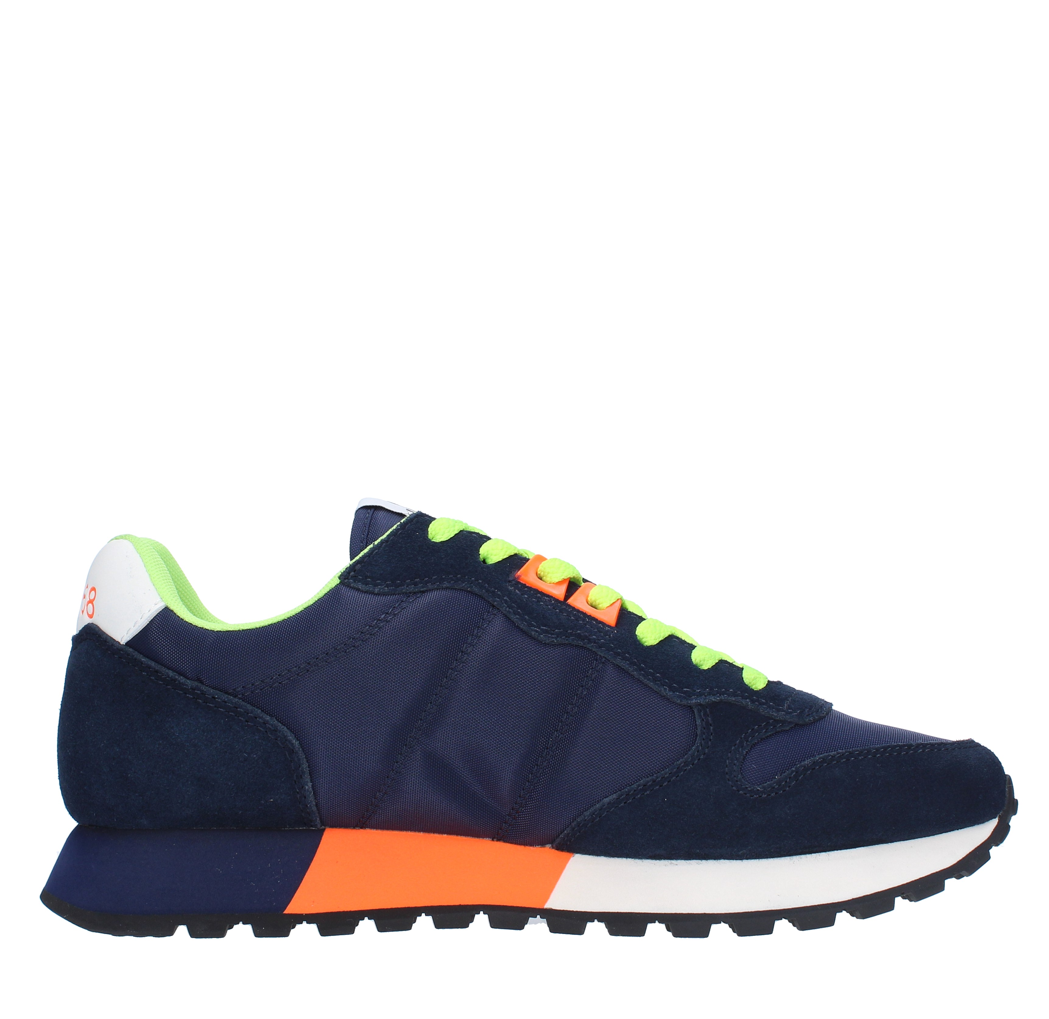 Baskets en cuir suédé et tissu. Semelle en caoutchouc. Dessus en tissu.