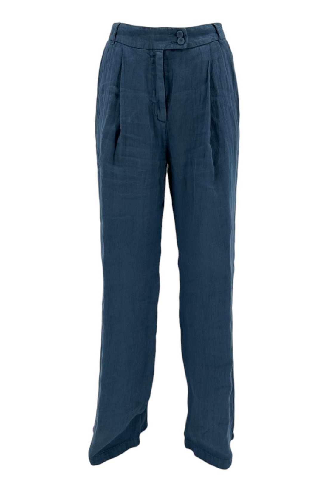 Pantalons 120% Lino. Modèle large jambe, pinces, poches, boucles de taille. C'est normal. Composition: 100% lin.
