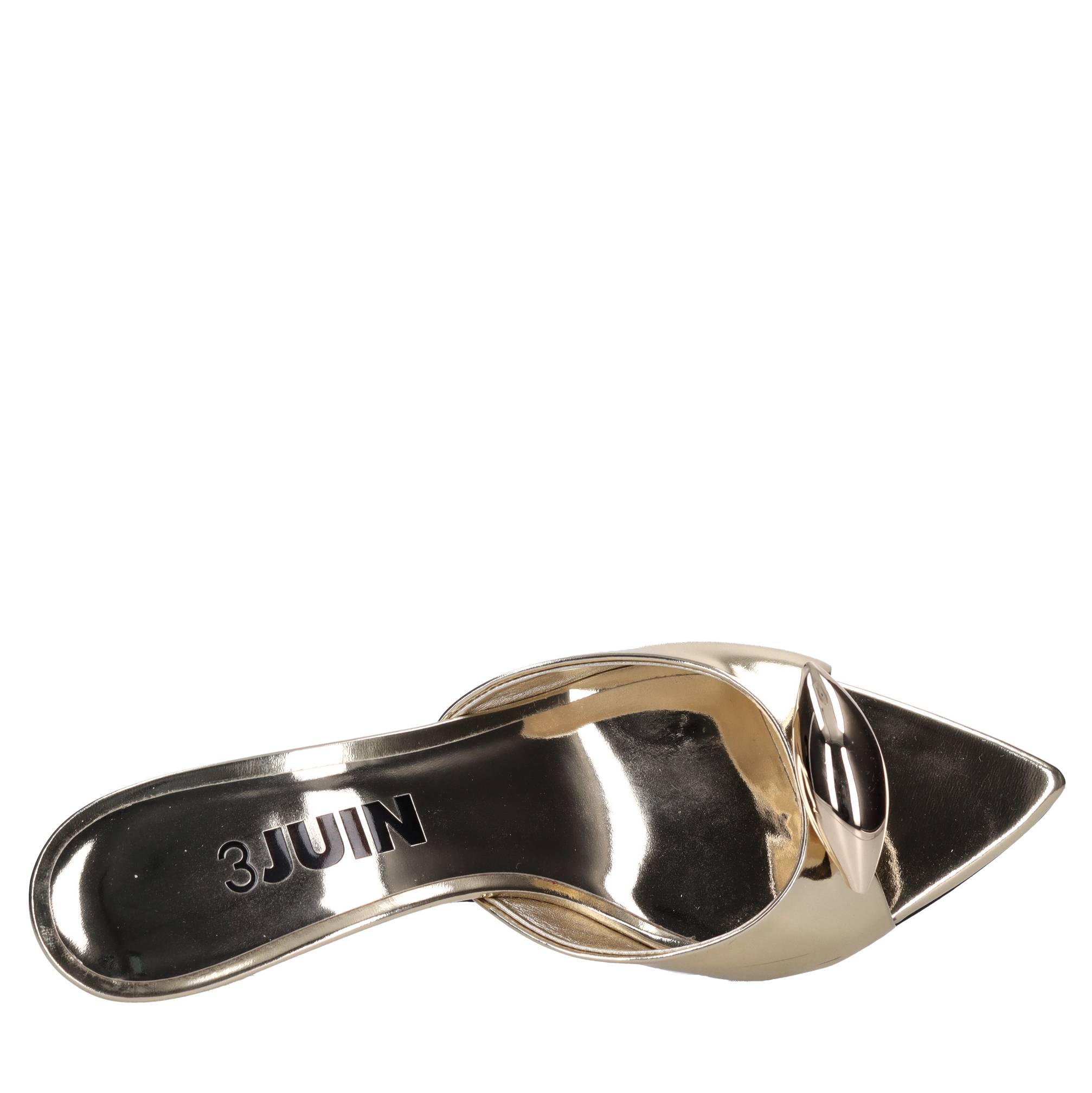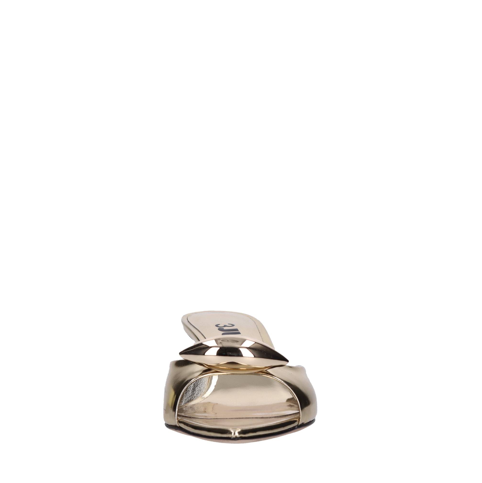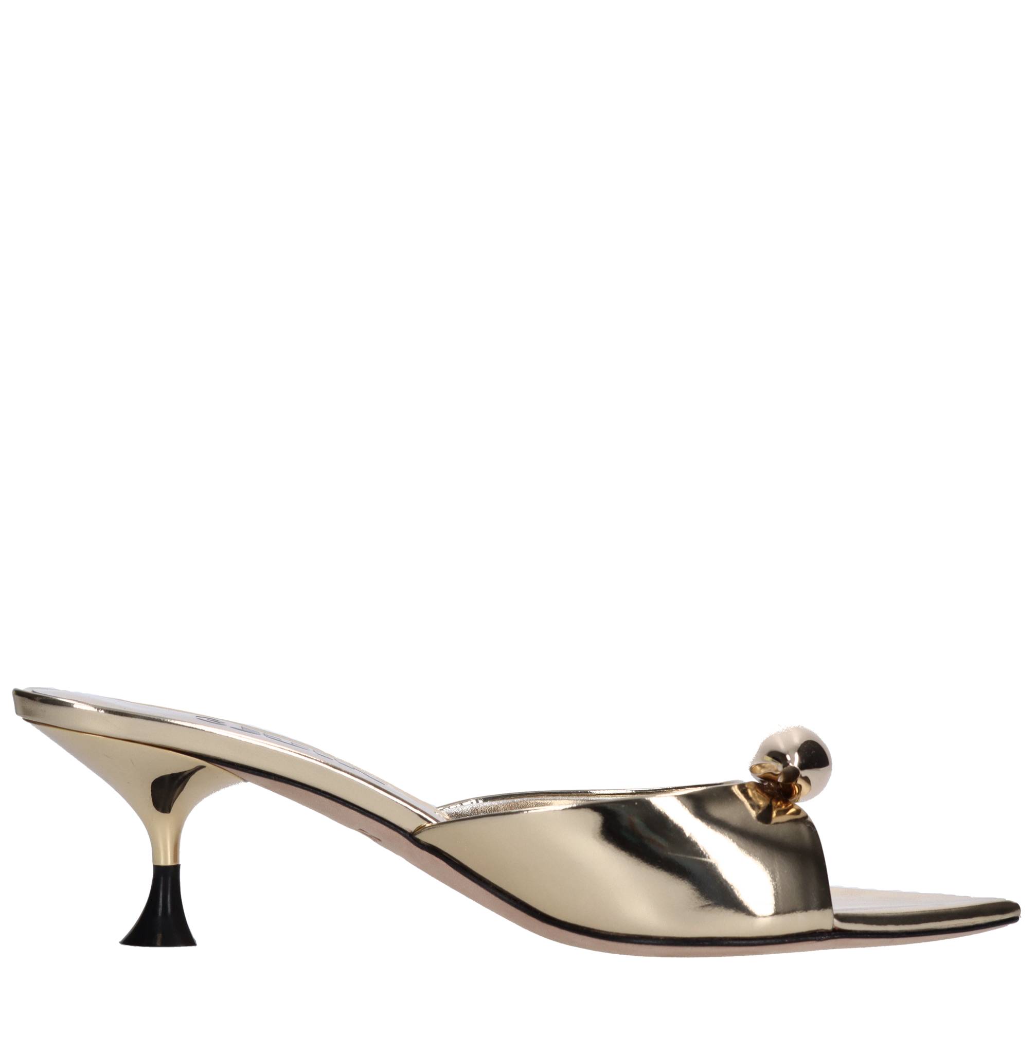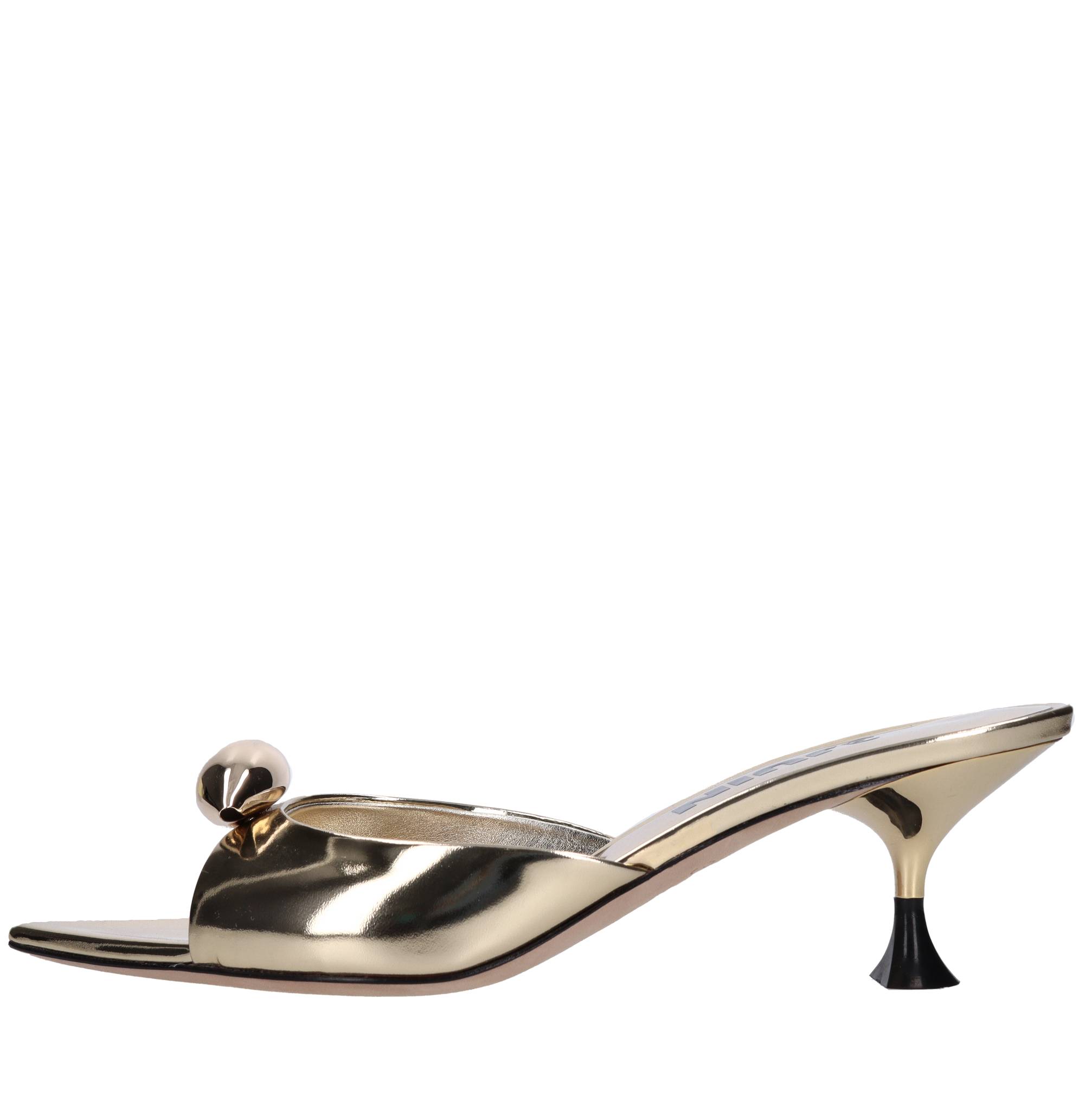 Mules Nora en cuir. Le dessus en cuir. Semelle extérieure en cuir. Talon sculptural bicolore.