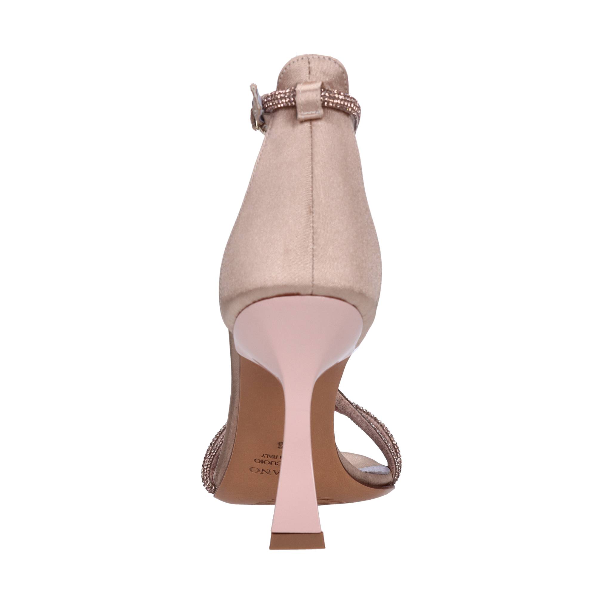 Sandales en satin et en strass. Semelle extérieure en cuir. Supérieur interne de la peau et satin.