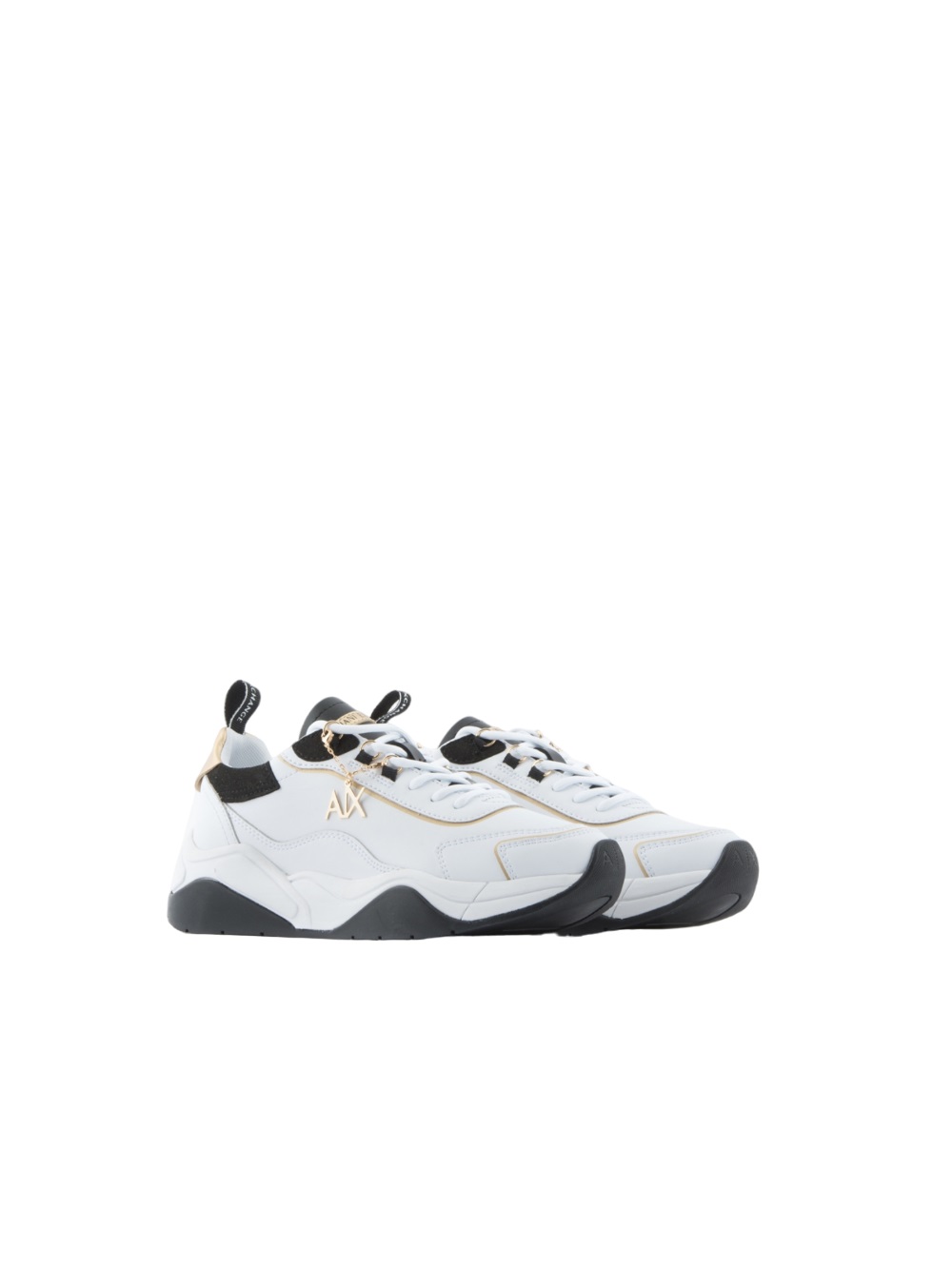 Baskets blanches élégantes pour femmes. Empiècement en daim sur le bout et détail contrasté noir et doré sur le talon. Semelle ergonomique, fermeture croisée pour assurer une plus grande stabilité. . Tige en cuir et tissu, intérieur en cuir et tissu et semelle en caoutchouc.