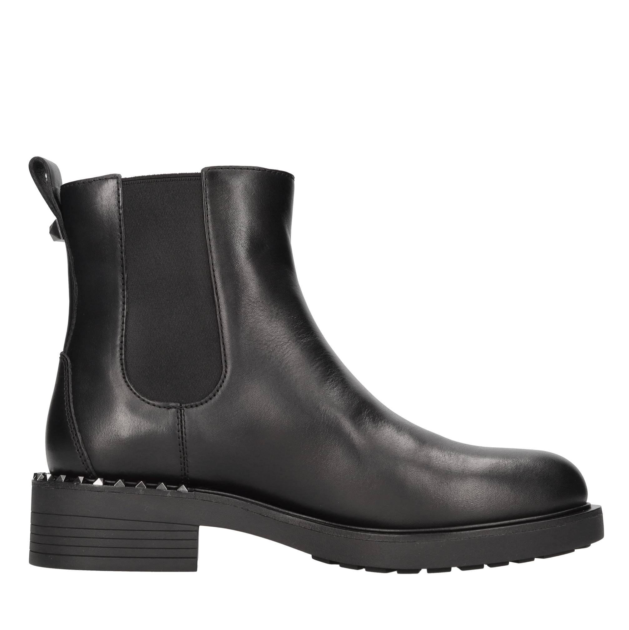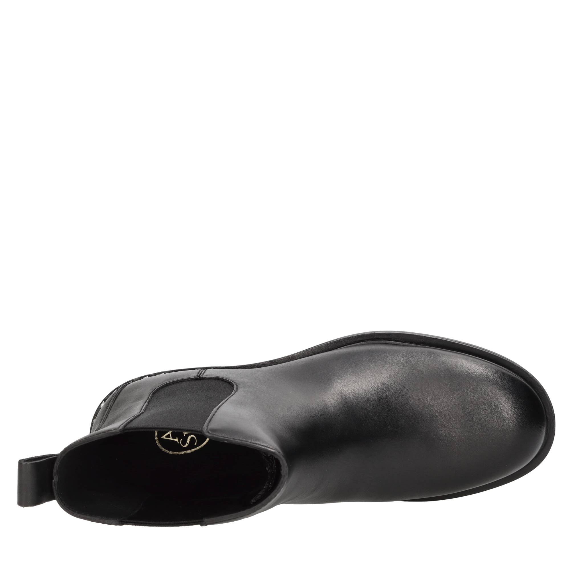 Bottines en cuir Beatles. Elastiques latéraux. Semelle extérieure en caoutchouc. Dessus intérieur en cuir.