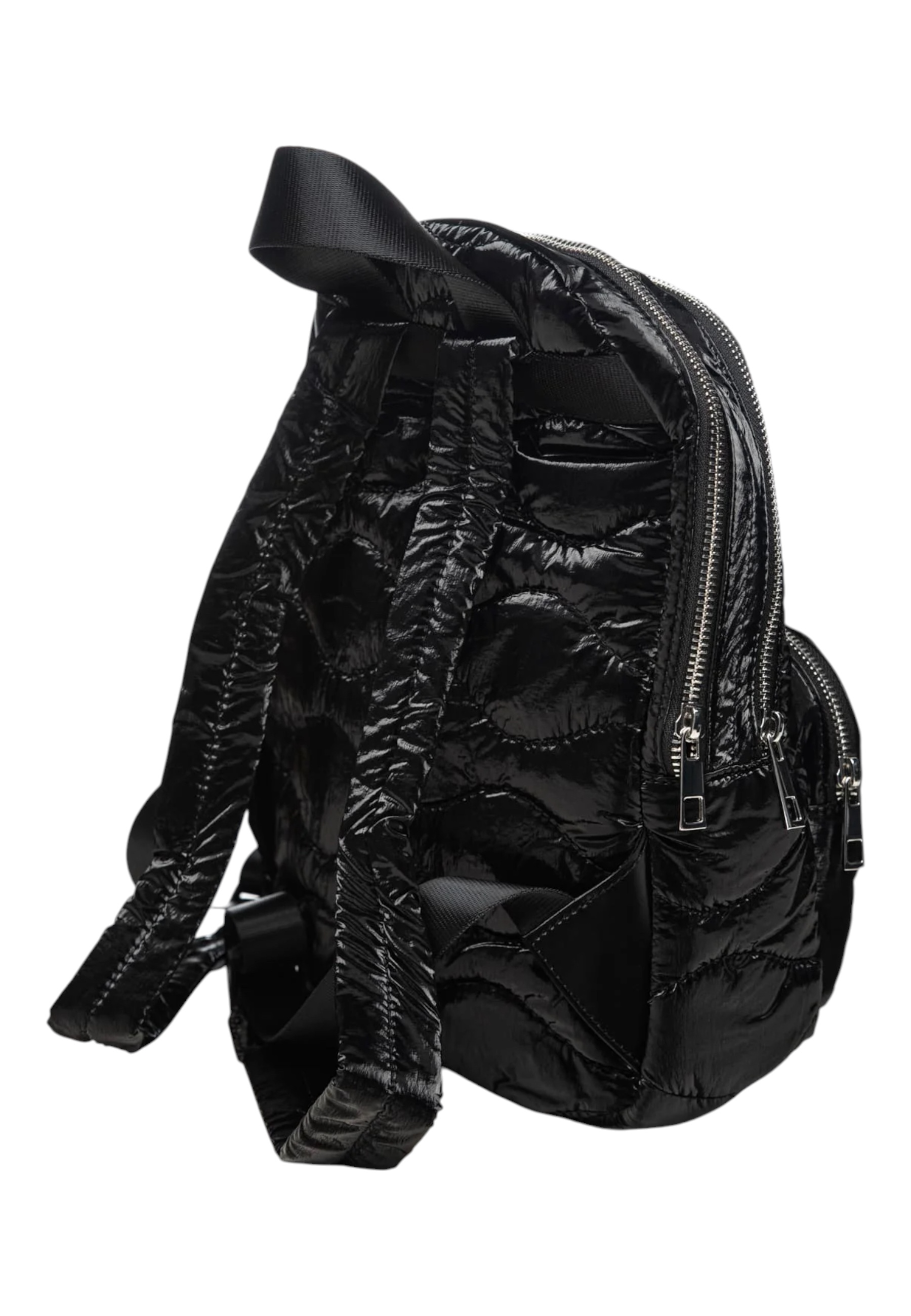 Sac à dos Blauer Wave03 pour les femmes en tissu matelassé semi-brillant en nylon onde, petite version avec design clouté, double compartiment et avec poche extérieure fermée par zip, logo de bouclier avant en micro-trass, poignée supérieure et bandoulières moyennes réglable en longueur
