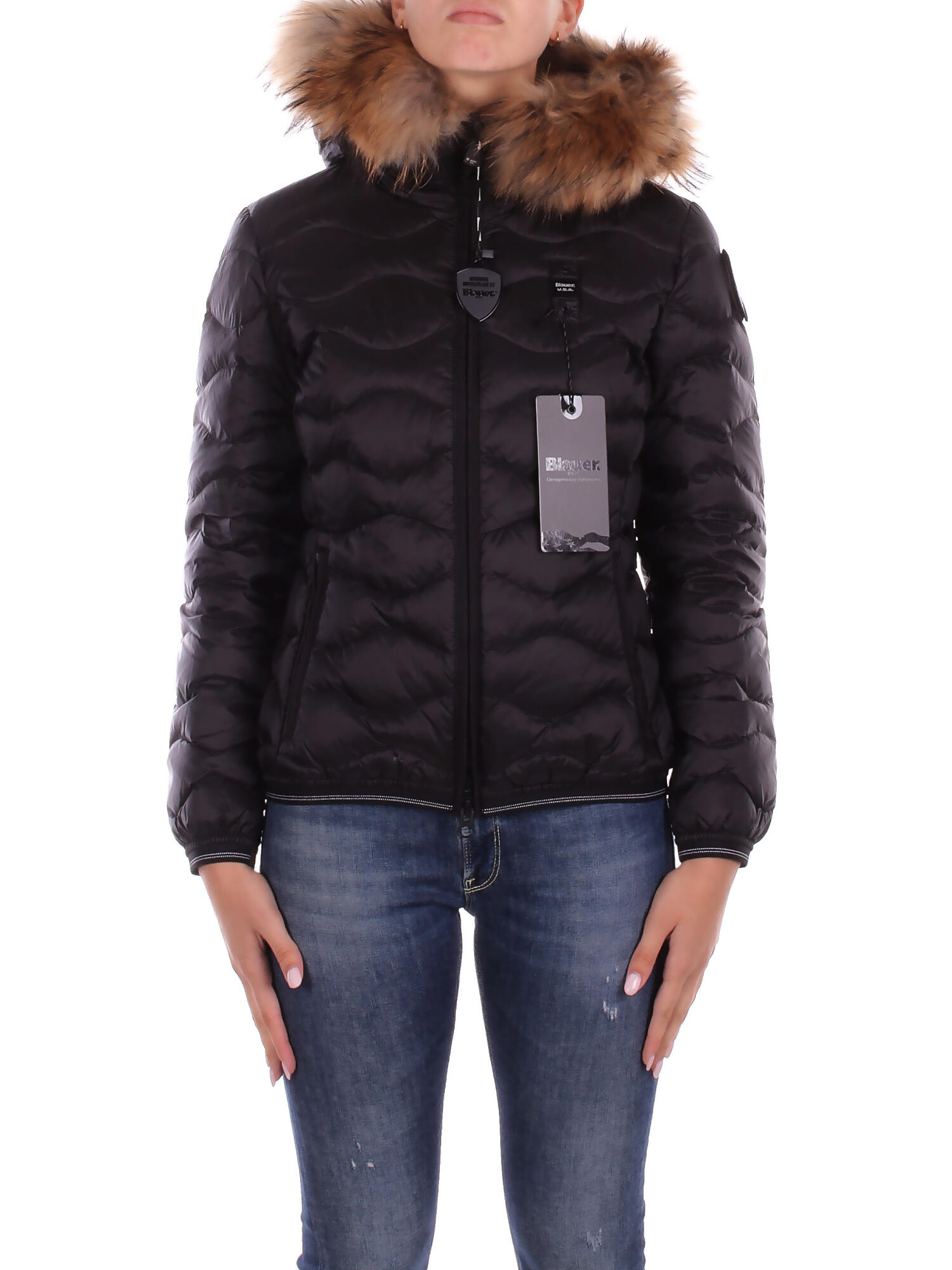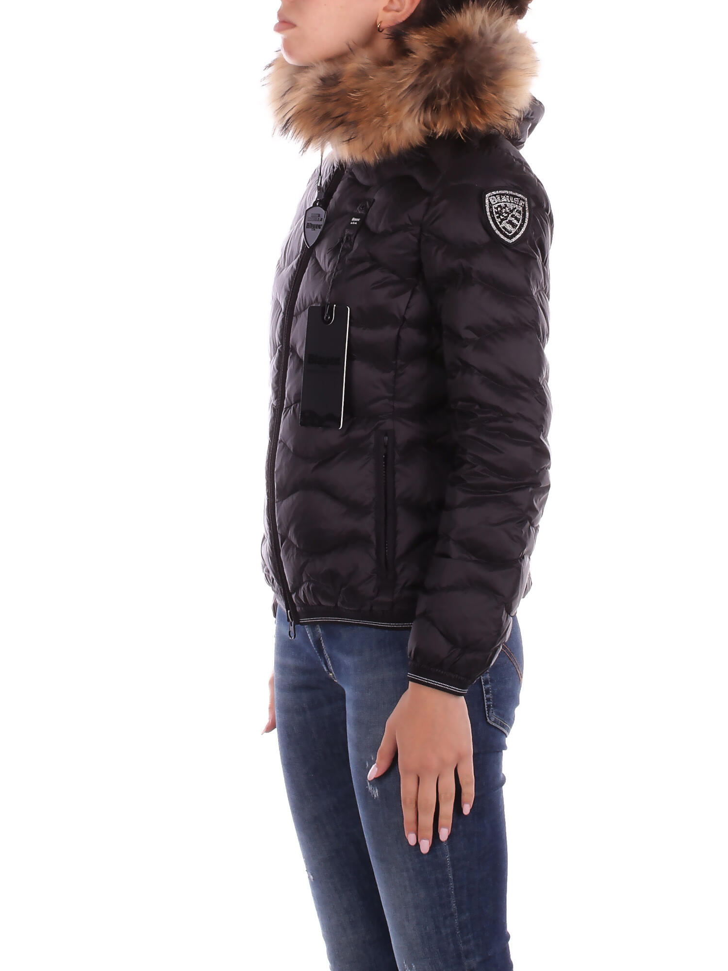 Veste à capuche pour femmes Blauer Fermeture zippée logo avant Deux poches latérales Hauteur du modèle : 1,76 cm Taille du tissu: S ita Fit: slim Composition: 100% nylon, 90% duvet de canard 10% plume Partie Numéro: 25wbldc03096 006047999ei