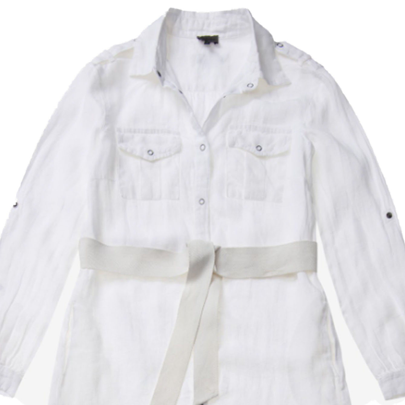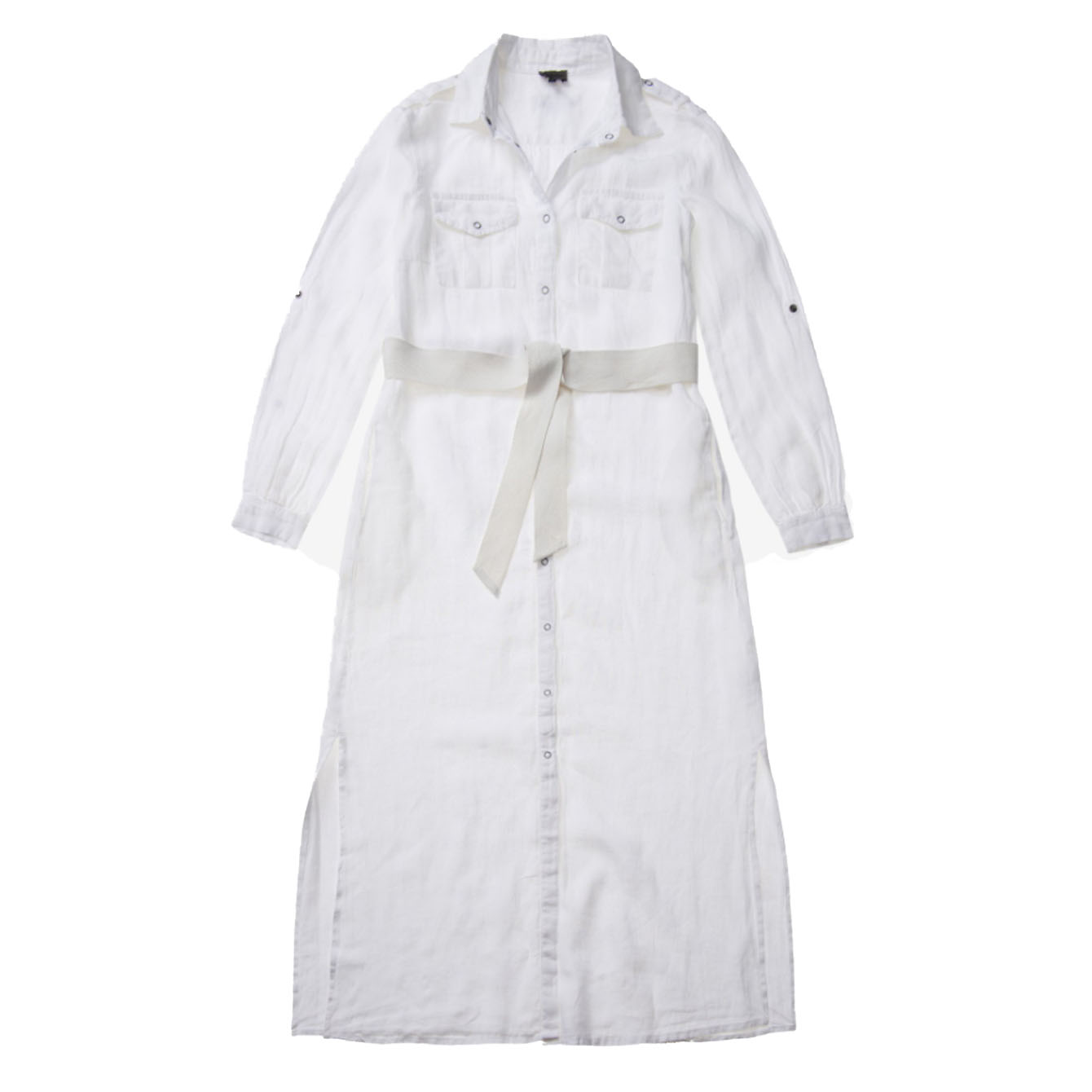 Robe 100% lin avec col pointu et manches longues.