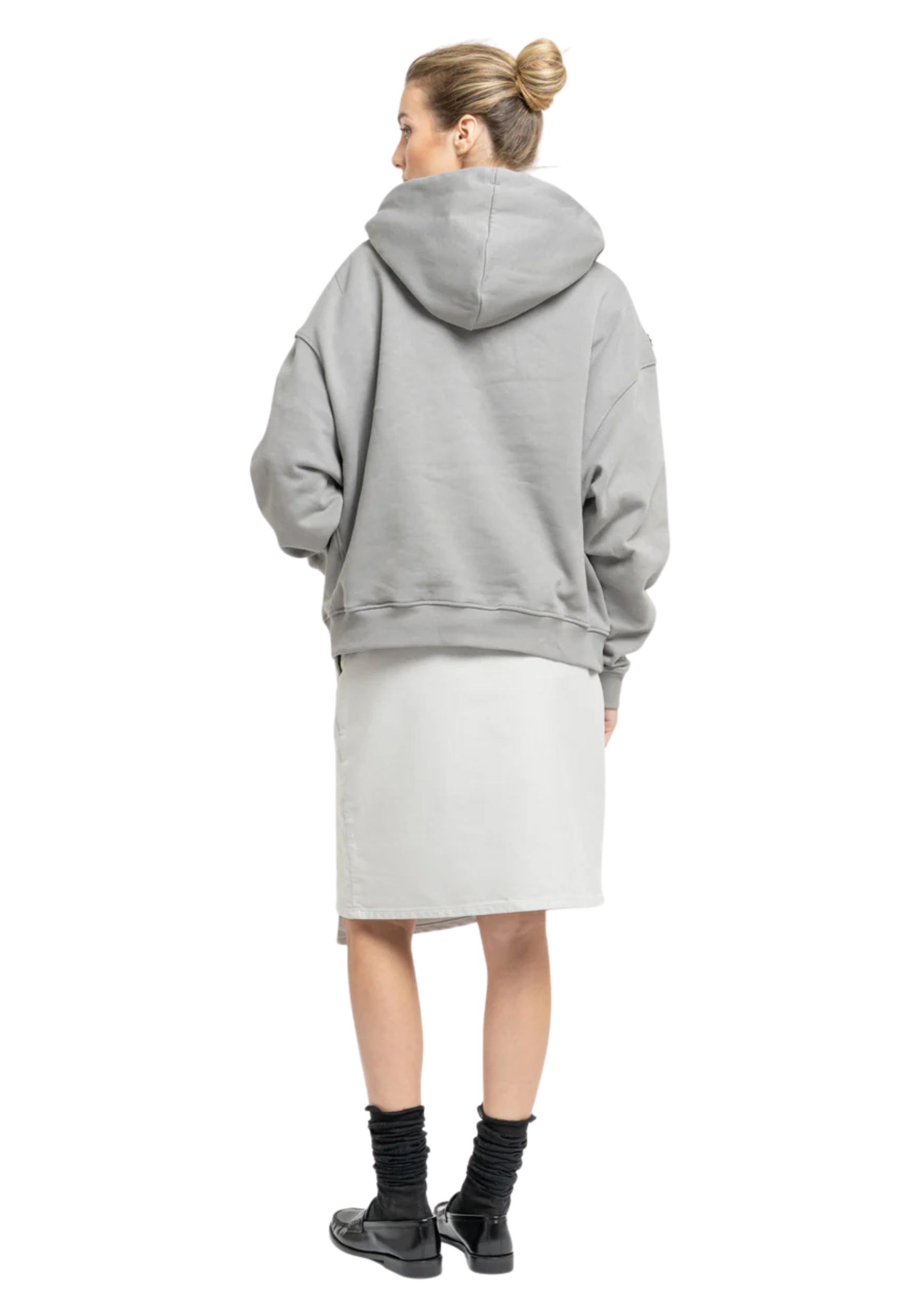 Hoodie de couleur grise. Sweat-shirt en coton, gaze, gris, capuche avec cordon de serrage, poches flanquées, poignets et ourlet côtelé, manches de chauve-souris, épaules en bas, micro logo imprimé