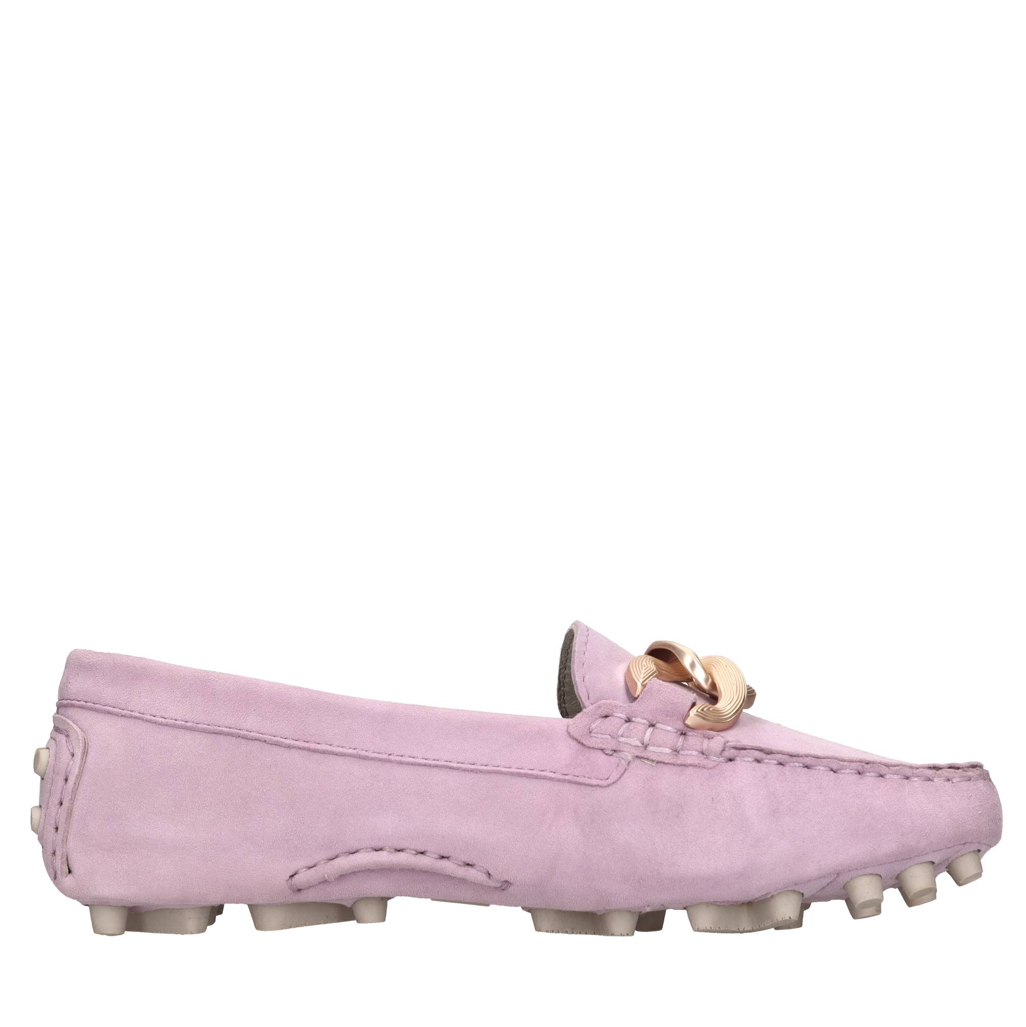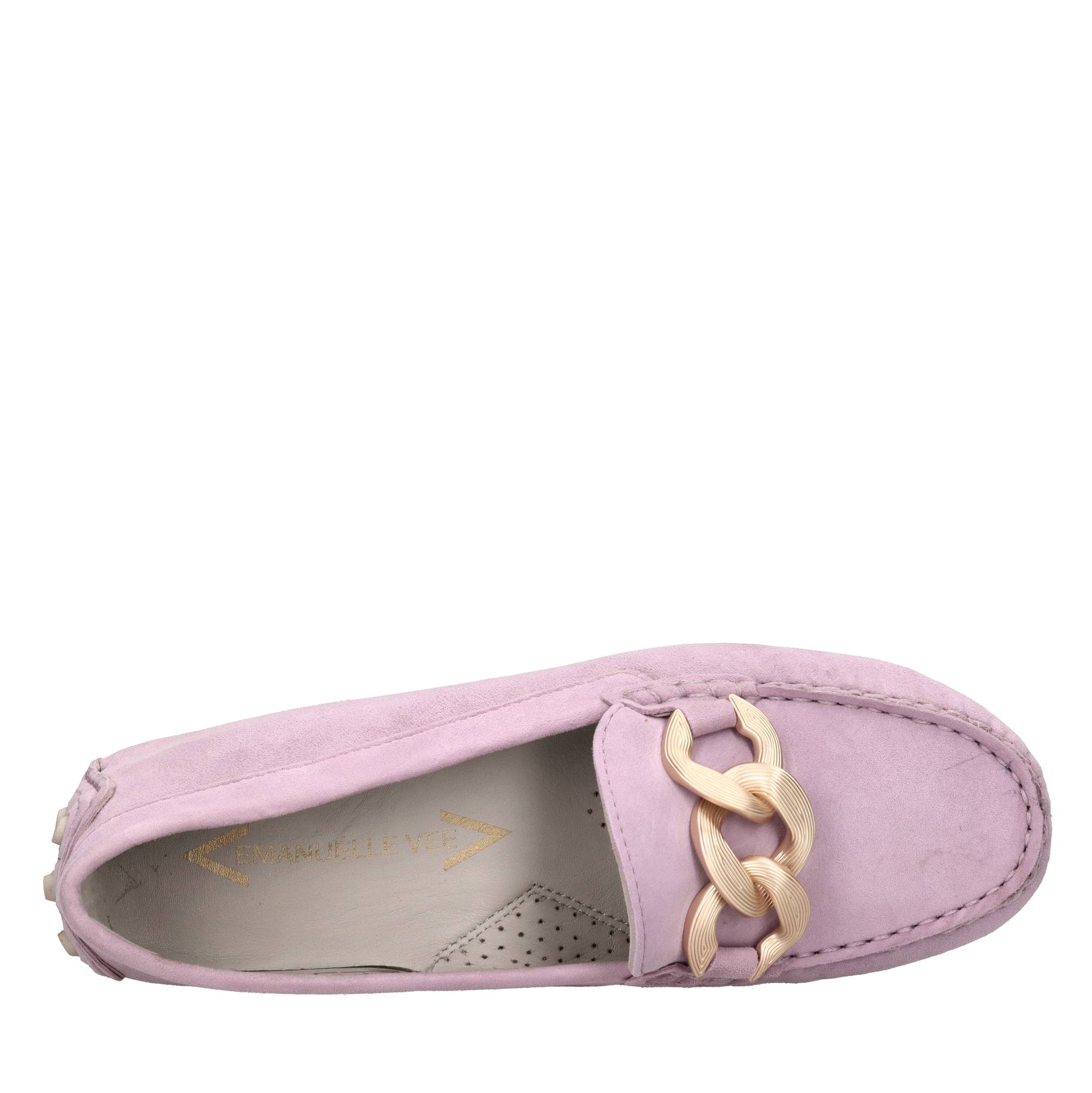 Mocassins en daim. Applications couleur or. Le dessus en cuir. Semelle extérieure en daim et caoutchouc. Talon interne: 2cm.