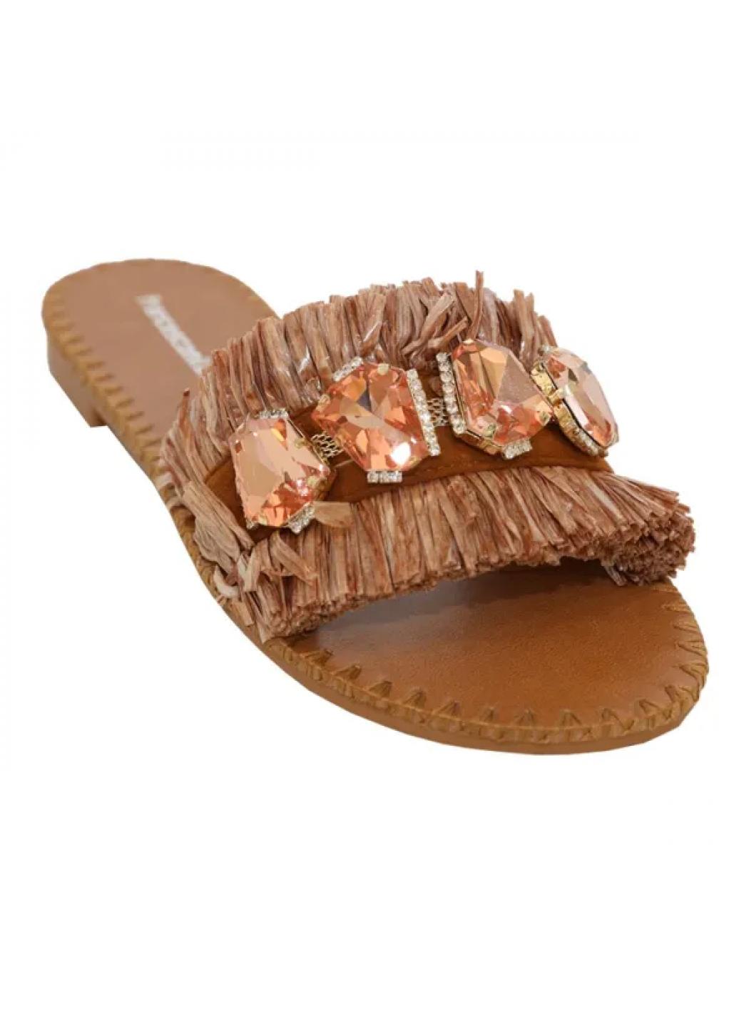Pantoufles refroidies avec des pierres pailletées. Un accessoire unique pour les femmes uniques.