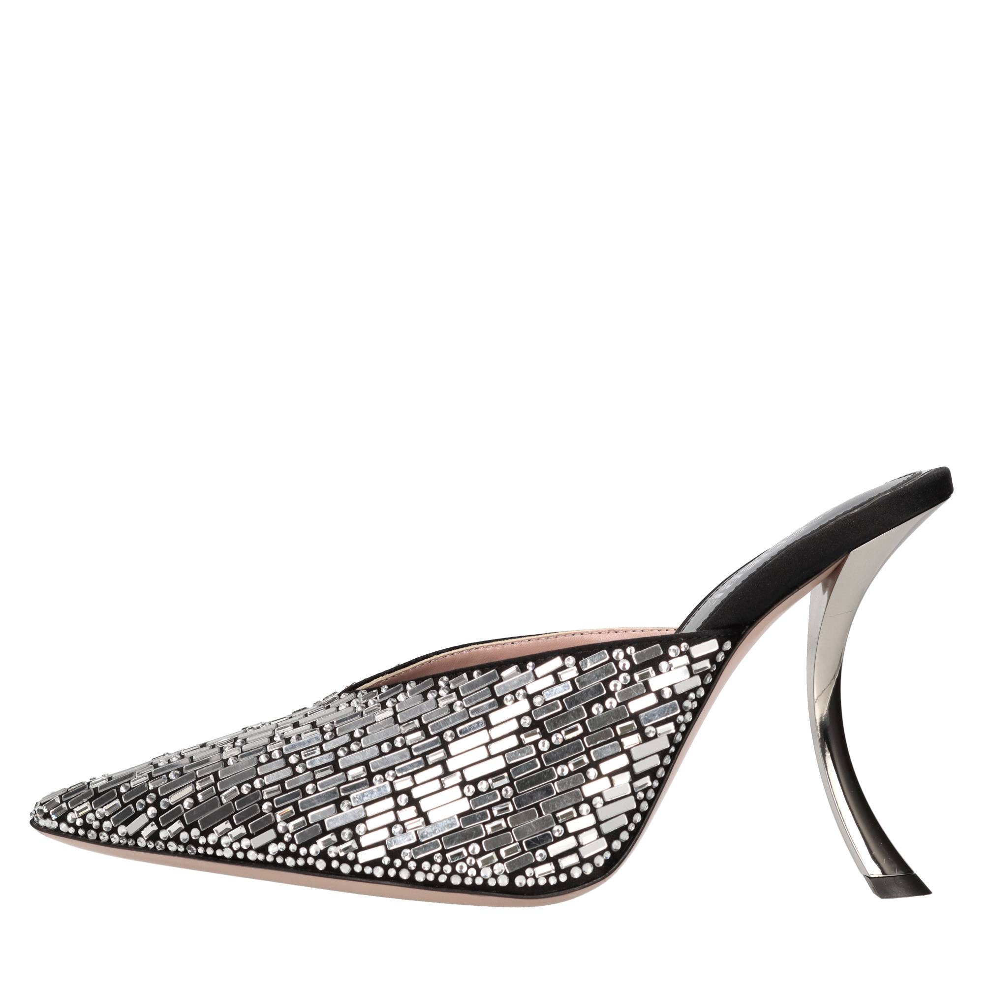 Mules Paris 105 en satin et strass. Semelle extérieure en cuir. Le dessus en cuir.