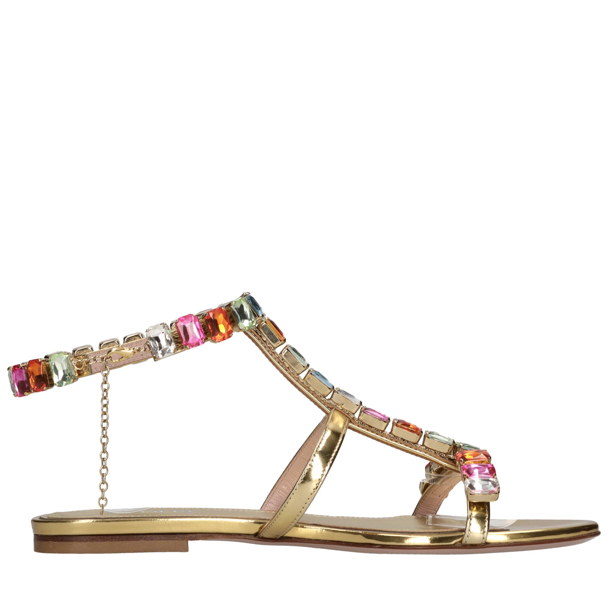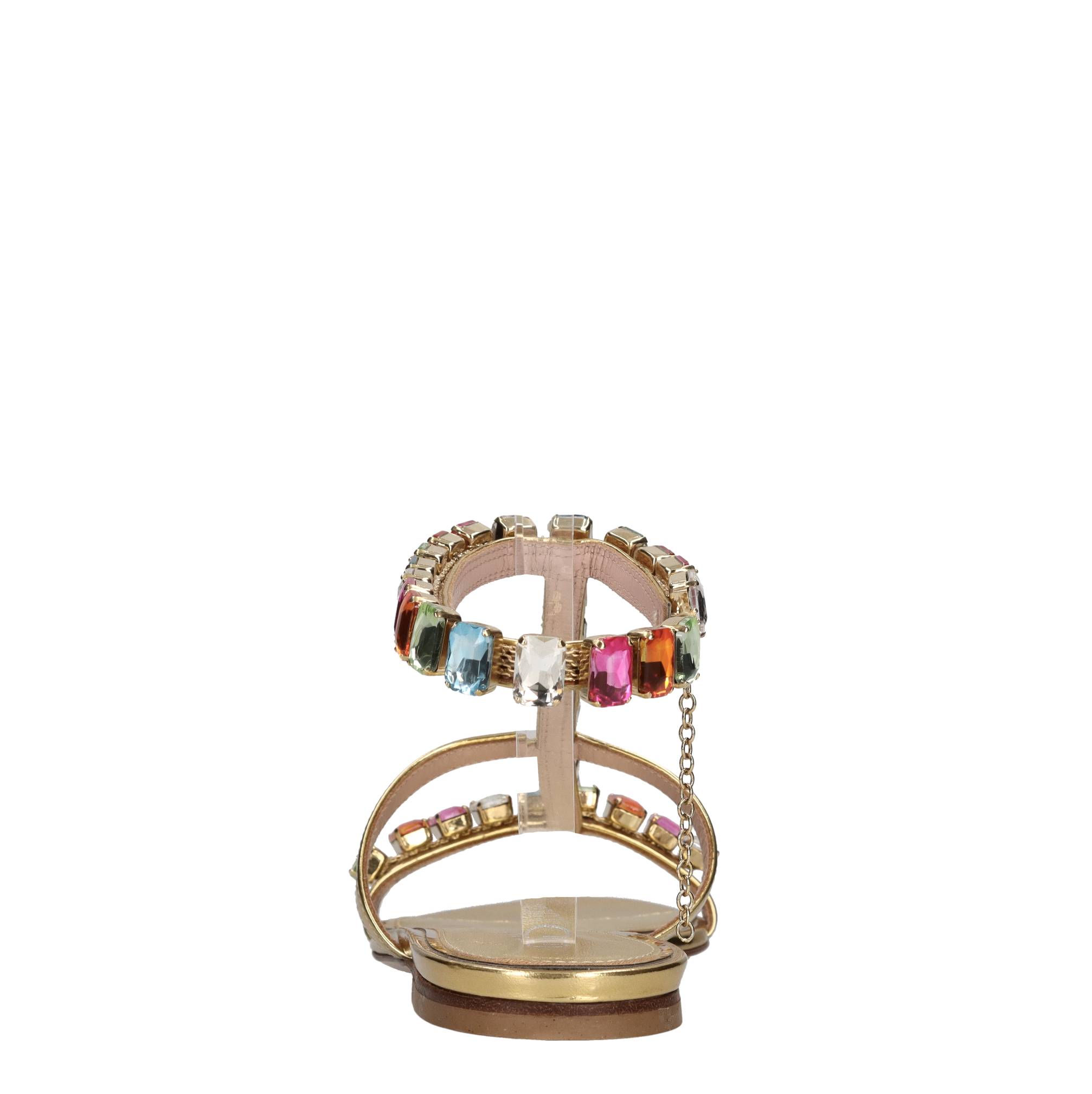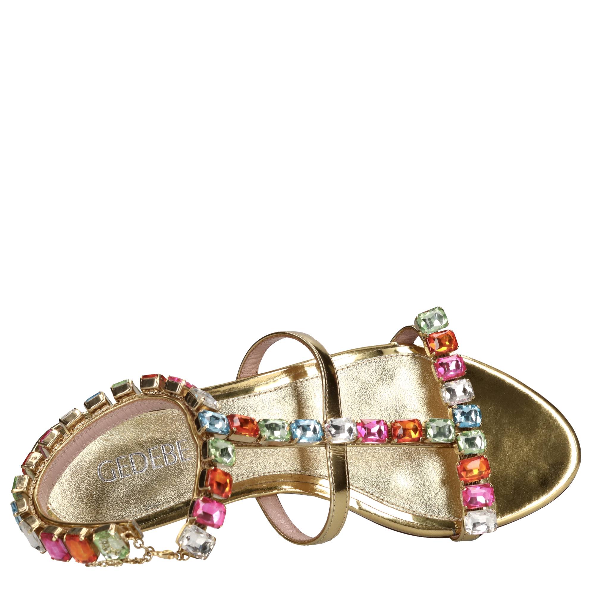 Sandales plates Ellen en cuir. Castons de pierres multicolores appliqués. Semelle extérieure en cuir. Le dessus en cuir. Des échantillons.