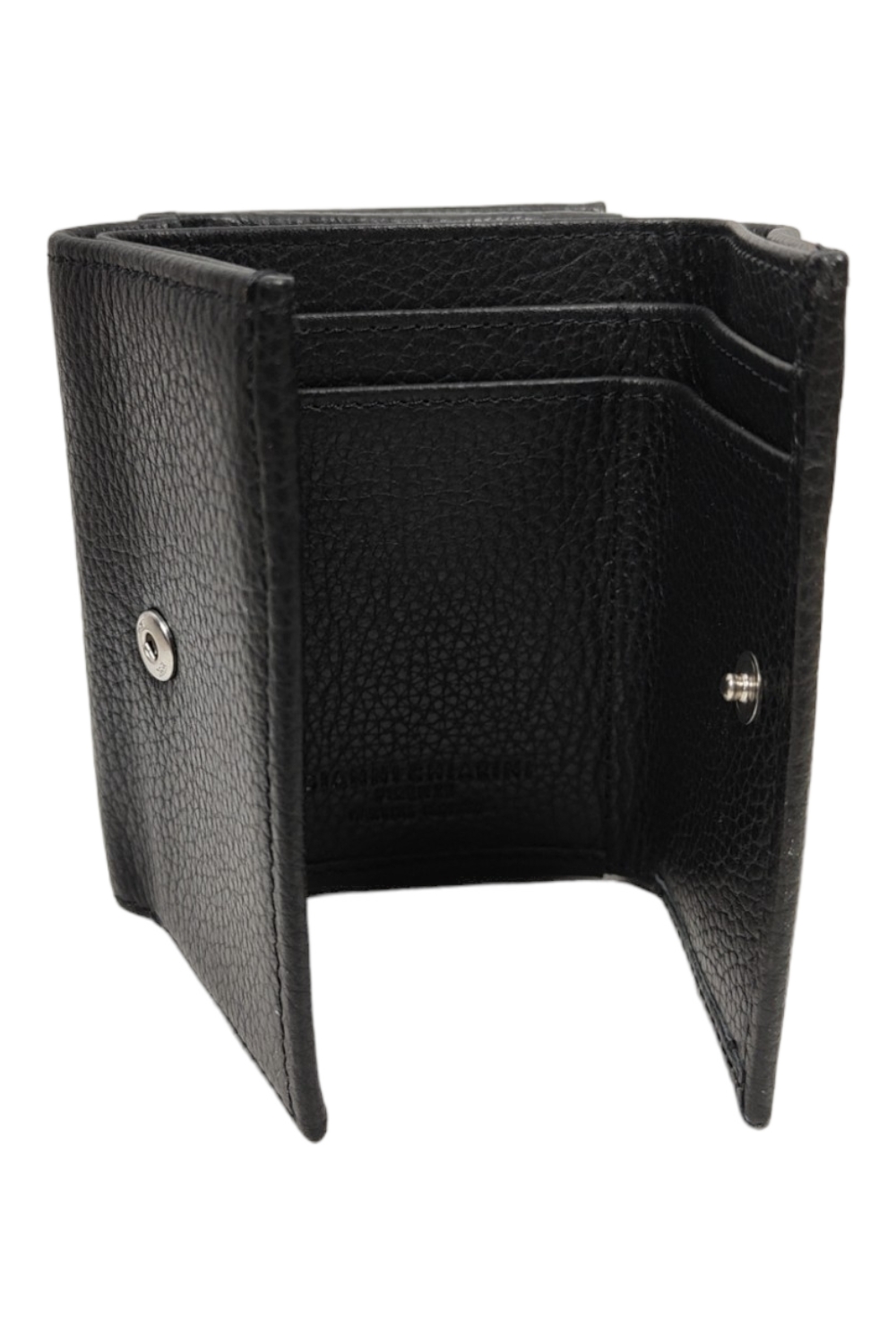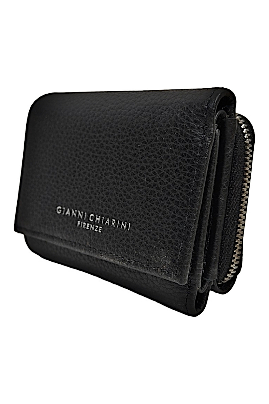 Portefeuille triple Gianni Chiarini, en dollar grain, poche zippée, inserts et poches plates à l'intérieur, doublure en tissu. Dimensions:10x8x3 cm. Fabriqué en Italie.