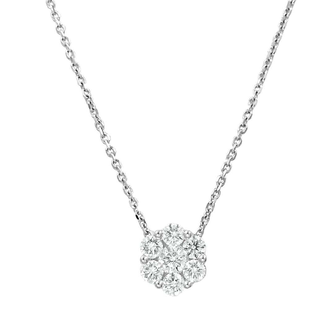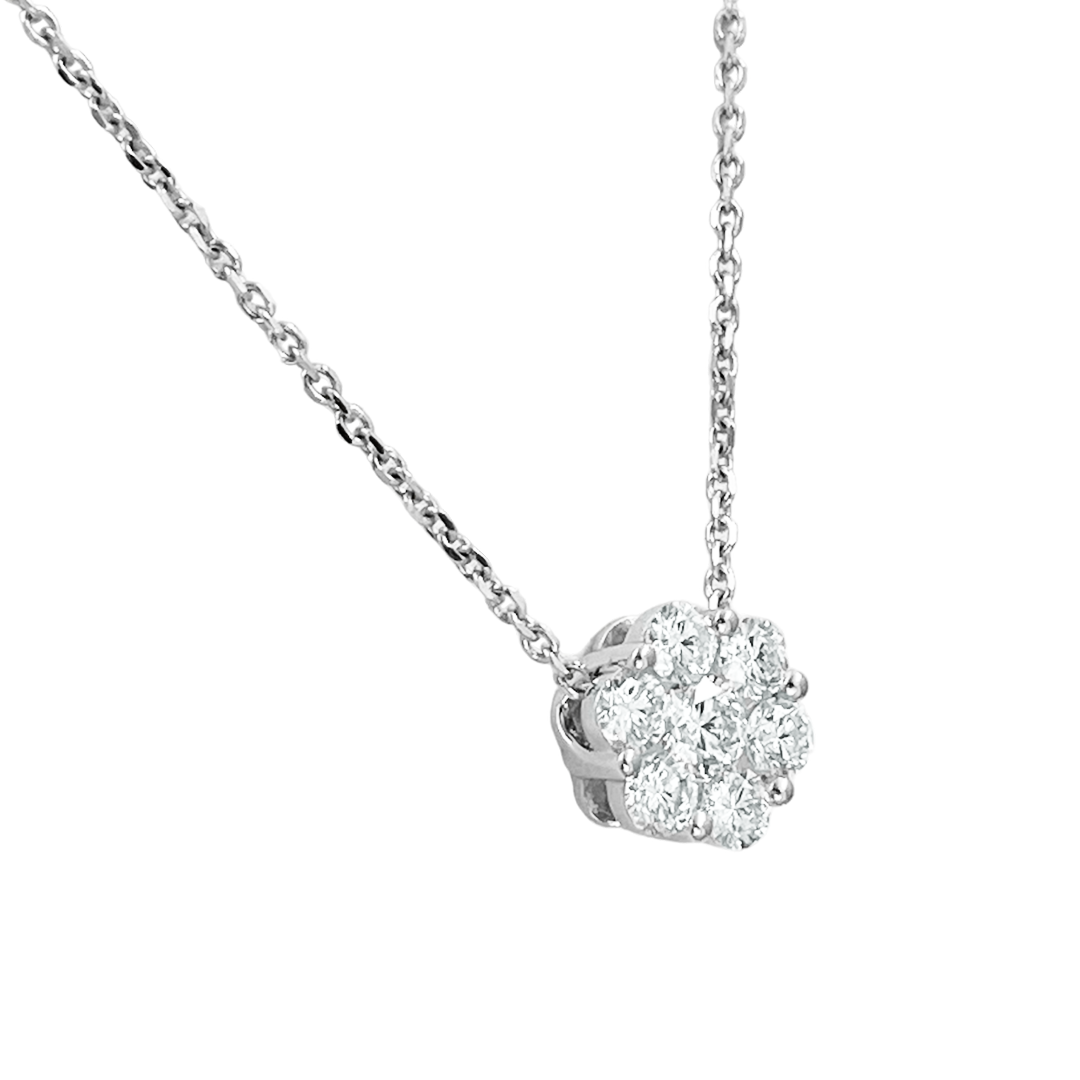 Collier en or blanc 750% Composé par un pendentif avec diamants de coupe brillant.