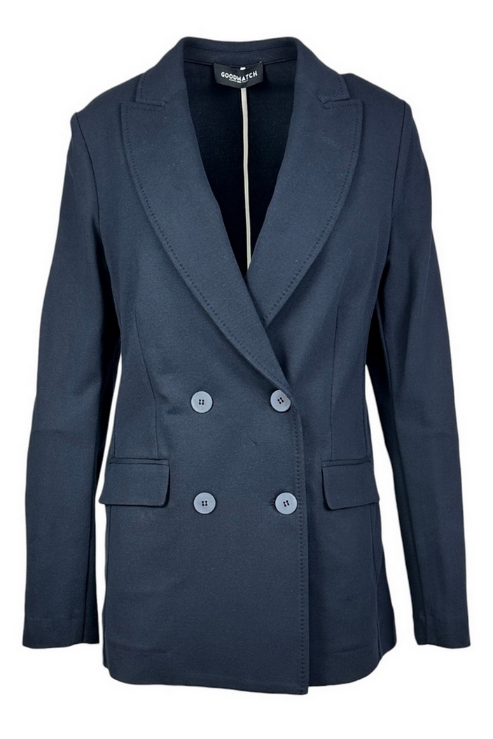 Veste Goodmatch en piquet stretch. Modèle à deux seins. Poches avec rabat. Reculez. Non utilisé. Coupe douce. Composition : 96% coton, 4% élasthanne. Fabriqué en Italie.