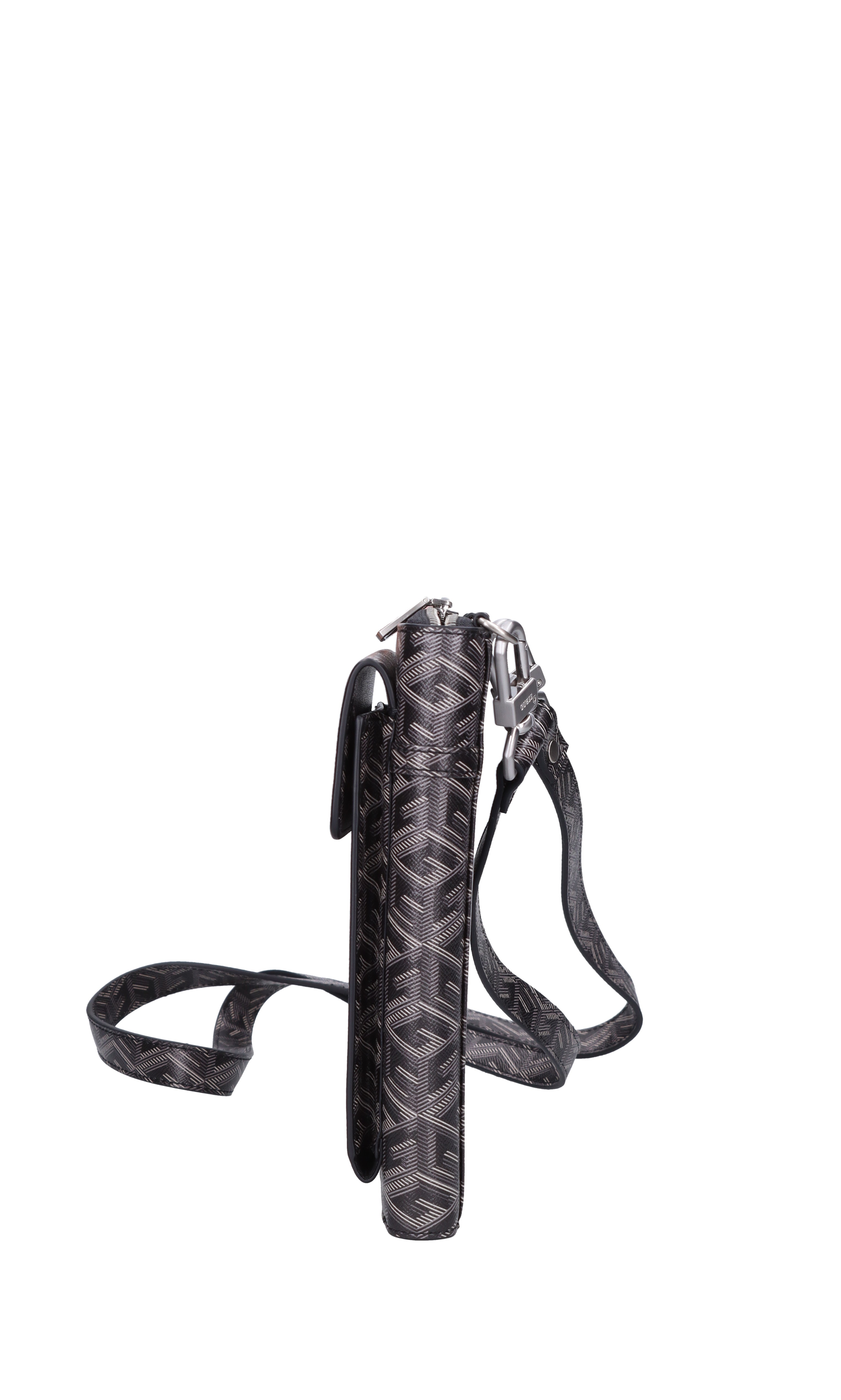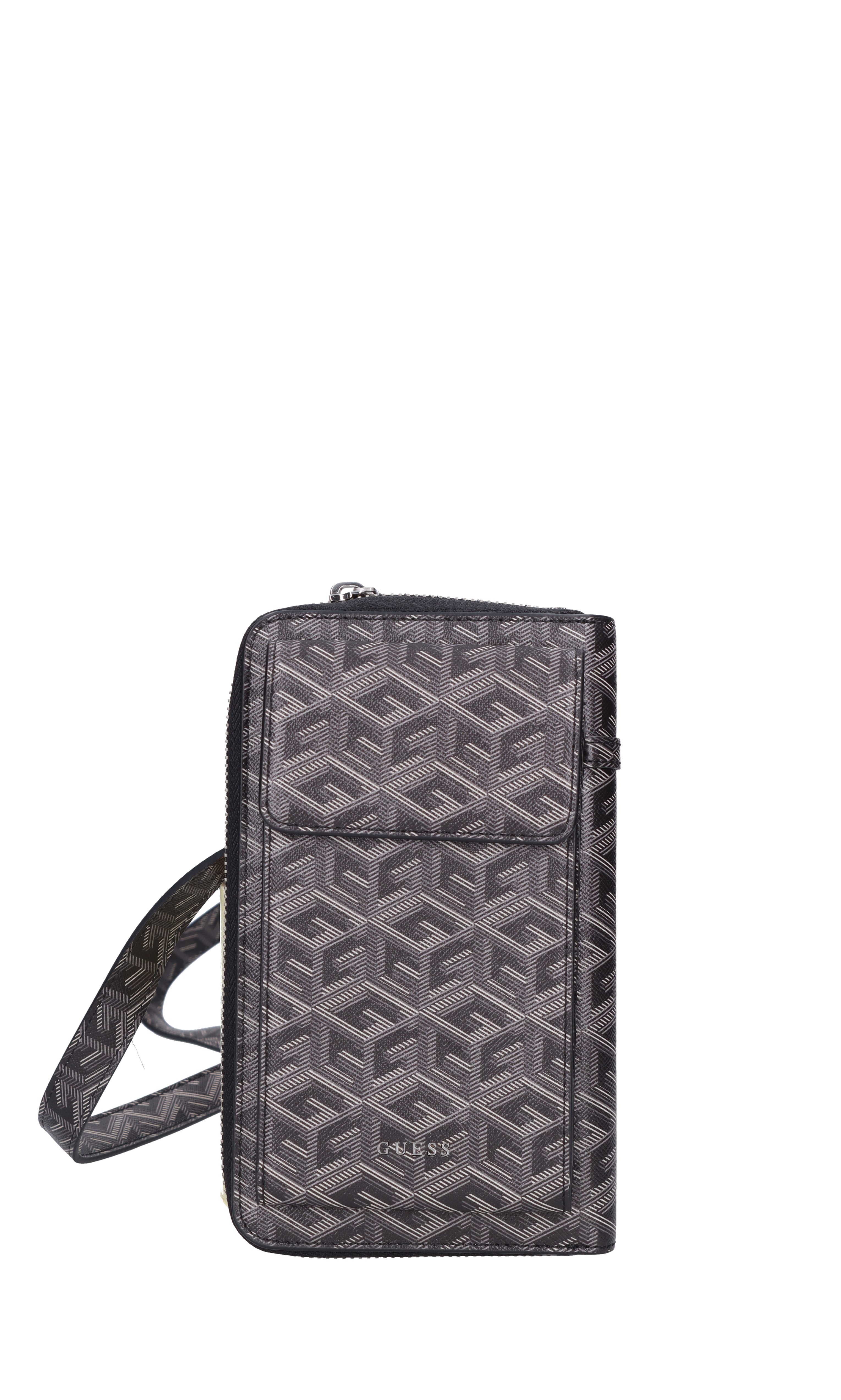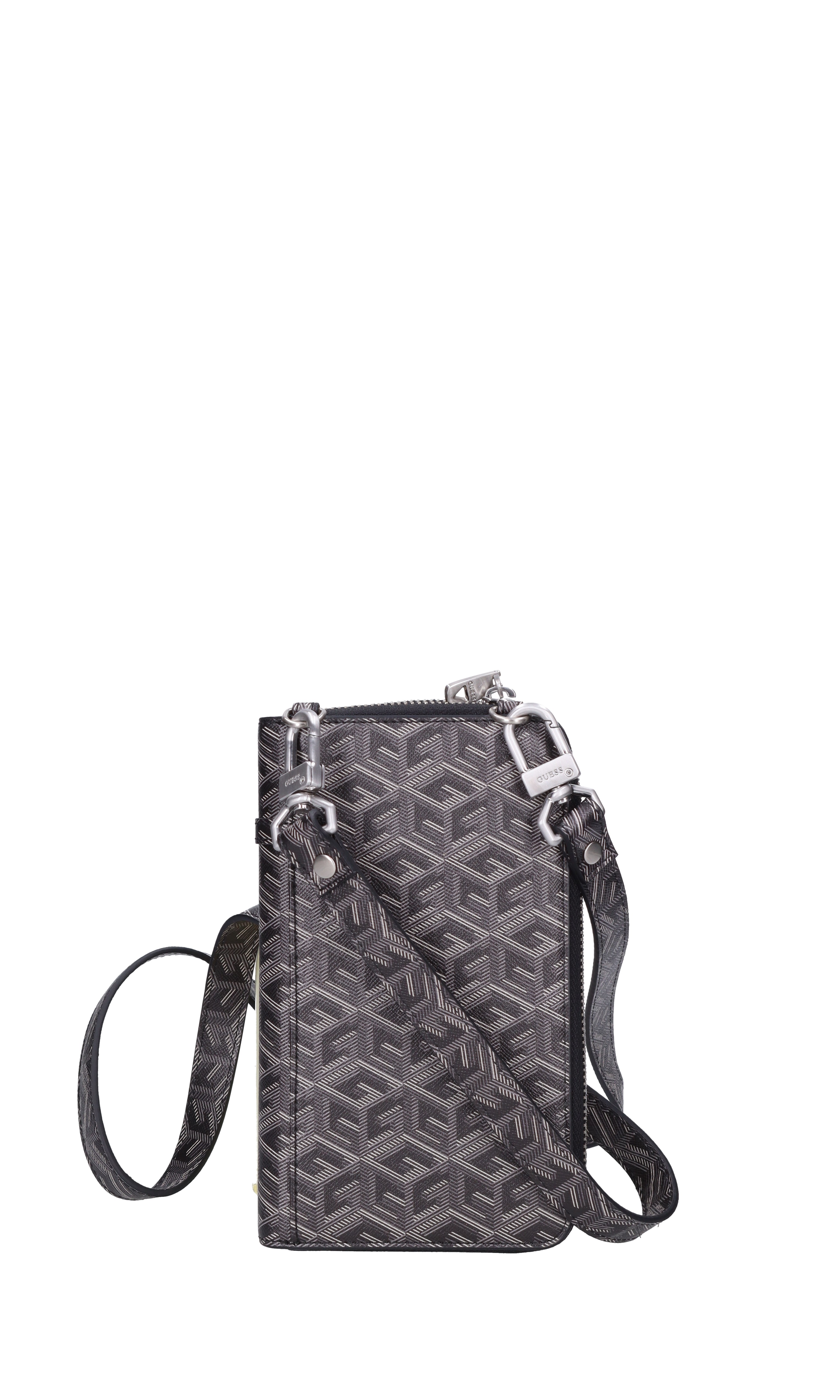 Portefeuille en simili cuir. Fermeture zippée. 2 compartiments. Poche pour téléphone portable. Bandoulière amovible. Expédié dans une enveloppe transparente.