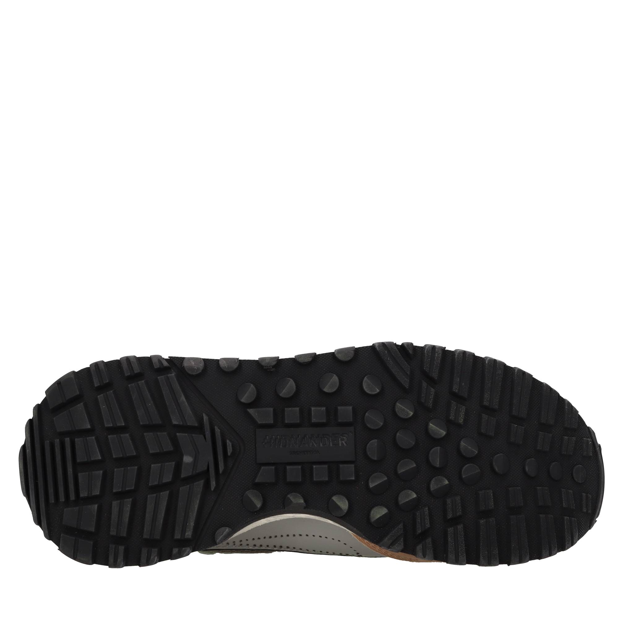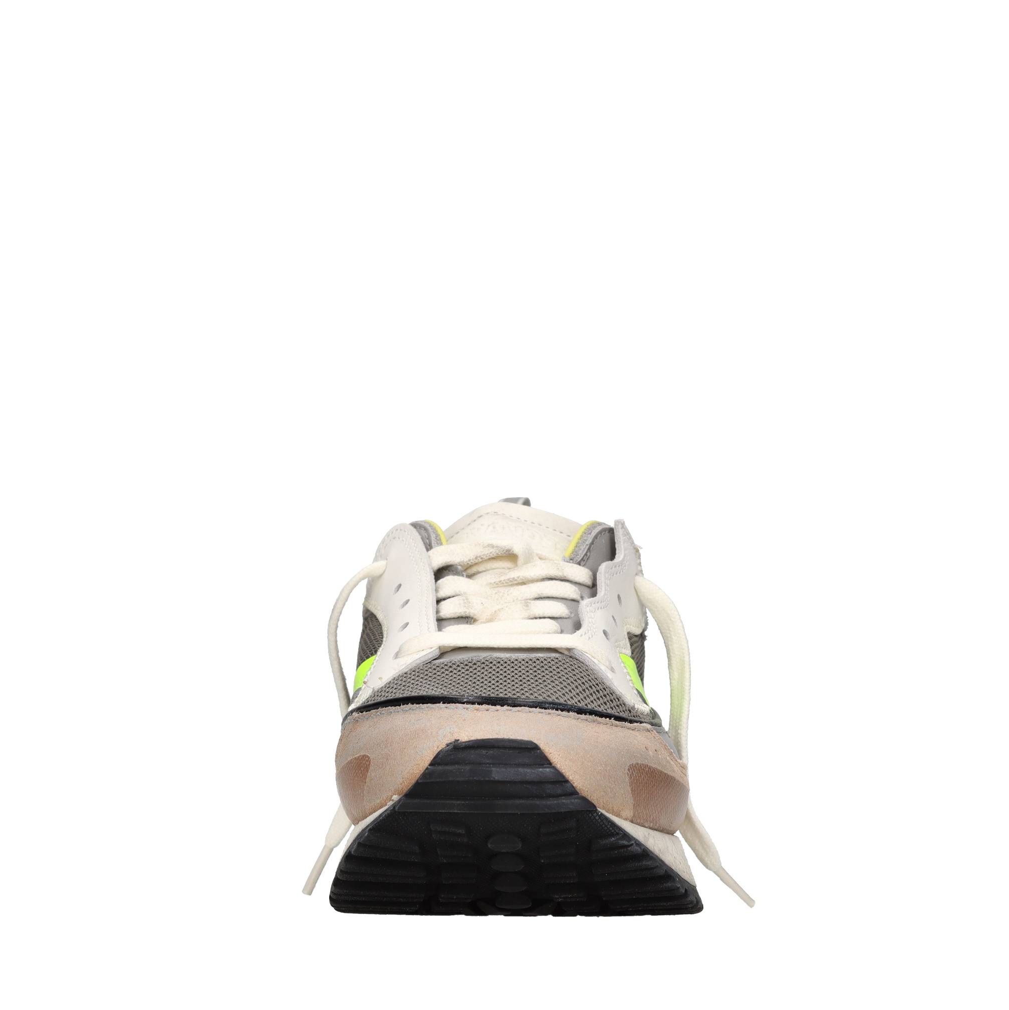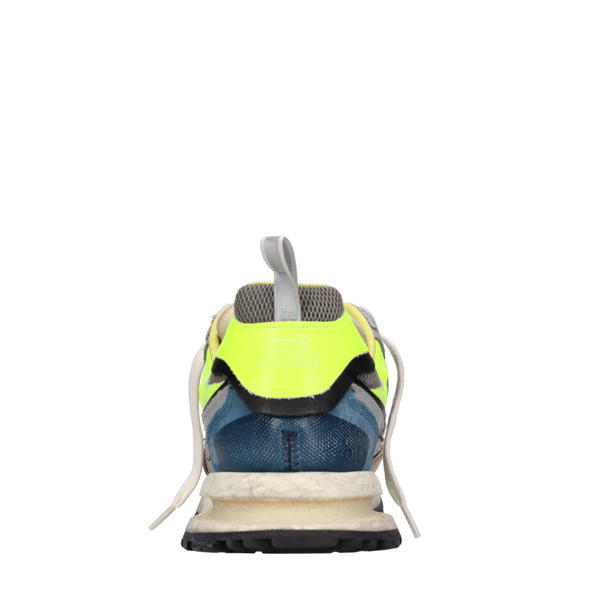 Baskets en cuir et tissu. Semelle extérieure en caoutchouc. Tige intérieure en cuir et en daim. Détails en jaune fluo.