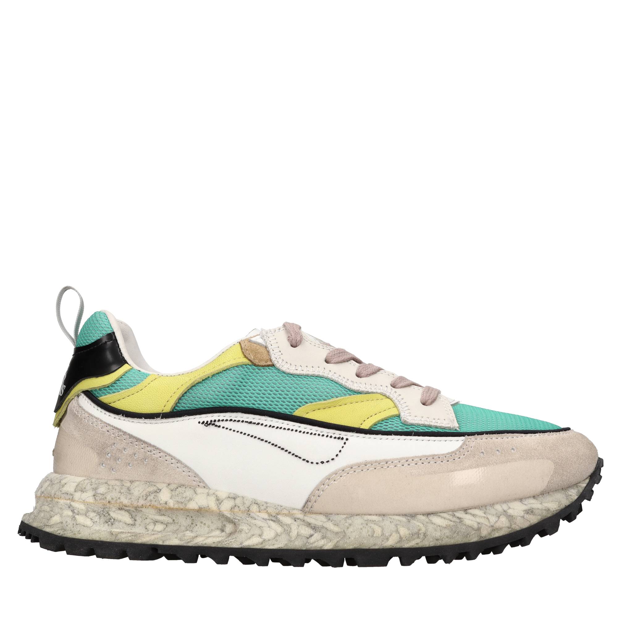 Baskets en cuir et tissu. Semelle extérieure en caoutchouc. Tige intérieure en cuir et en daim.