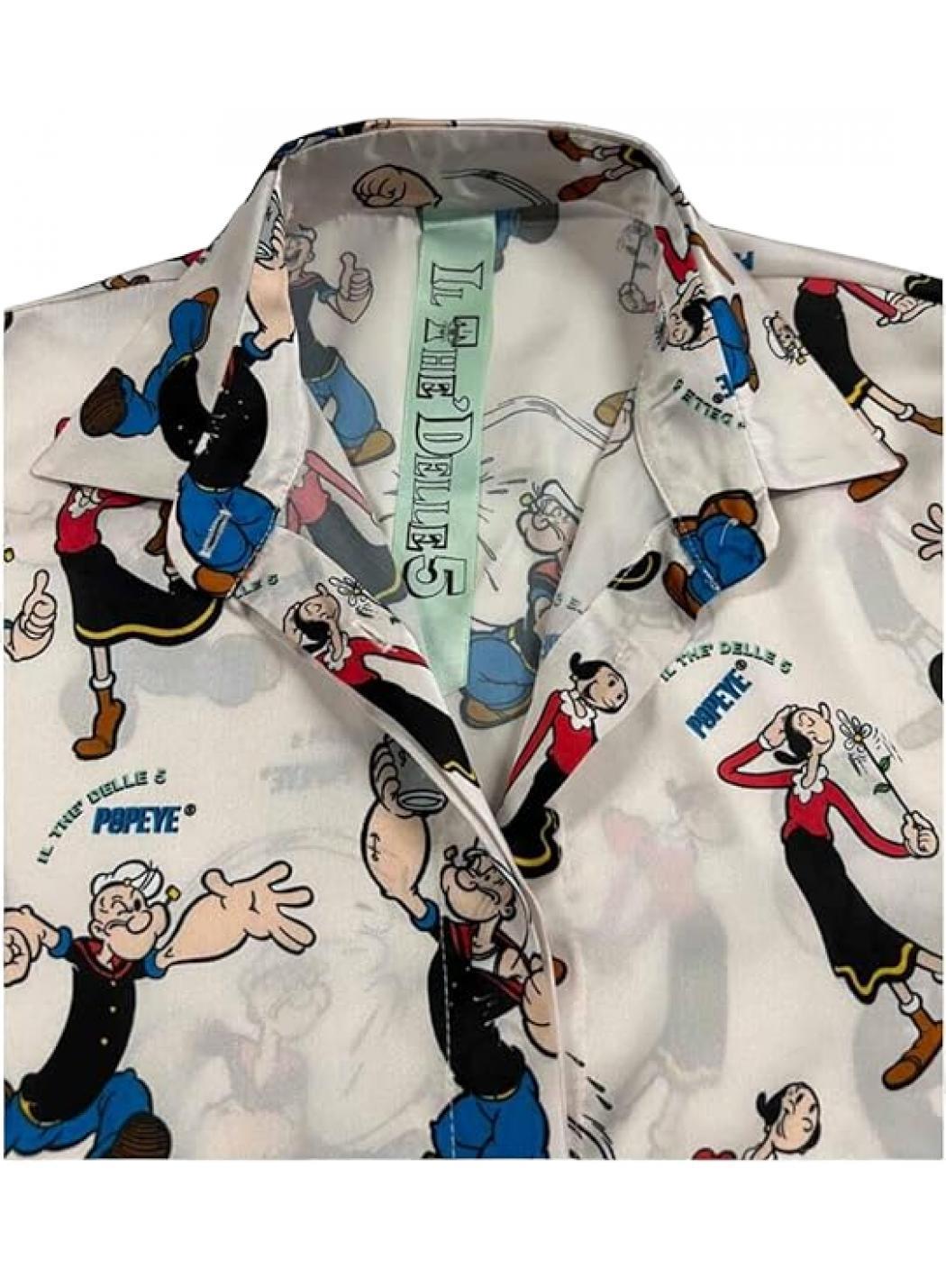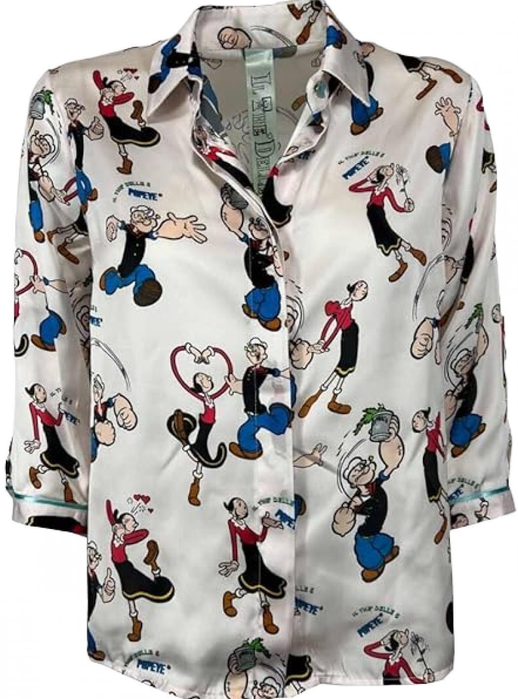 Chemise Popeye en édition limitée et Olivia très confortable à manches longues et encolure avec col. 100% polyester et Fabriqué en Italie.