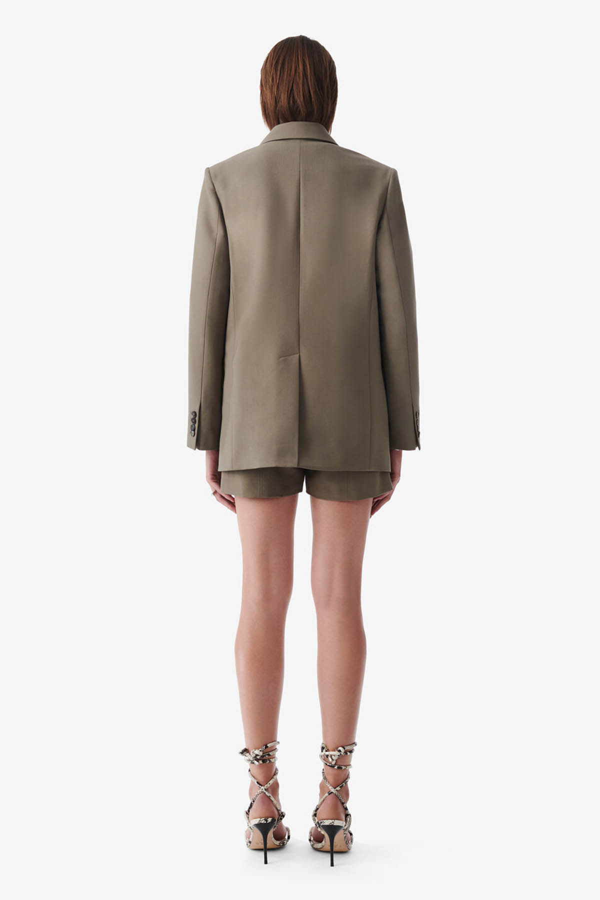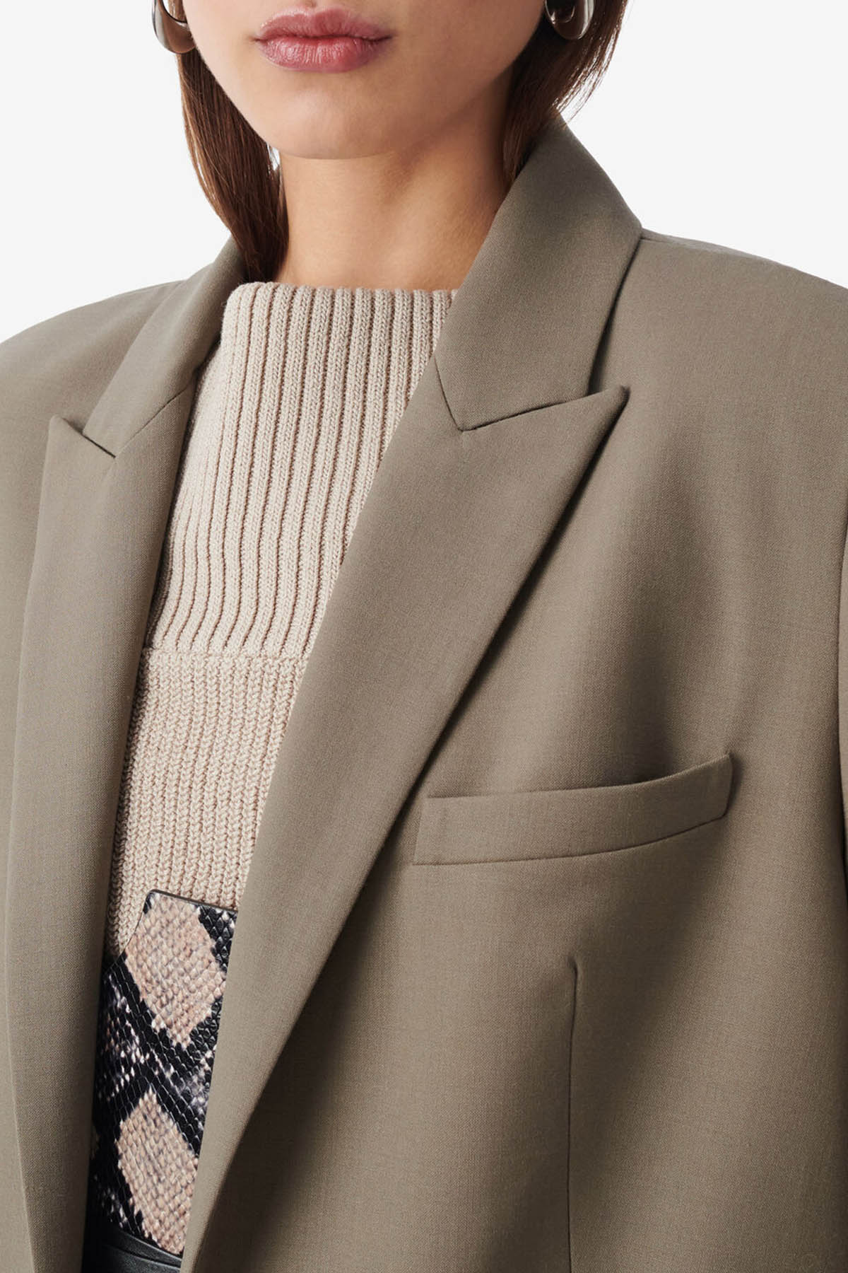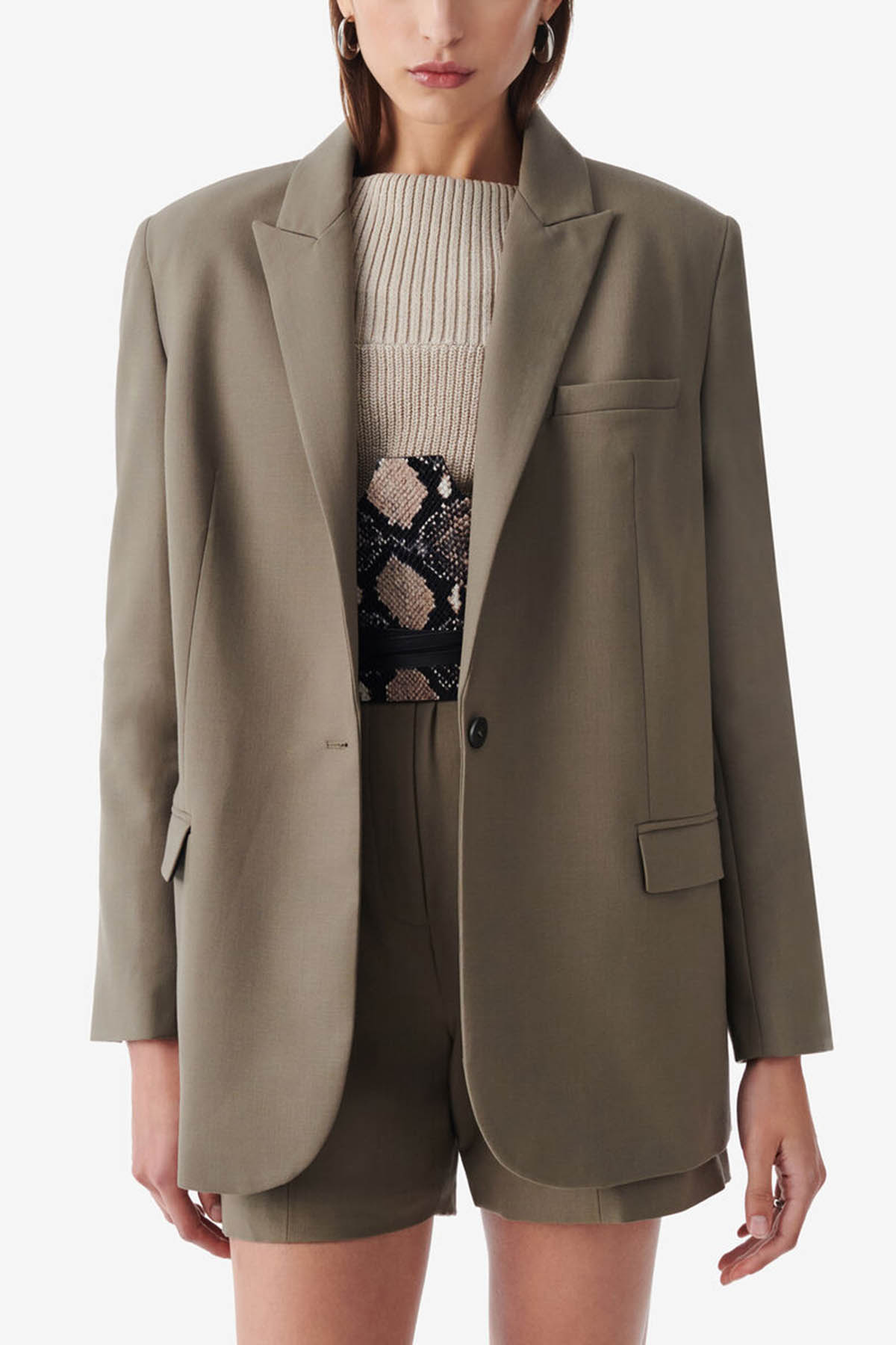 Modèle mono-brass, revers classiques, manches longues, coupe droite, fermeture avec un bouton, poches latérales avec patin. Composition 53 % polyester, 43 % laine vierge, 4 % élasthanne