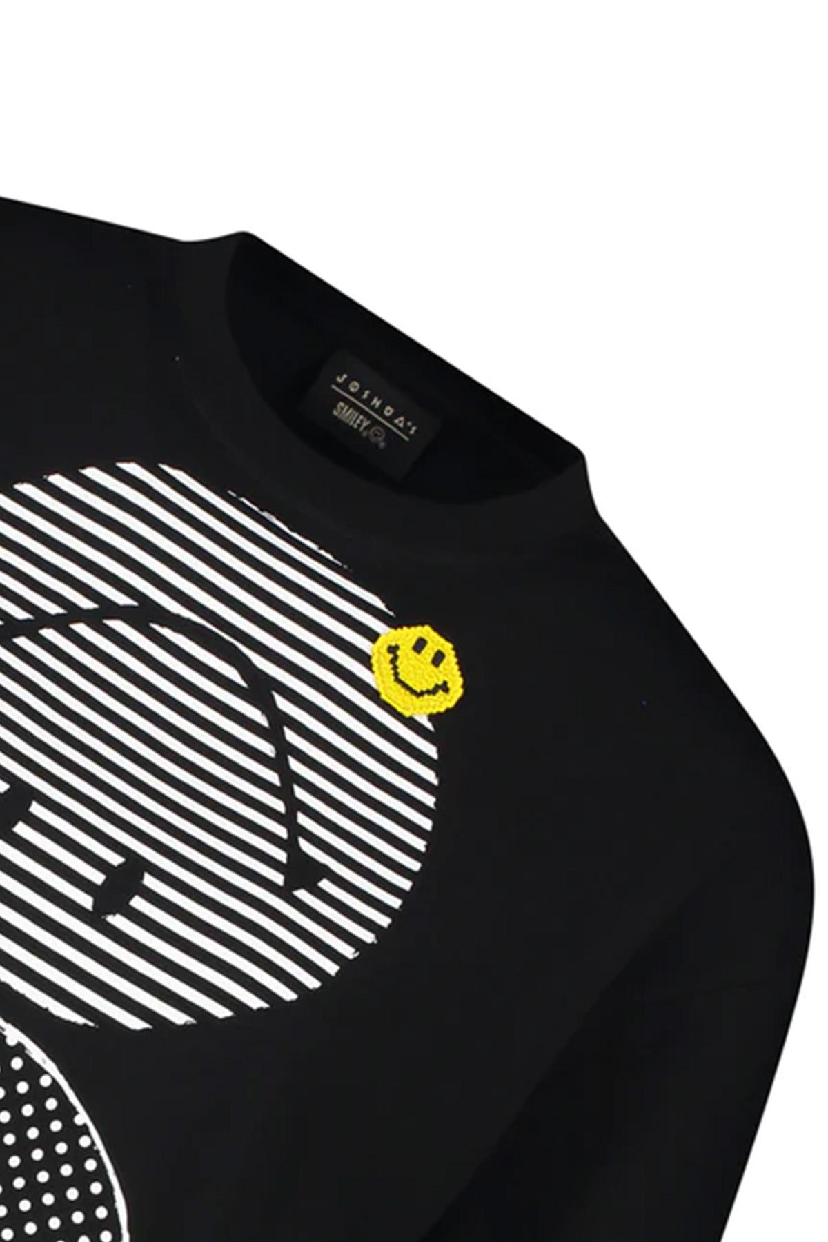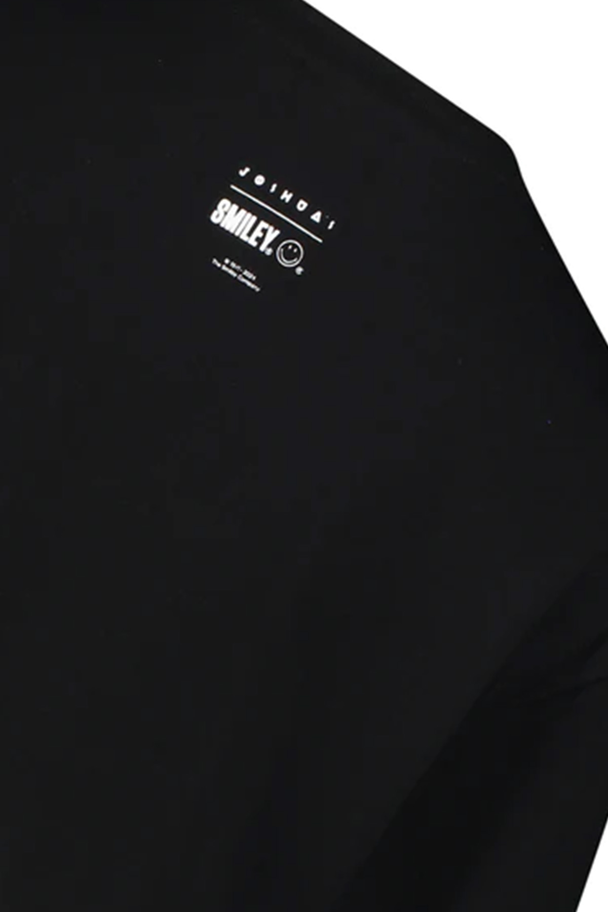 Modèle col rond, coupe épaules basses, manches courtes, design crop, double imprimé smiley sur le devant, ourlet droit. Composition 100% coton Made in Italy