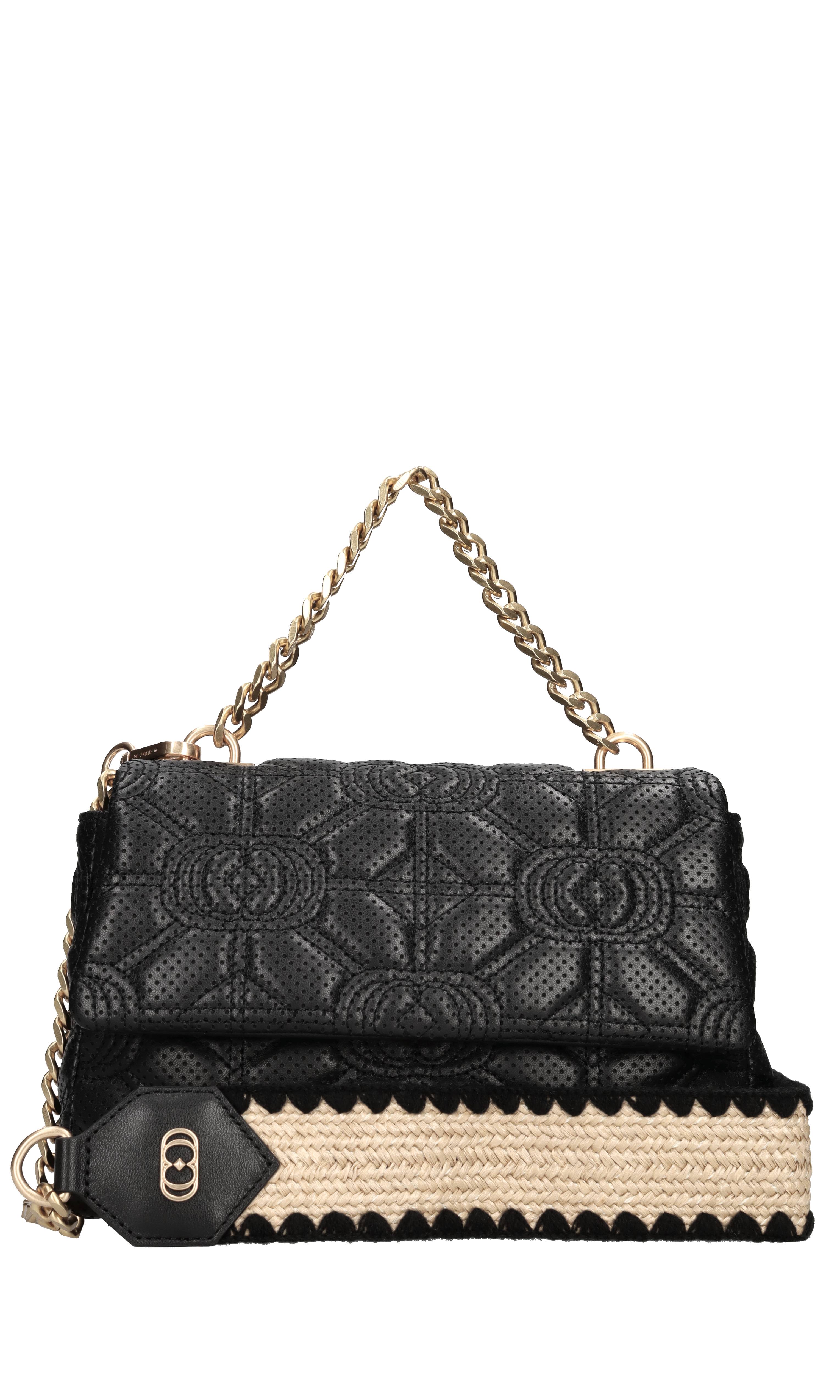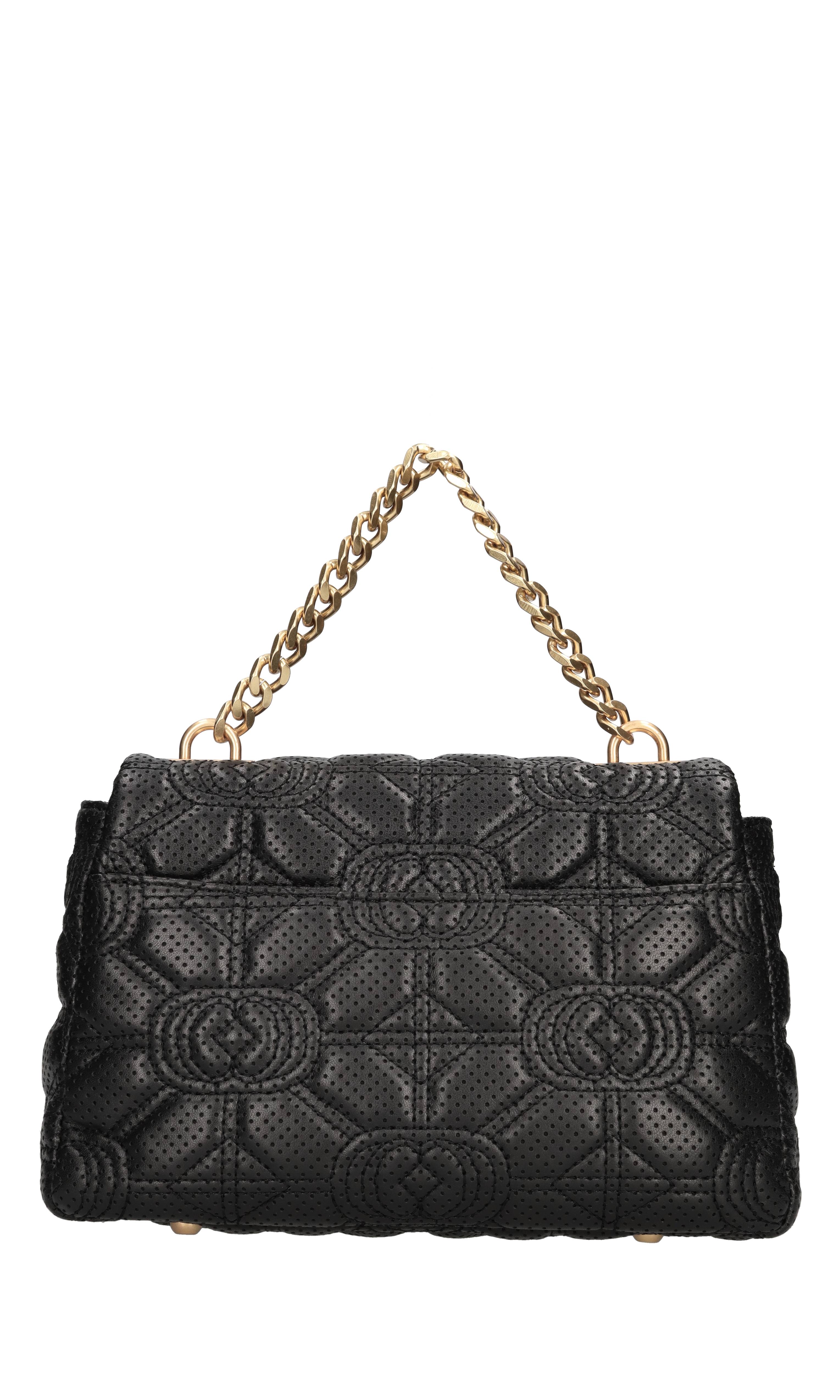 Sac en cuir. 1 Comparaison. Fermeture avec rabat avec bouton automatique. Poignée en chaîne dorée. Chaîne dorée bandoulière et mafia amovible. Expédié sur enveloppe transparente.