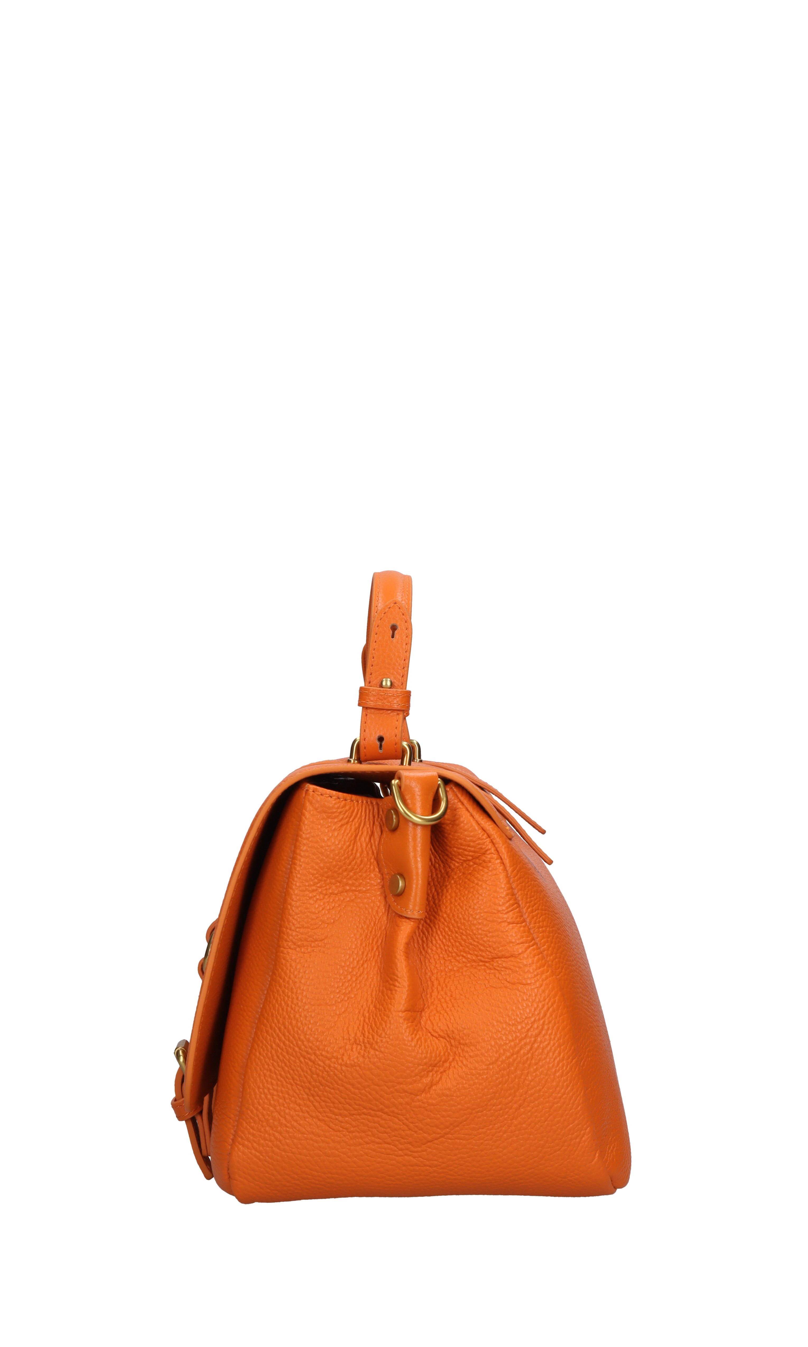 Grand sac à main Athena en cuir. Deux compartiments. Fermeture avec rabat avec bouton-pression. Chaîne dorée bandoulière et peau amovible.