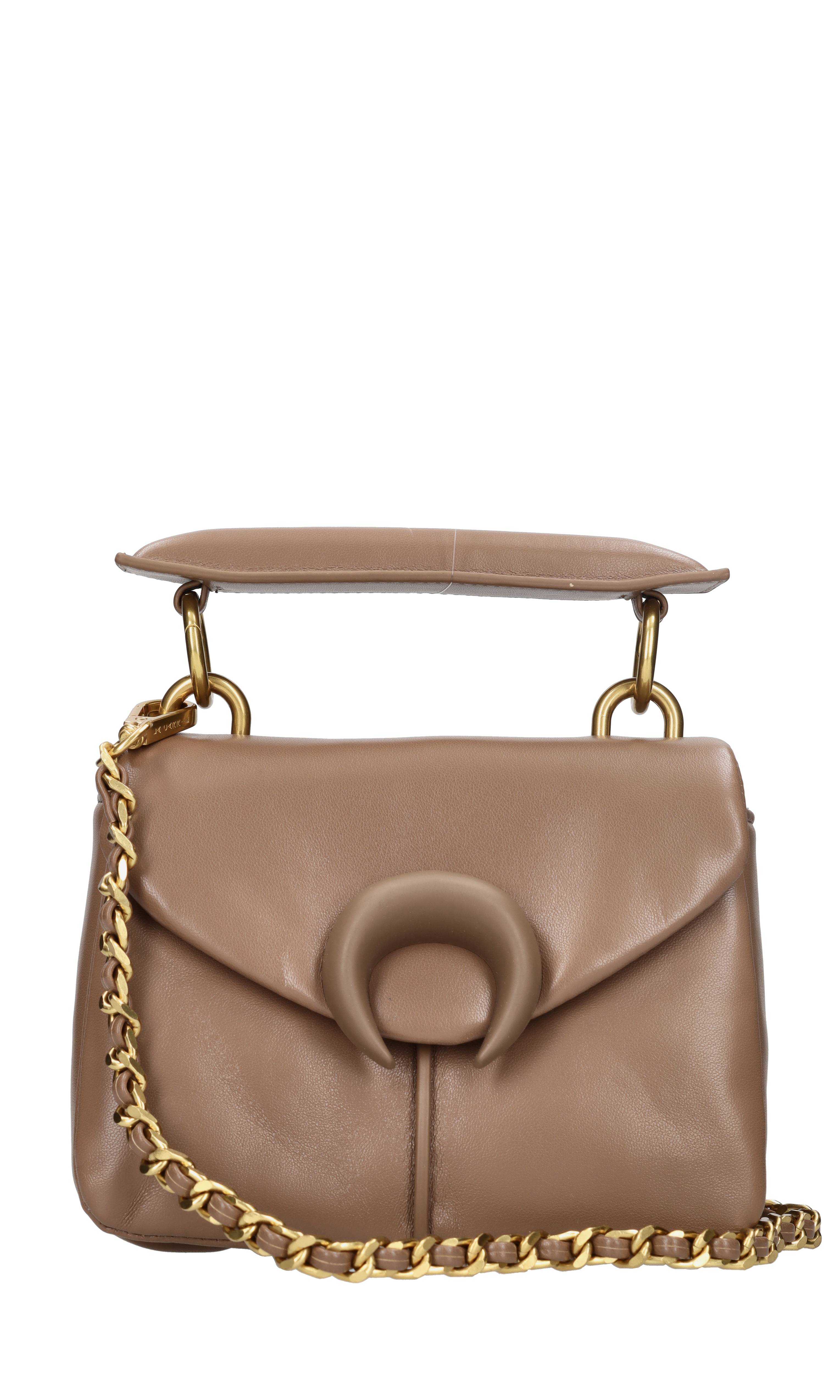 Mini sac à main lunaire en écocuir. Fermeture avec bouton-pression. Un compartiment. Sangle de chaîne amovible. Expédié sur sachet transparent.