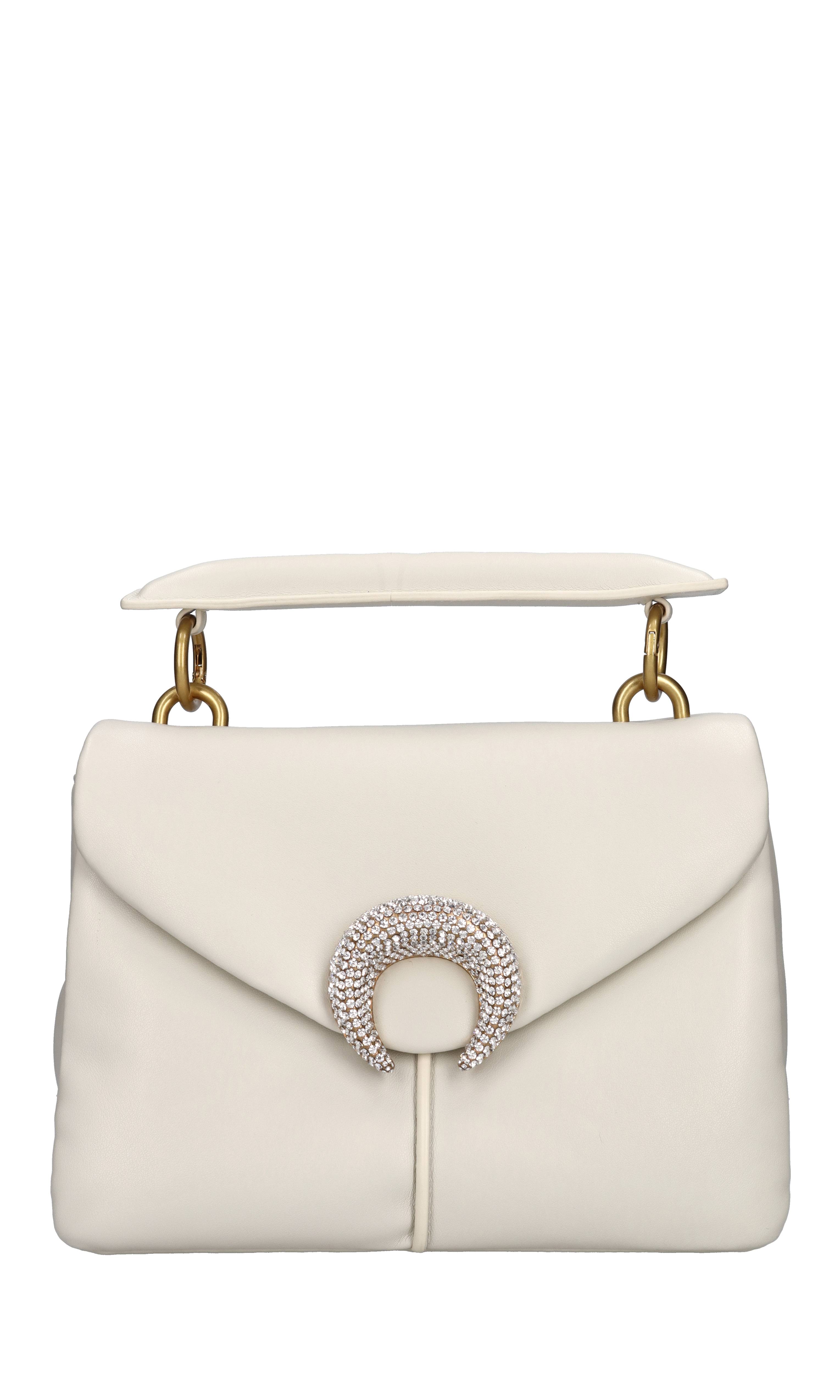 Sac à main Moonlight en cuir éco. Fermeture avec bouton-pression. Deux compartiments. Boucle de bijou avec strass. Bracelet d'épaule à chaîne dorée et éco-cuir amovible.