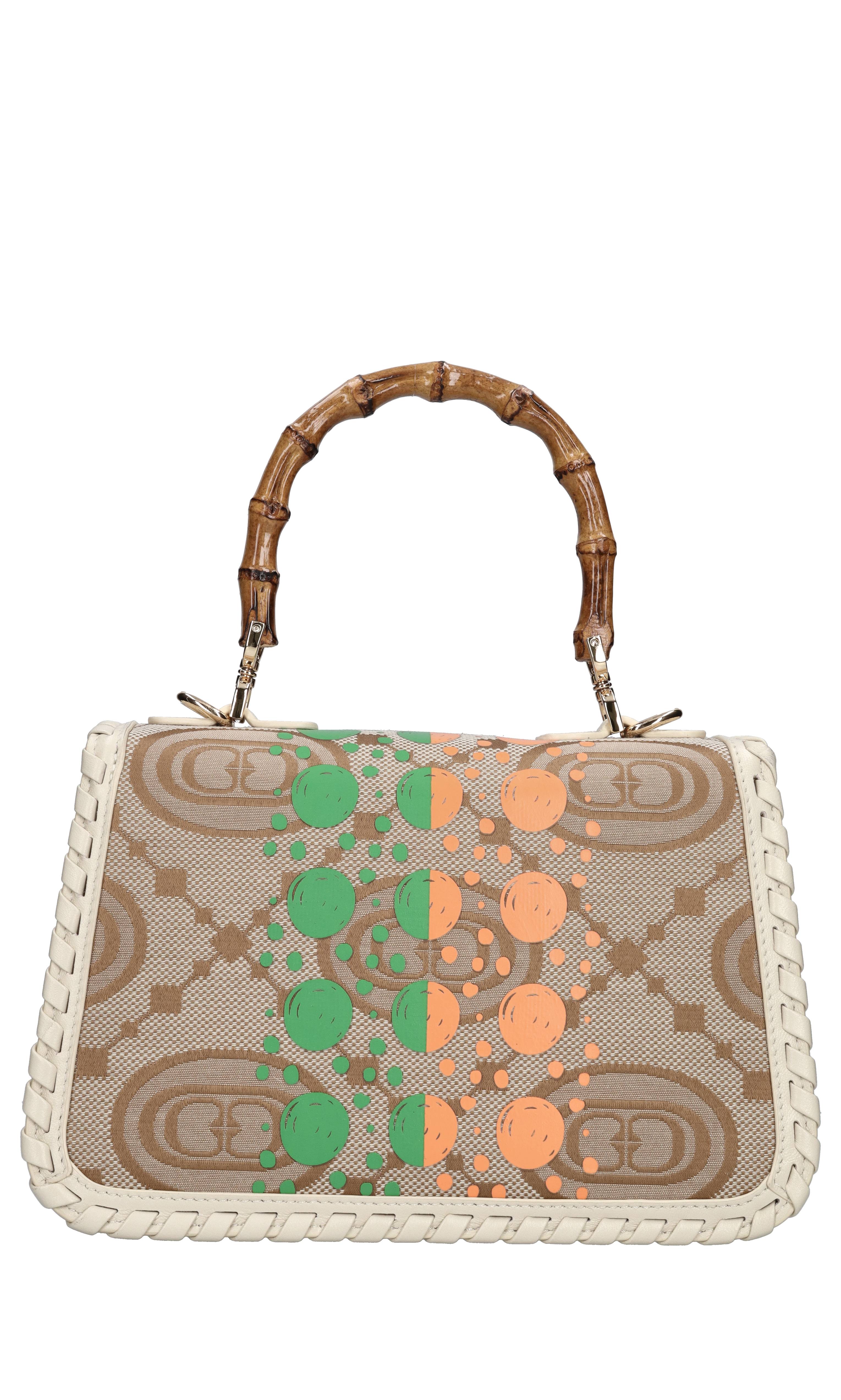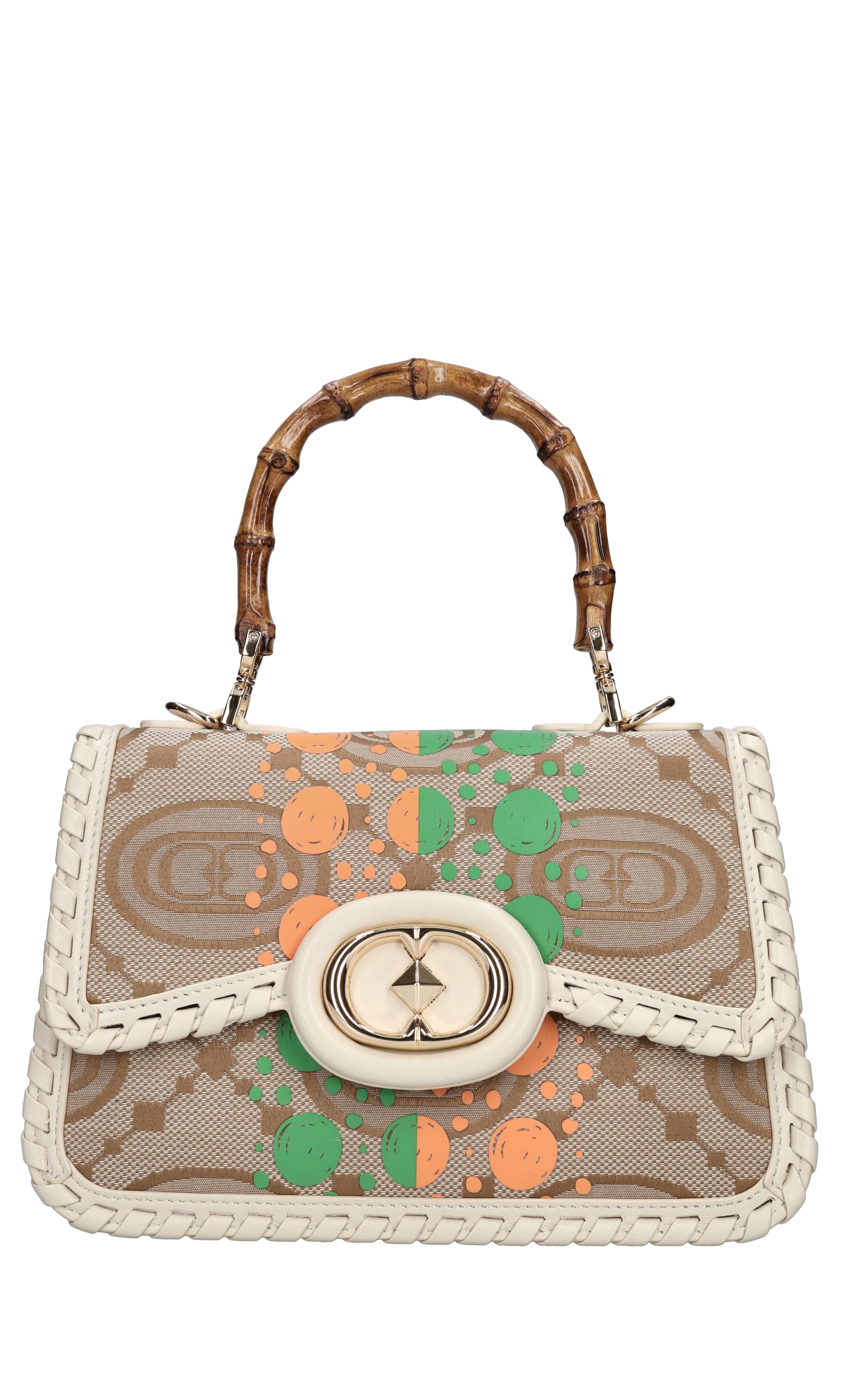 Sac Monogram en cuir et tissu. 1 Comparaison. Fermeture avec rabat avec bouton automatique. Manchon effet bambou. Chaîne dorée bandoulière et peau amovible. Expédié sur enveloppe transparente.