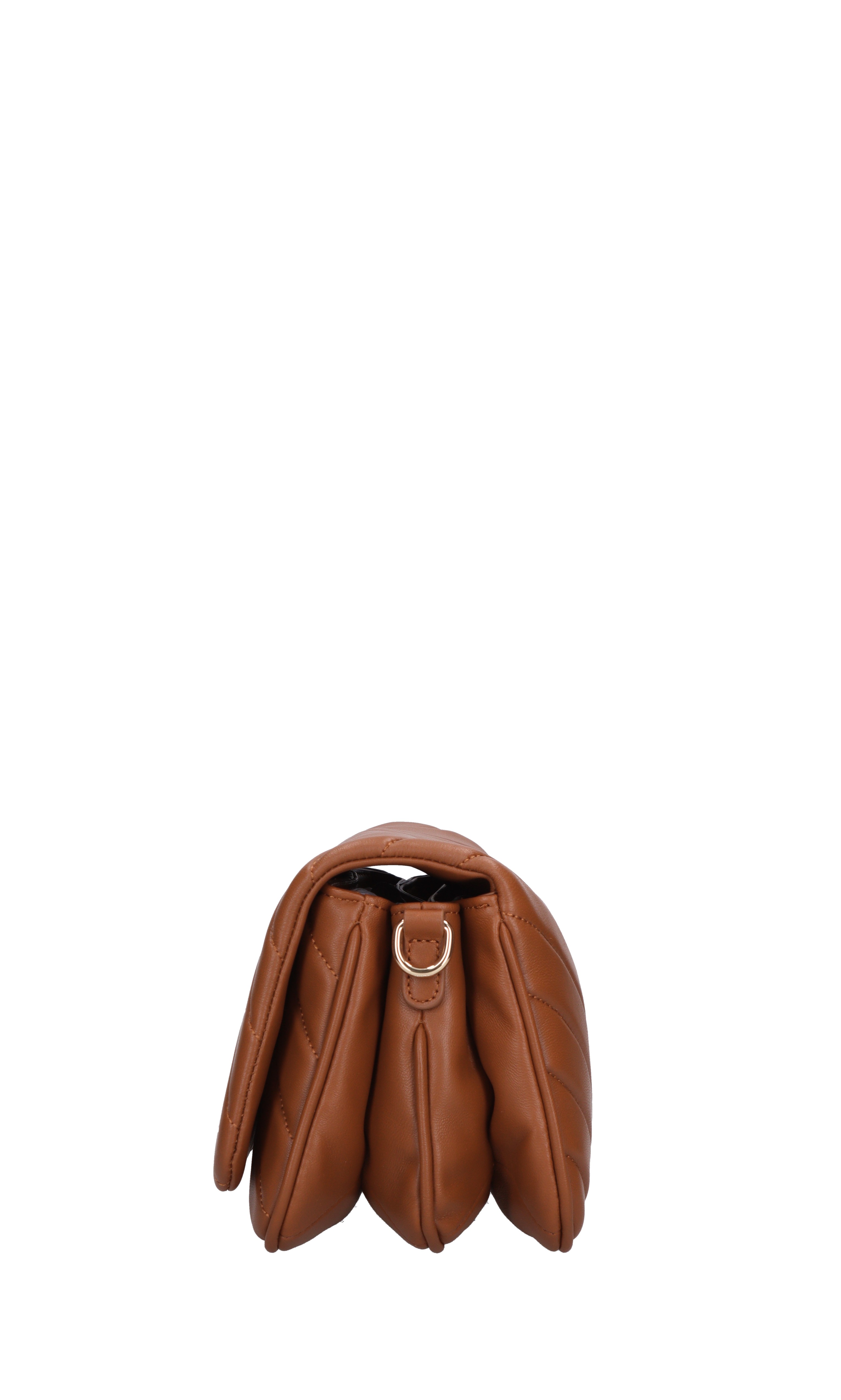 Sac en cuir. 3 départements. Fermeture avec rabat avec bouton automatique. Chaîne dorée et poignée en cuir amovible.