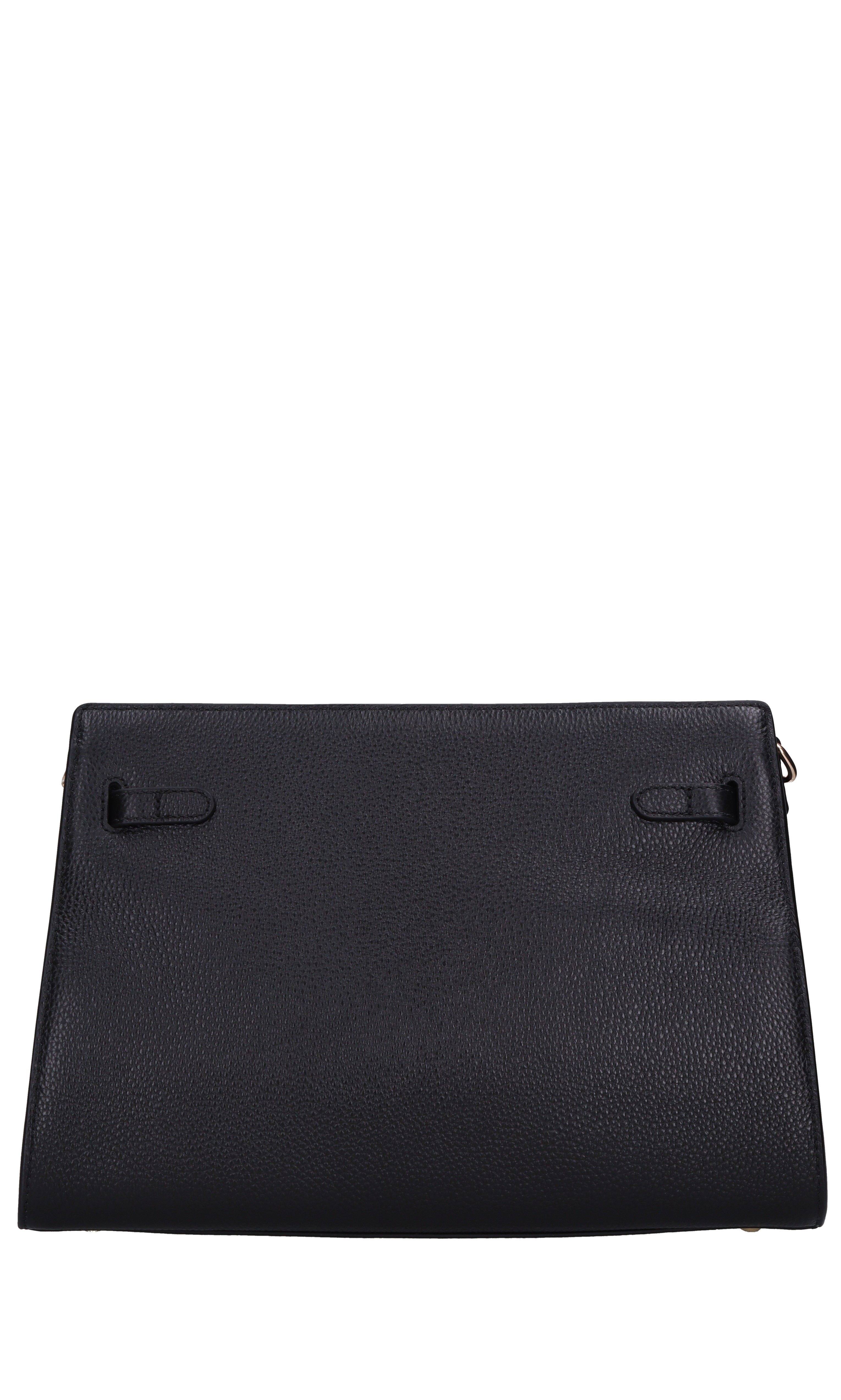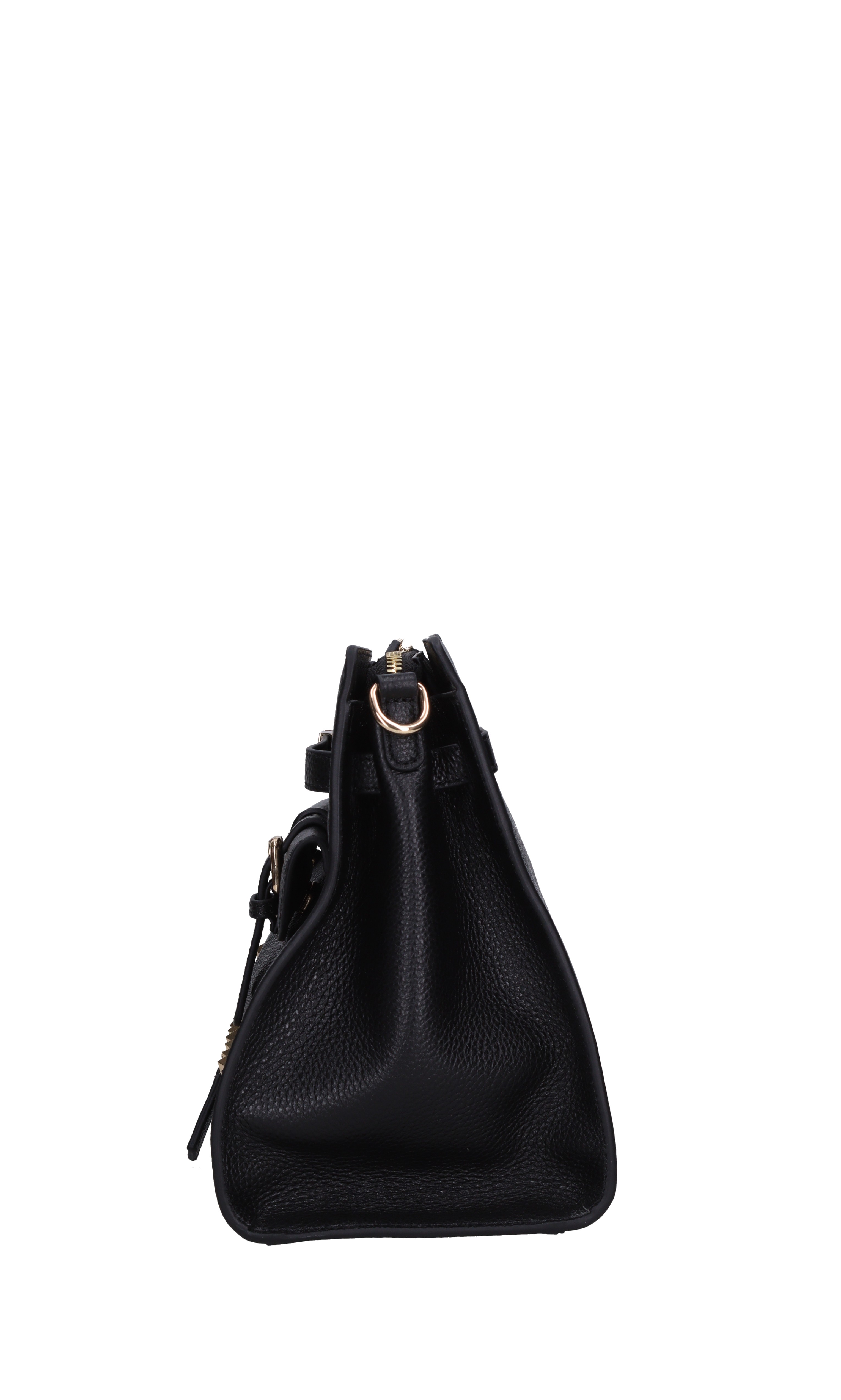 Sac en cuir de poche. Un compartiment. Des clous d'or. Fermeture zippée. Chaîne en or et cuir amovible.