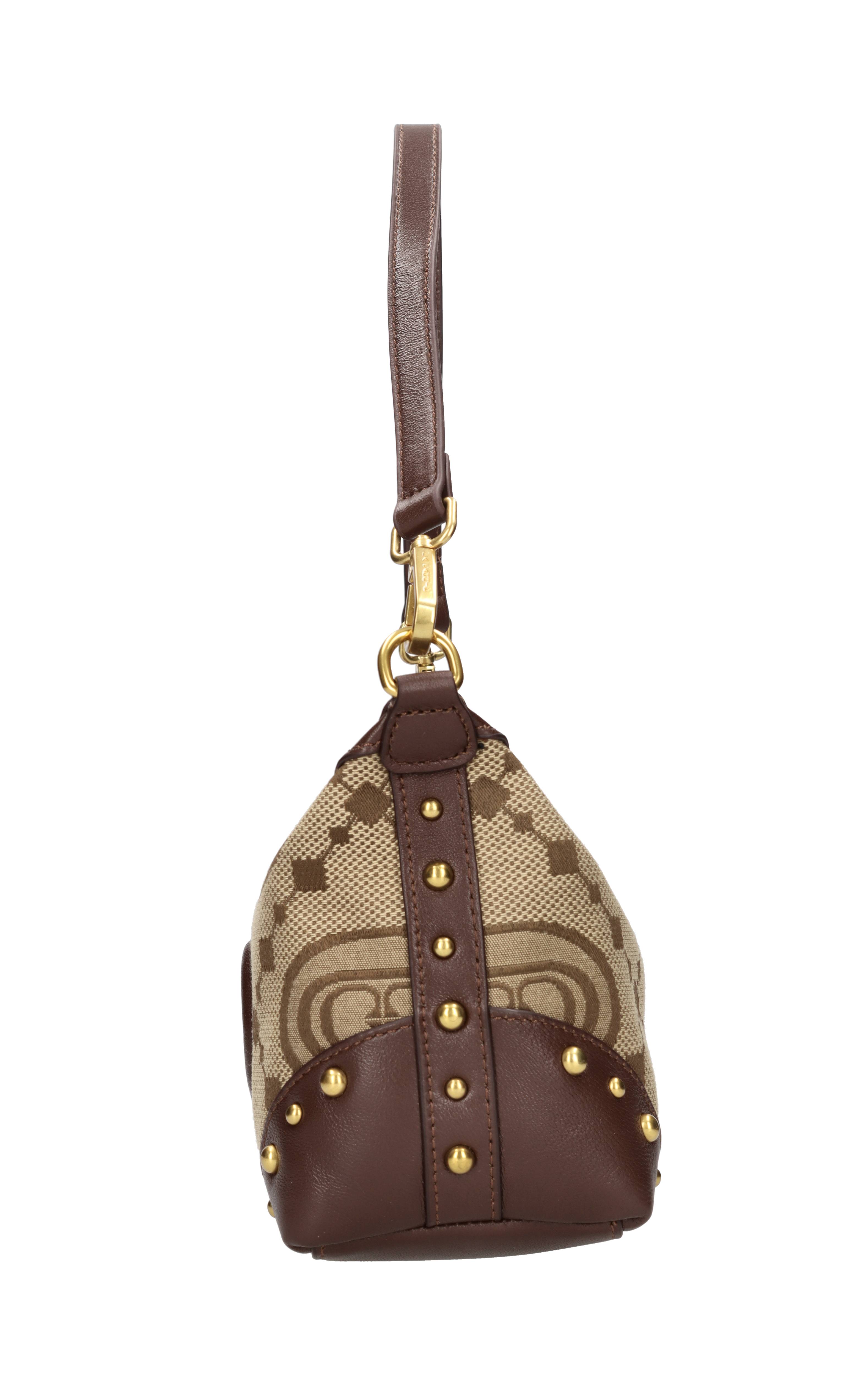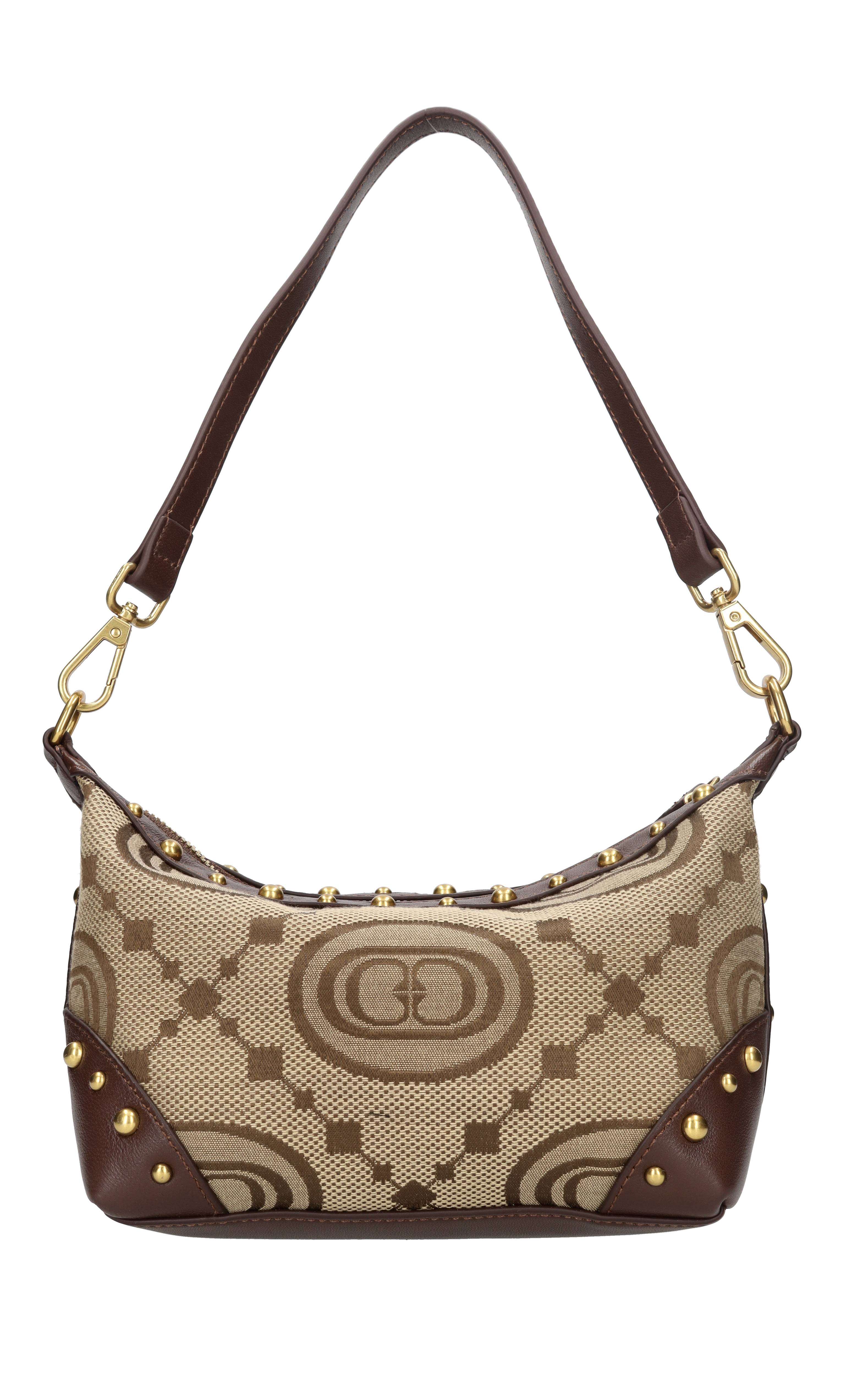 Sac en cuir et tissu. 1 compartiment. Fermeture zippée. Ceinture amovible.