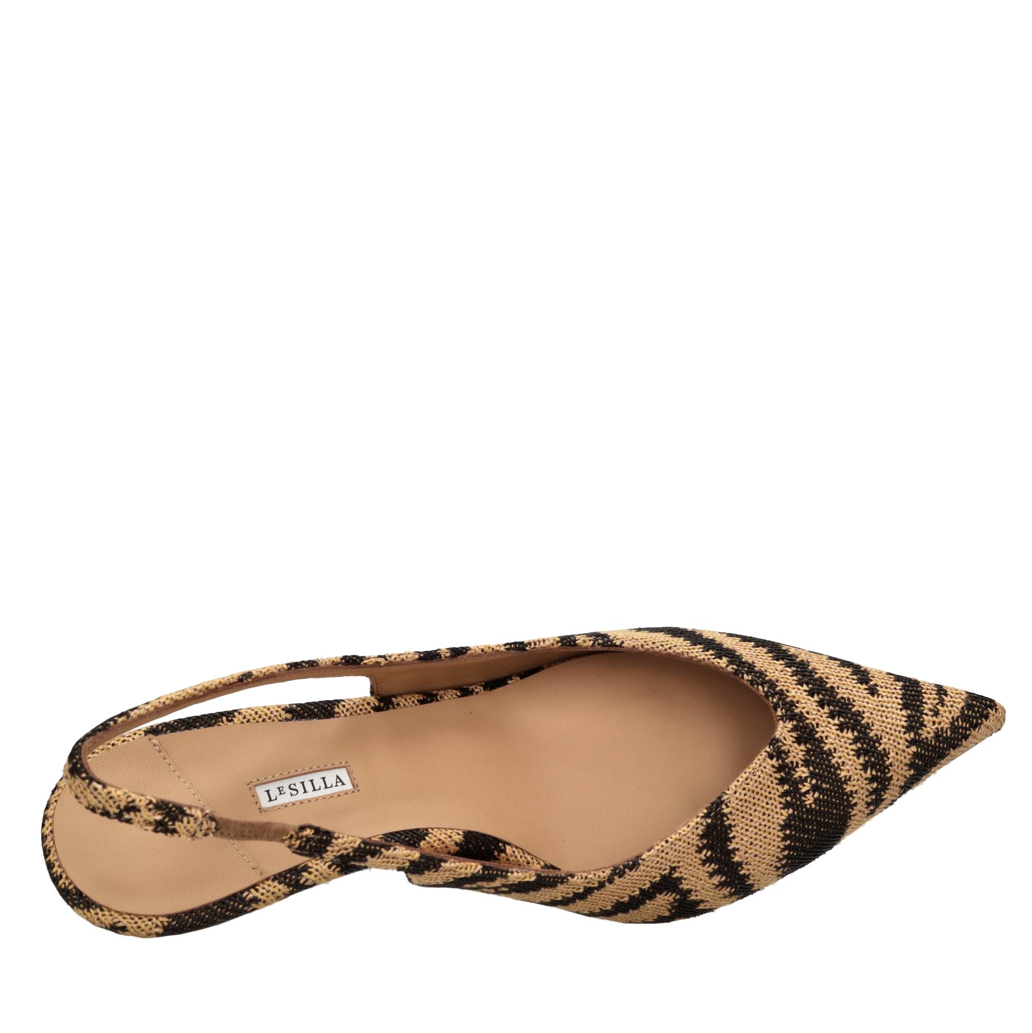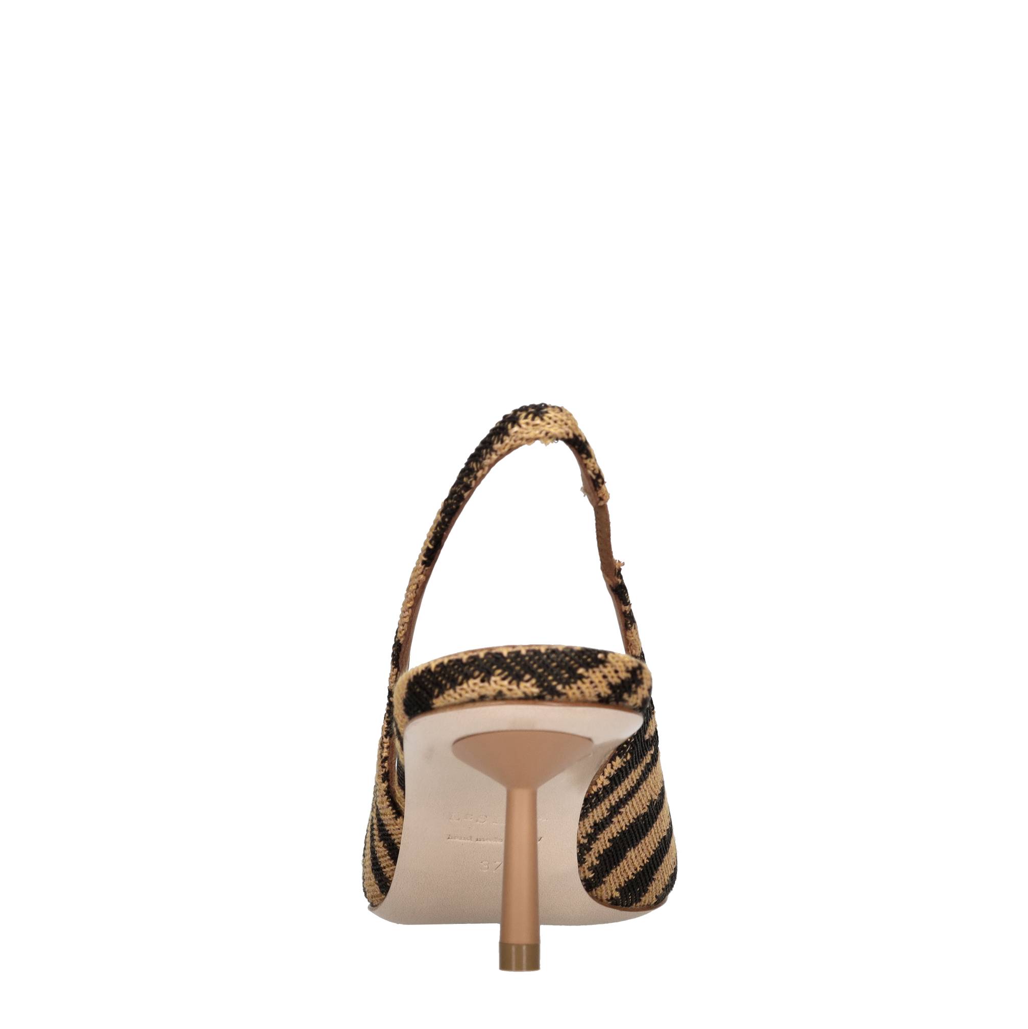 Décollé slingback modèle VIVIENNE en tissu. Semelle extérieure en cuir et caoutchouc logo. Tige en cuir Logée.