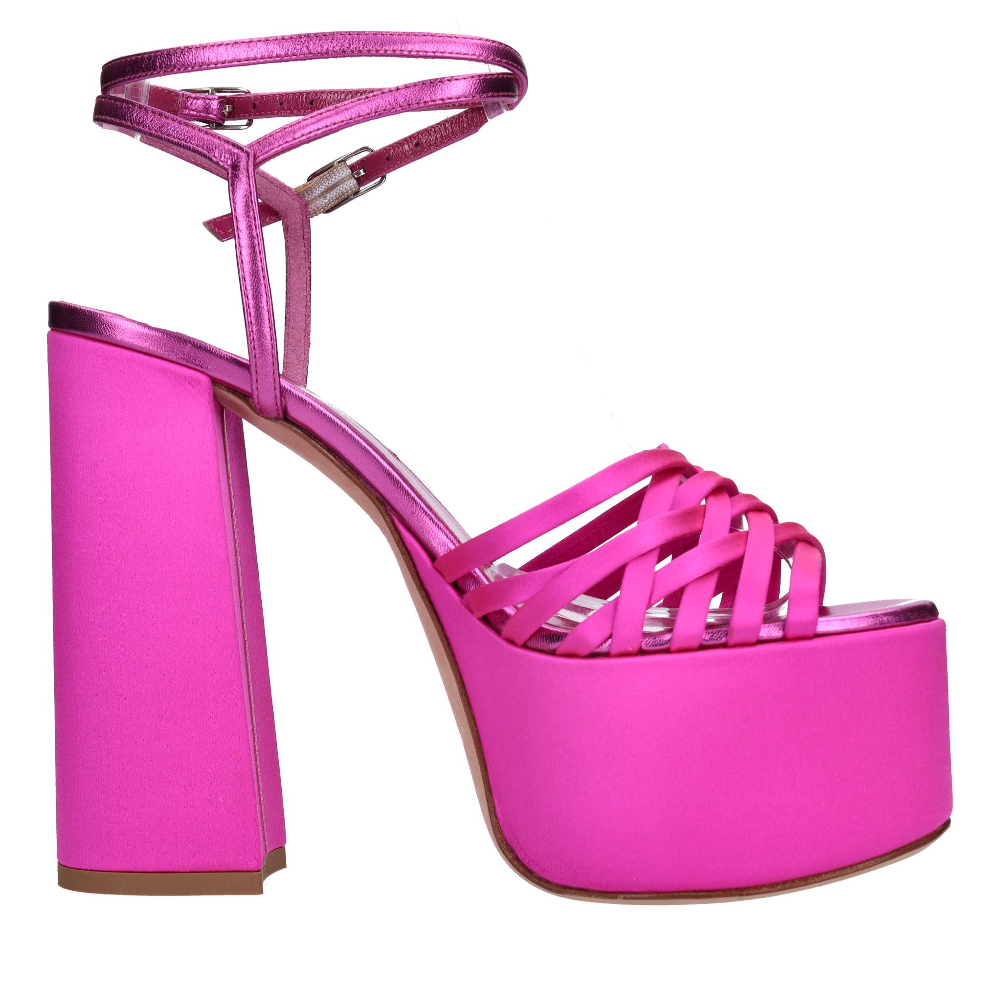 Des sandales satinées. Le dessus en cuir. Semelle extérieure en cuir. Plateau 5 cm.