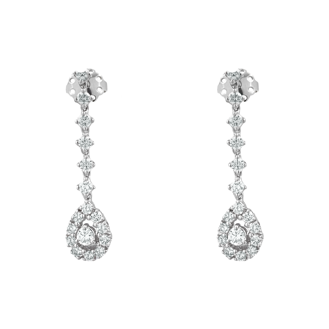 Boucles d'oreilles en or blanc 750%, avec 6 diamants coupe brillant monter à la goutte pendentif diamants coupe brillant. Longueur 3 cm.