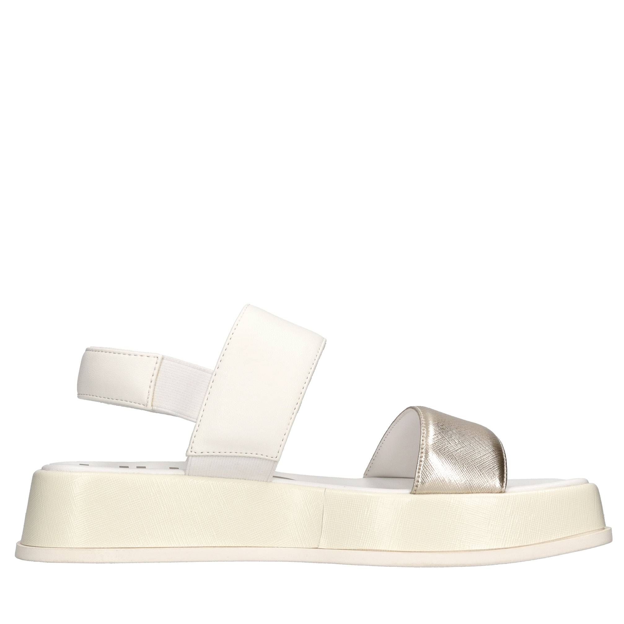 Des sandales en cuir. Visage de couleur platine. Semelle extérieure en caoutchouc. Écolo-cuir logé intérieur supérieur.