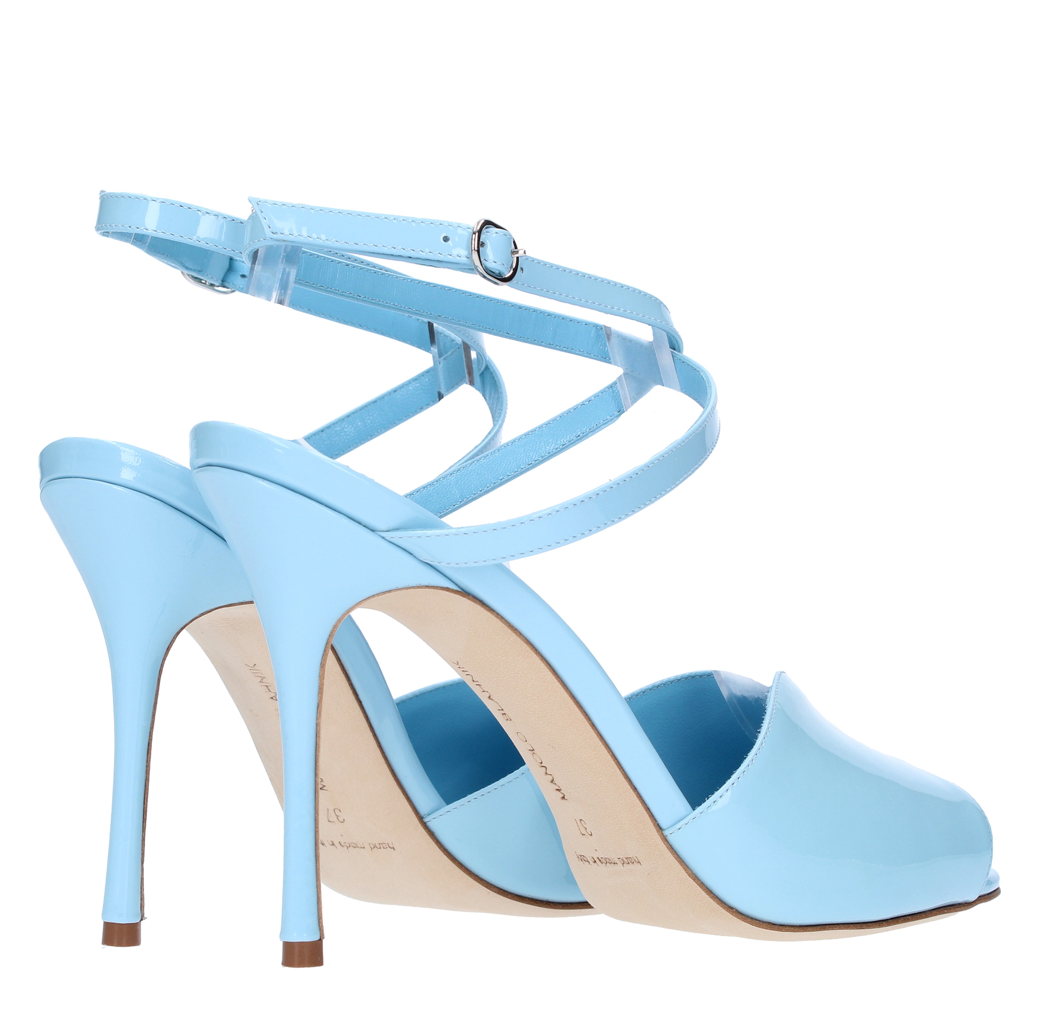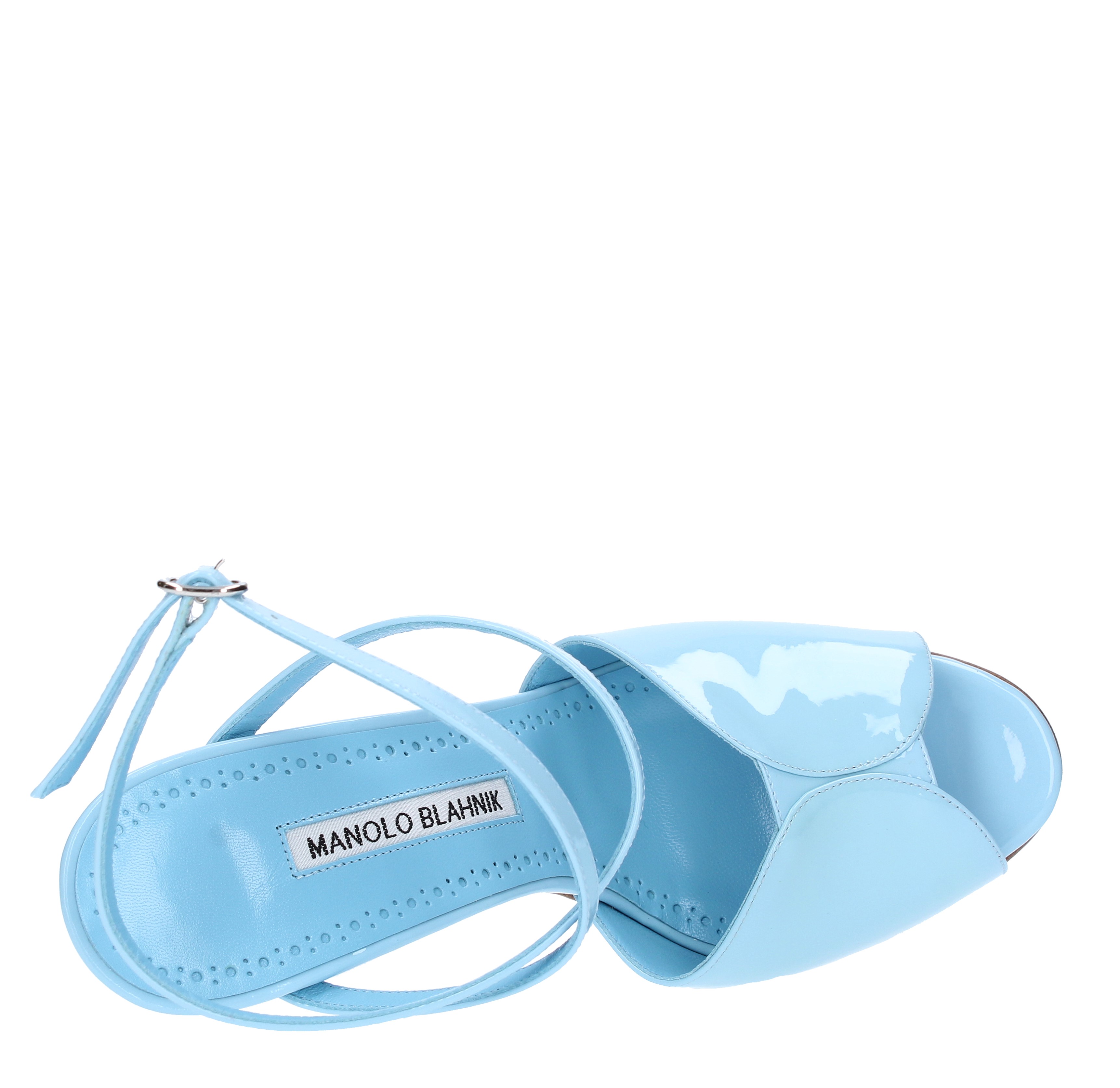 Sandales en cuir verni HOURANI MANOLO BLAHNIK. Semelle extérieure en cuir. Bride avec boucle dorée. Dessus en cuir.