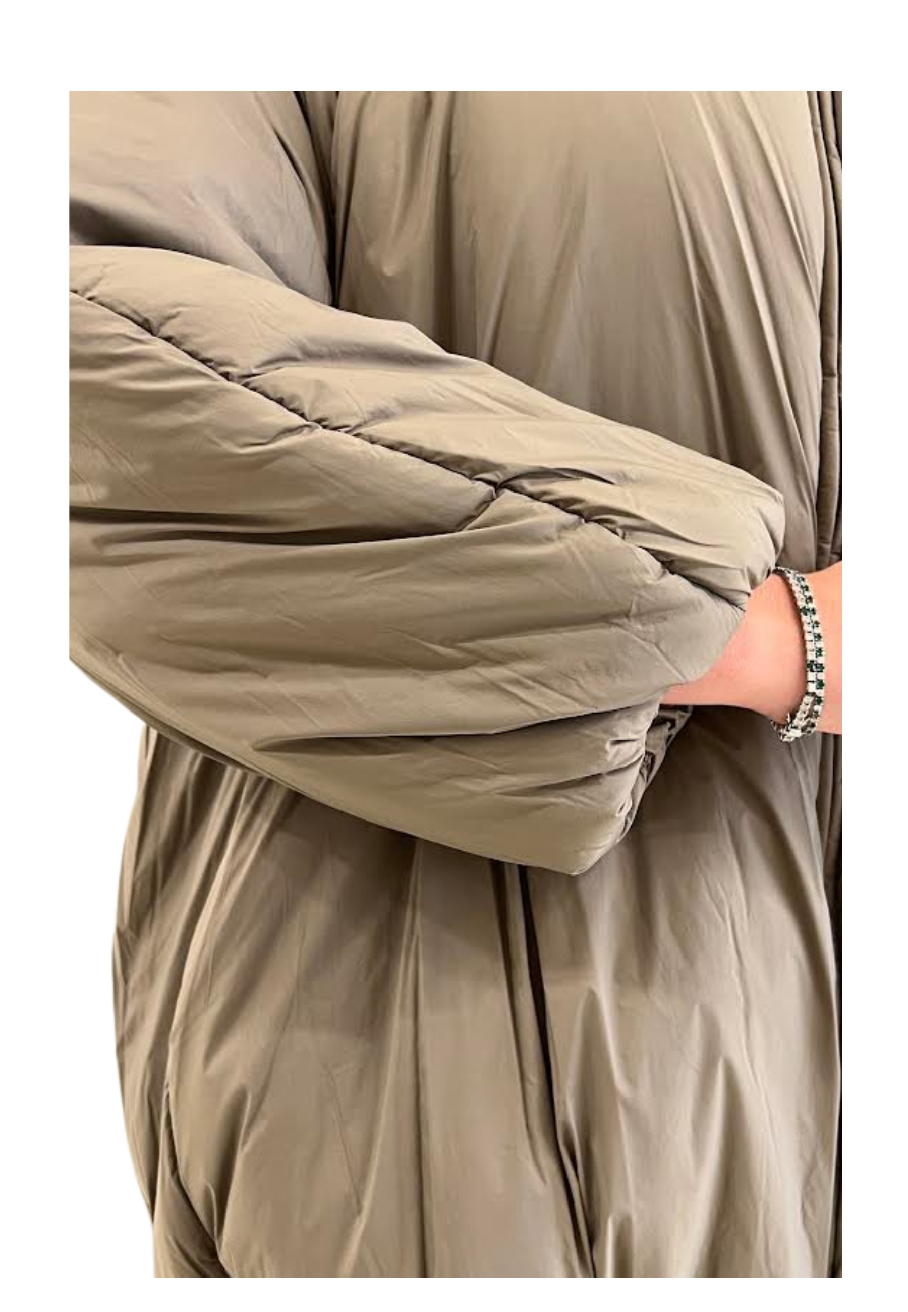 brun sur la ligne vers le bas avec manche large, coulisse sous, brun.