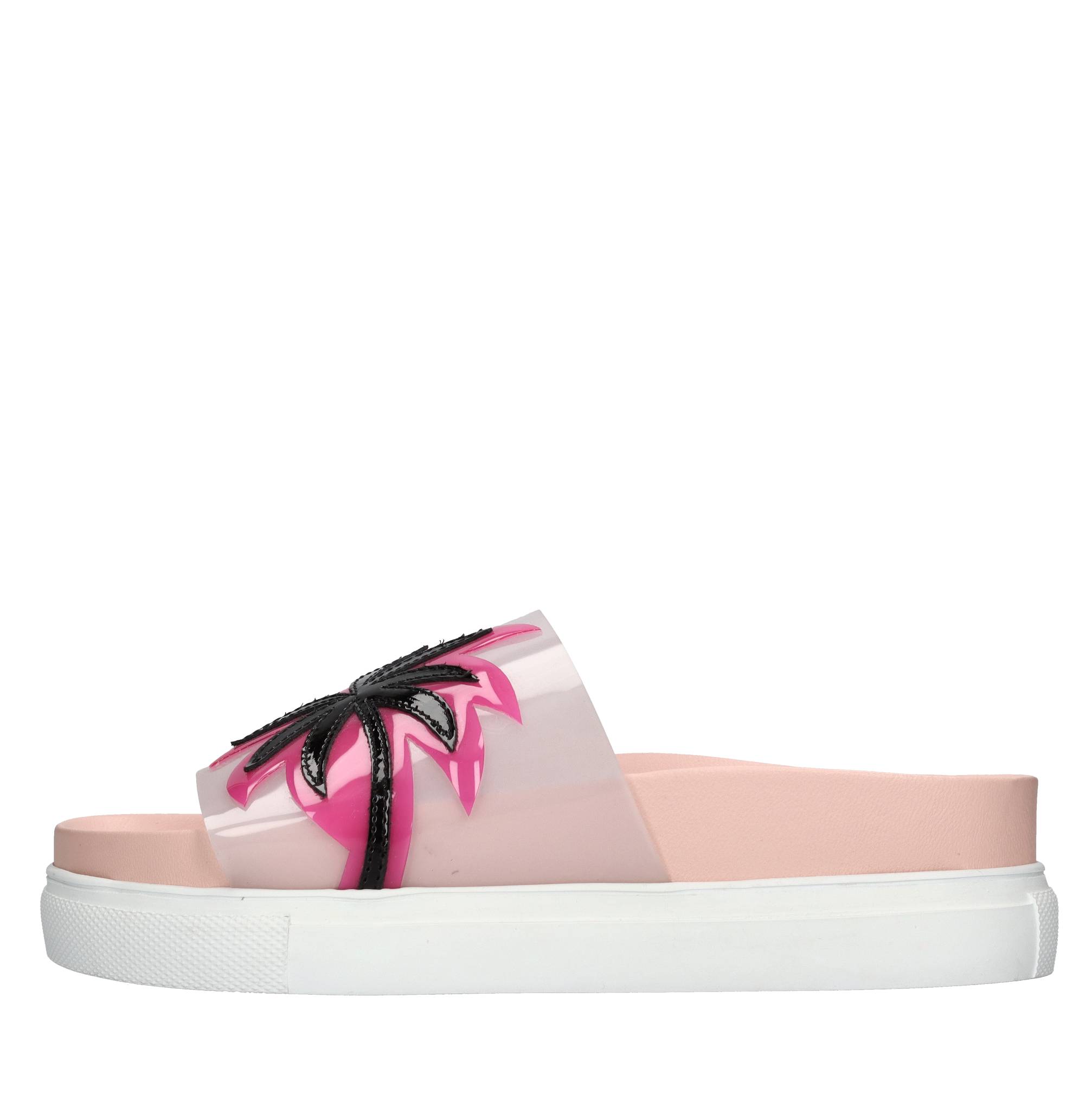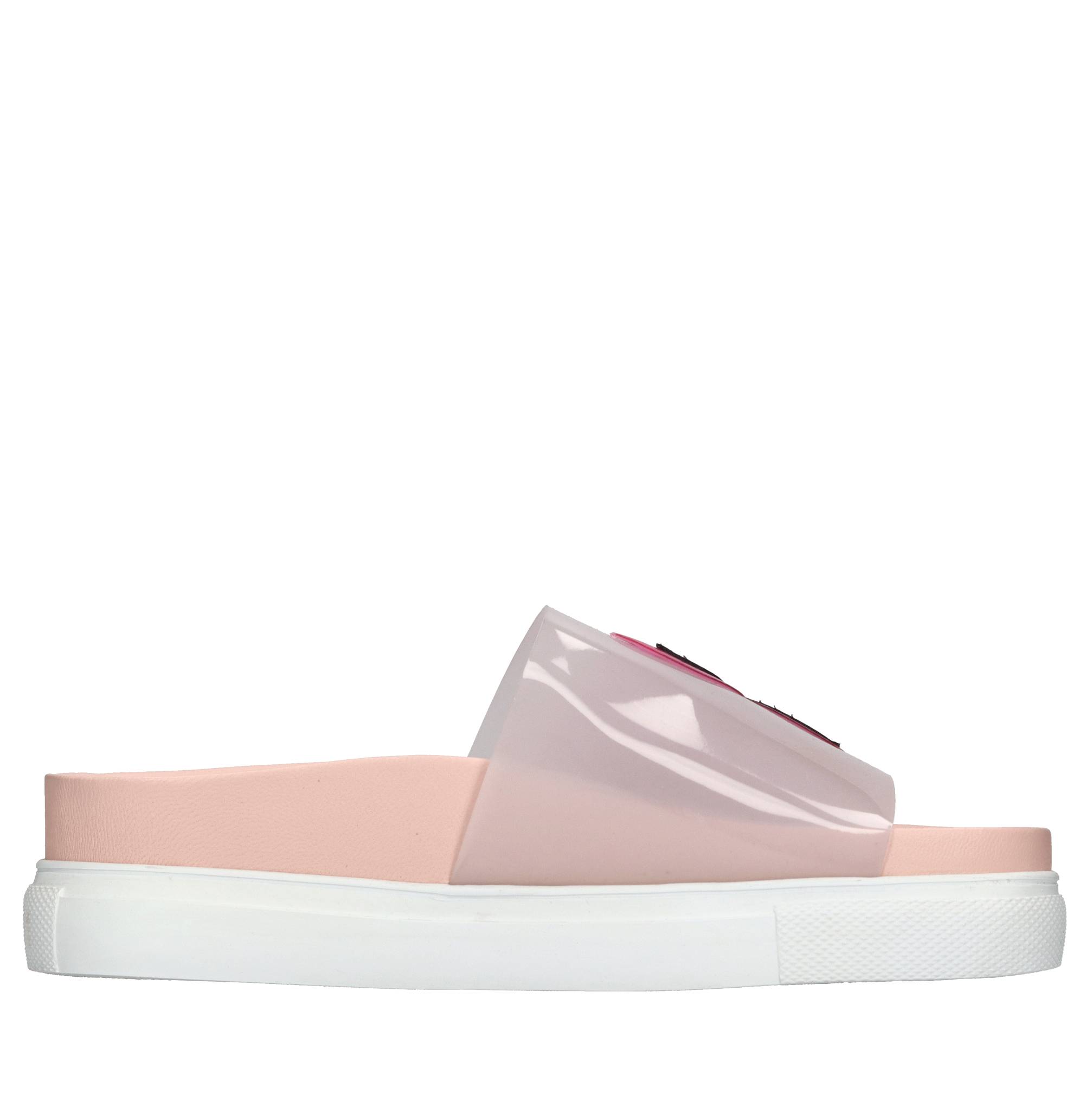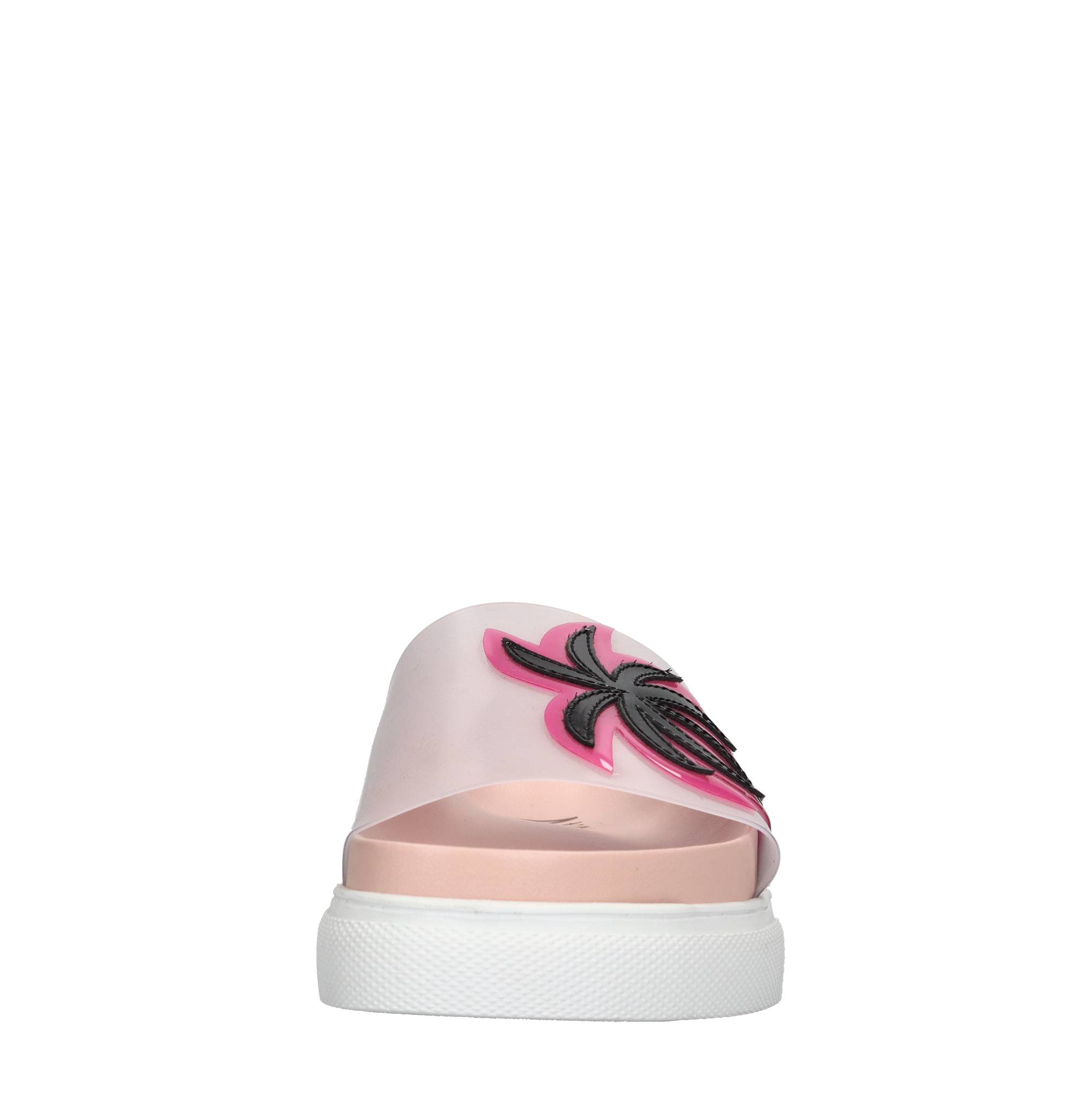 Mules en cuir et plexi. Talon interne: 2,5 cm. Supérieur interne en cuir ligné. Semelle extérieure en caoutchouc.