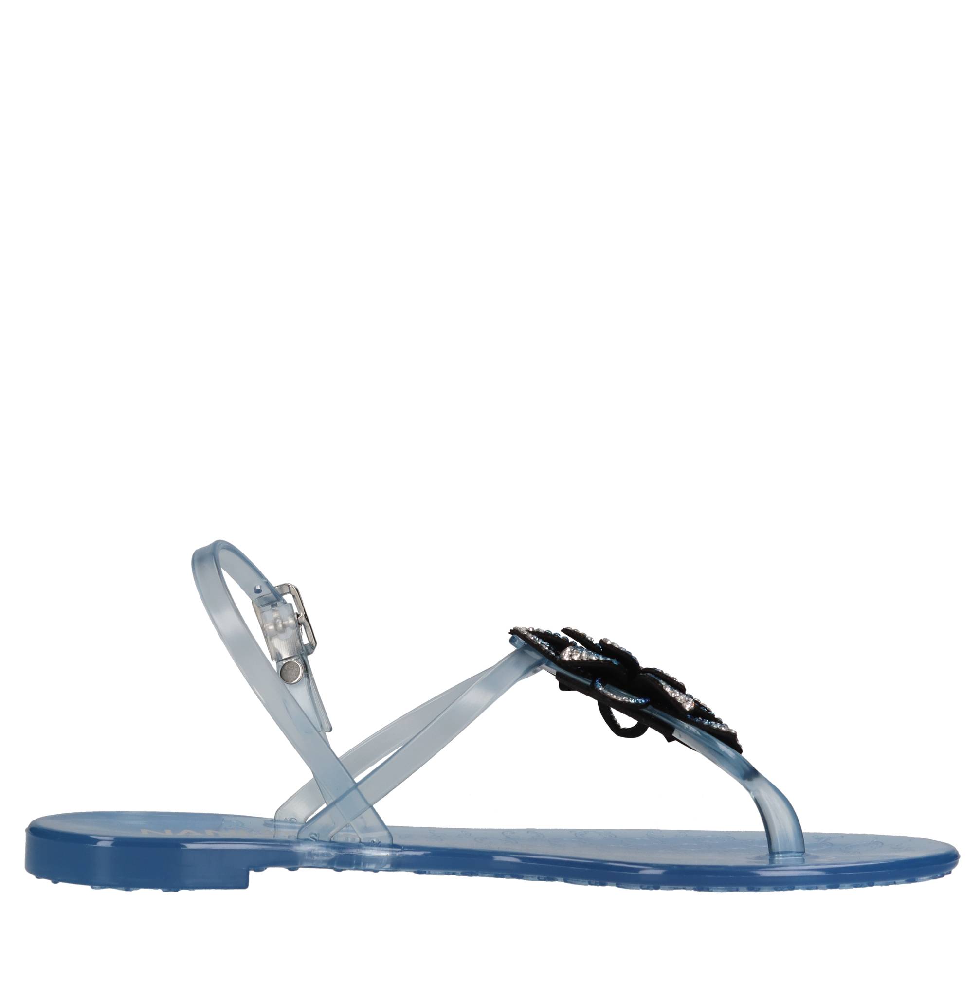 Sandales AURORA en pléxie. Embelli par la fleur en strass. Semelle extérieure plexi. Plexi intérieur supérieur.