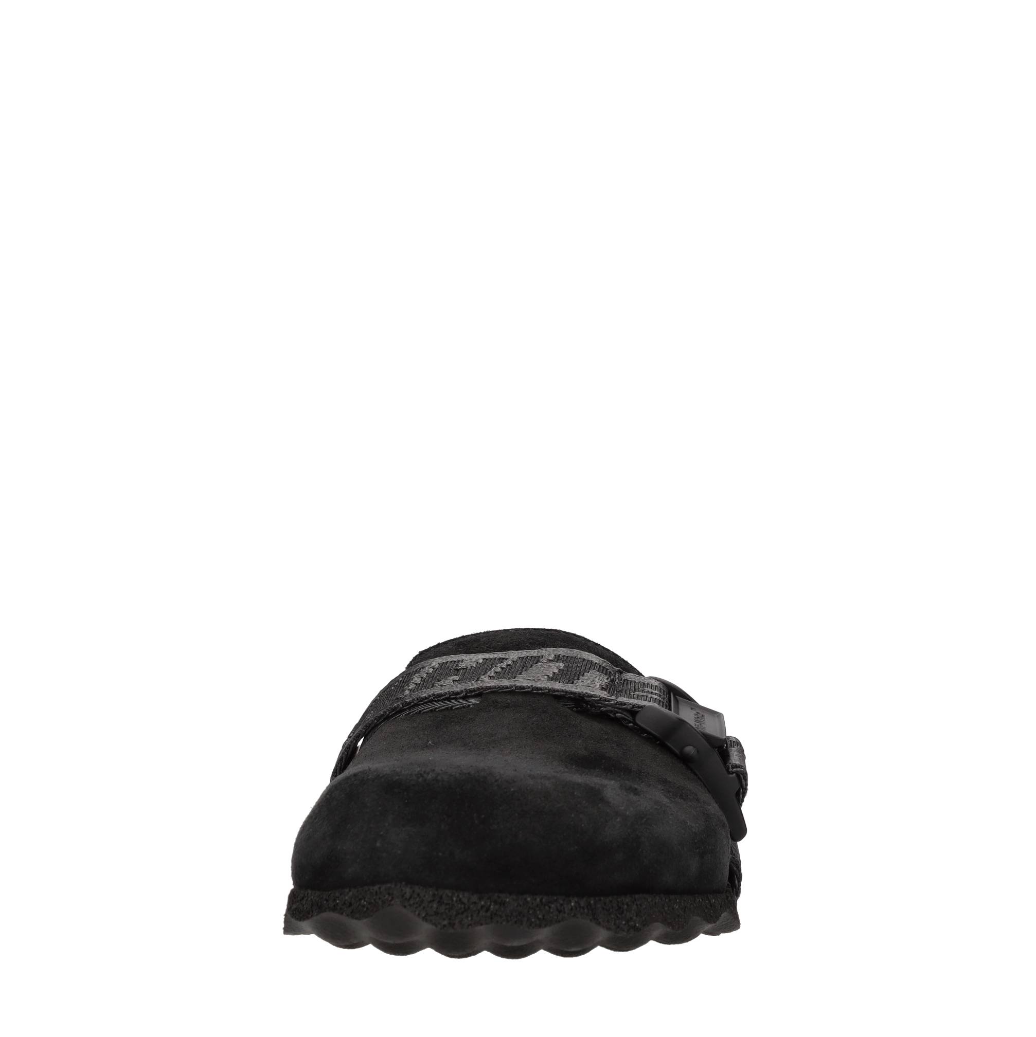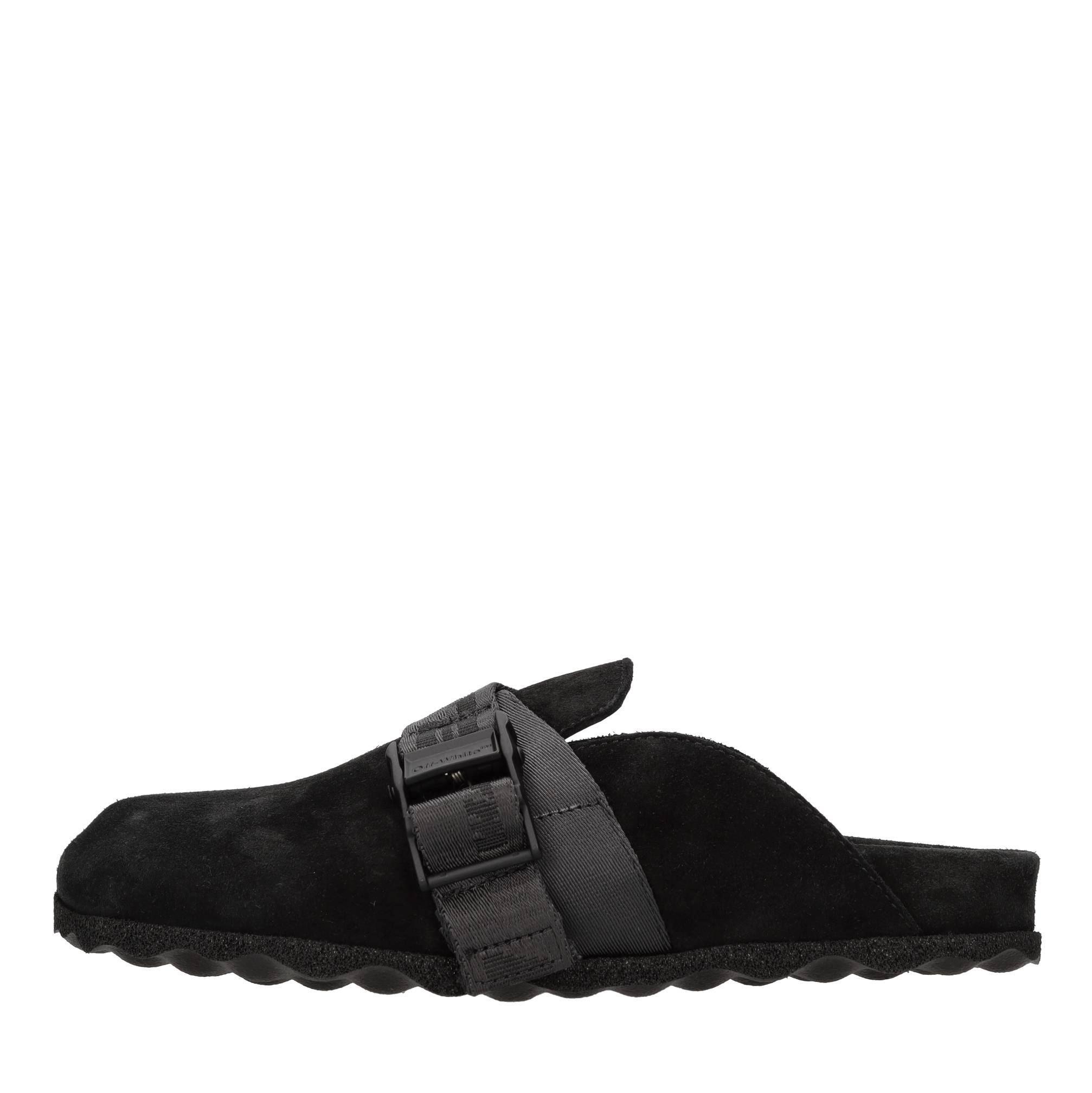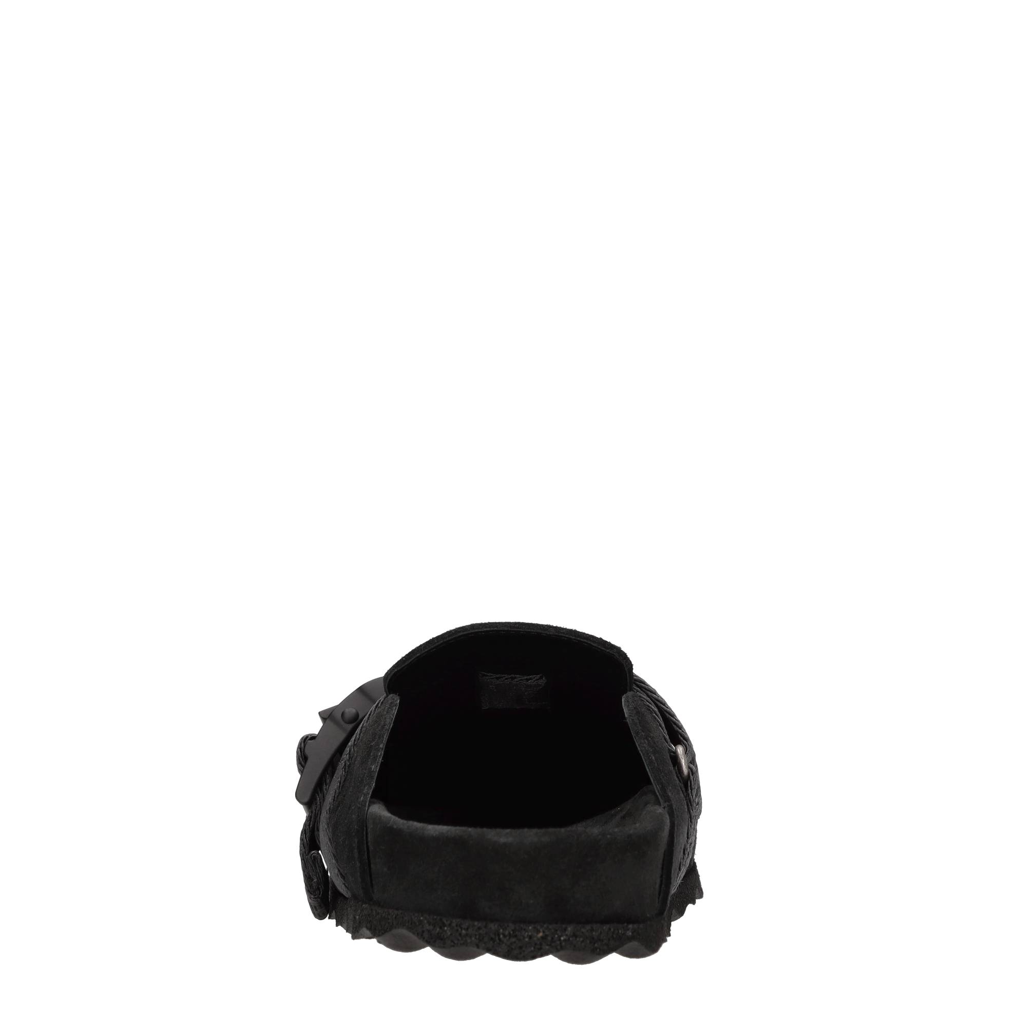Mules en daim. Semelle extérieure en caoutchouc. Dessus intérieur en cuir.