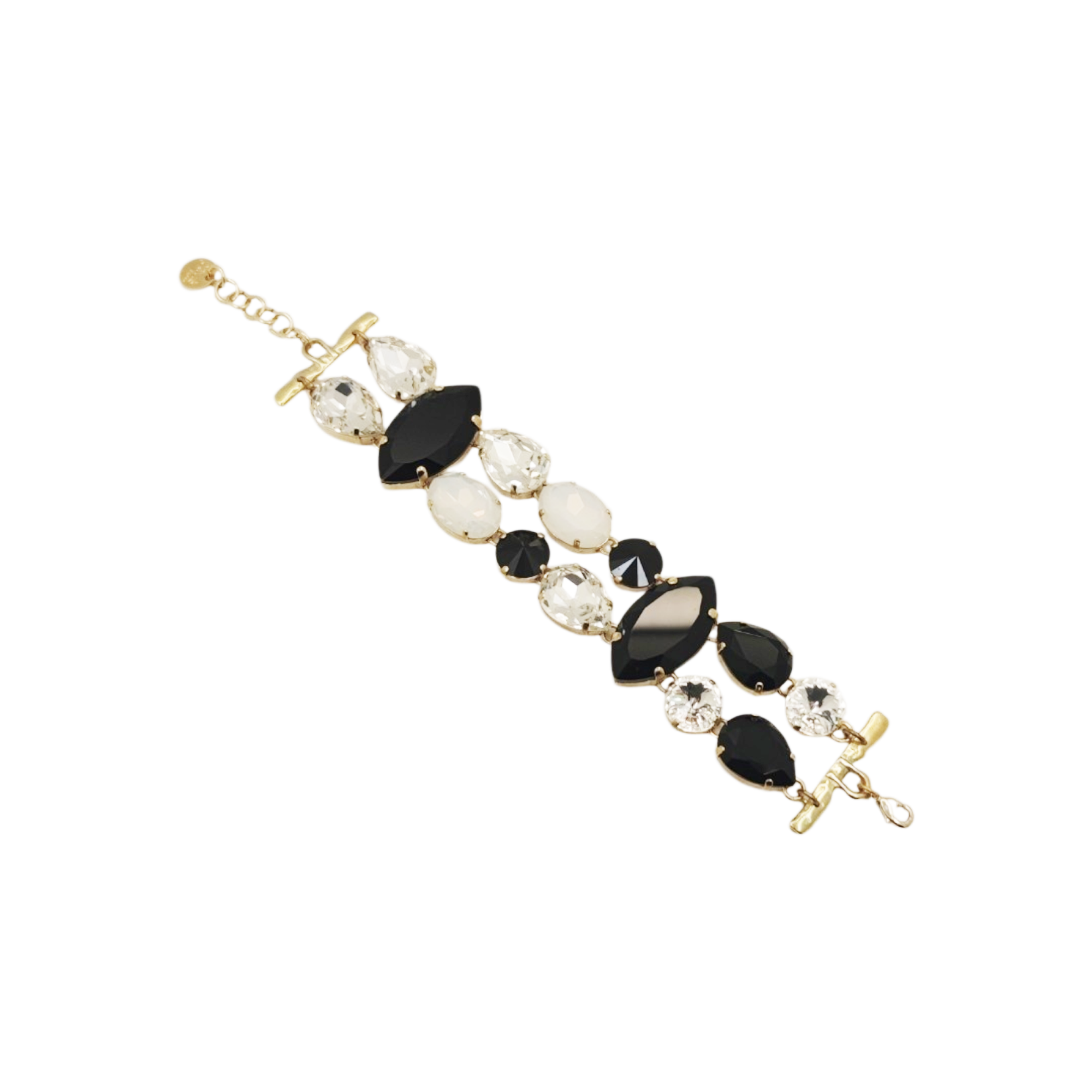 Bracelet en métal doré Multifile Modèle avec Zirconia blanc et noir.
