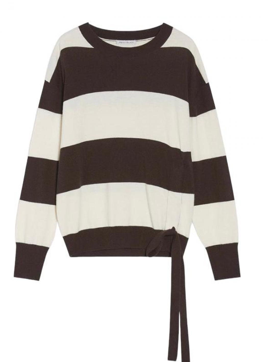 Pull cou rond en tissu mélangé laine, bords côtelés, logo emblème sur le côté gauche, enroulé et réglable avec arc sur le devant