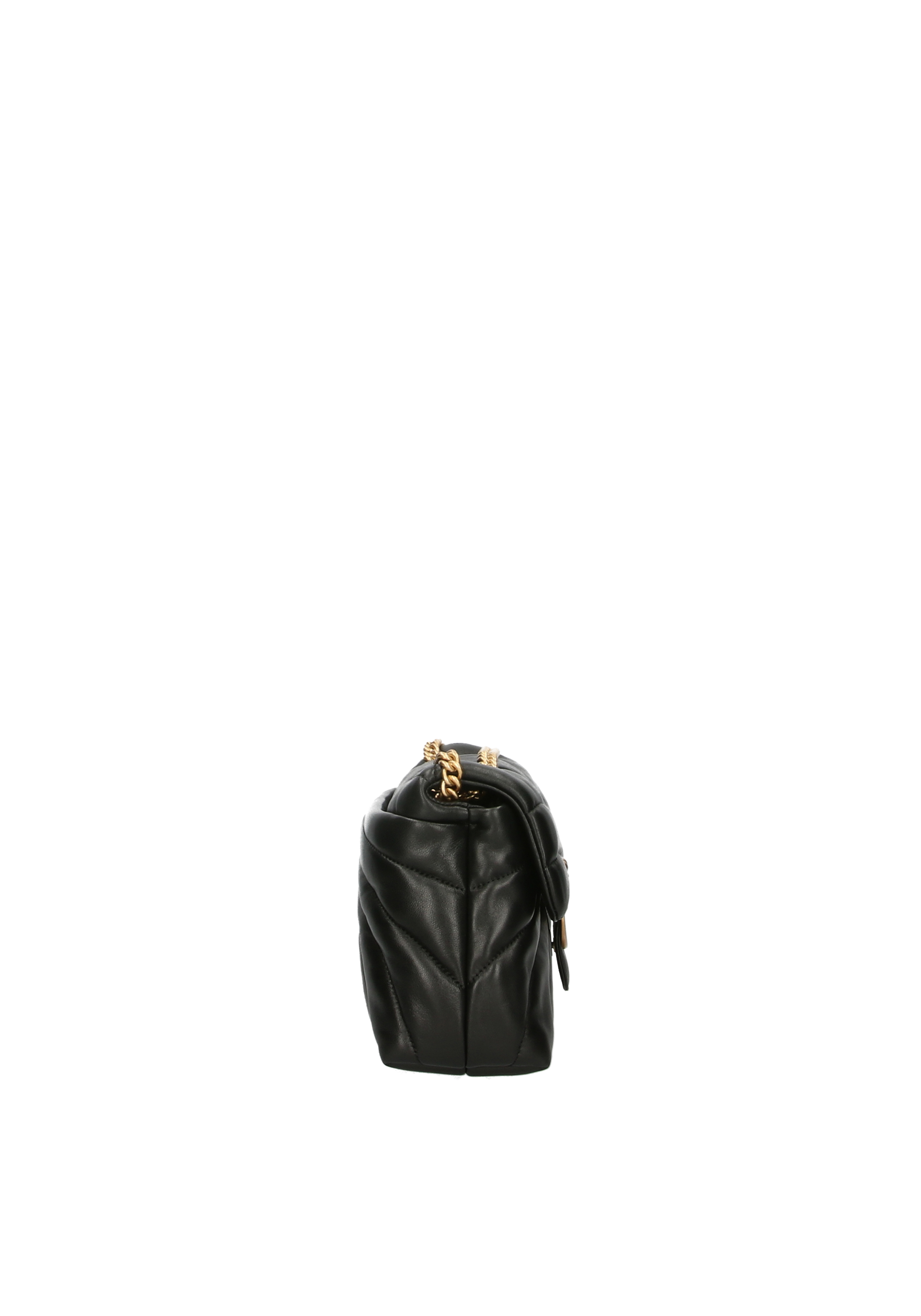 Sac d'amour classique Sac à bandoulière en tassel matelassé doux avec motif papillon. La fermeture du sac est complétée par la boucle en métal, or galvanique antique, avec le logo Love Birds Diamond Cut oiseau, tandis que l'intérieur, doublé de tissu daim-effect, comprend une poche murale et l'agitation fermée avec zip. La bandoulière coulissante combine la chaîne métallique classique à la bandoulière nappa pratique, et peut être doublée pour porter le sac d'épaule.