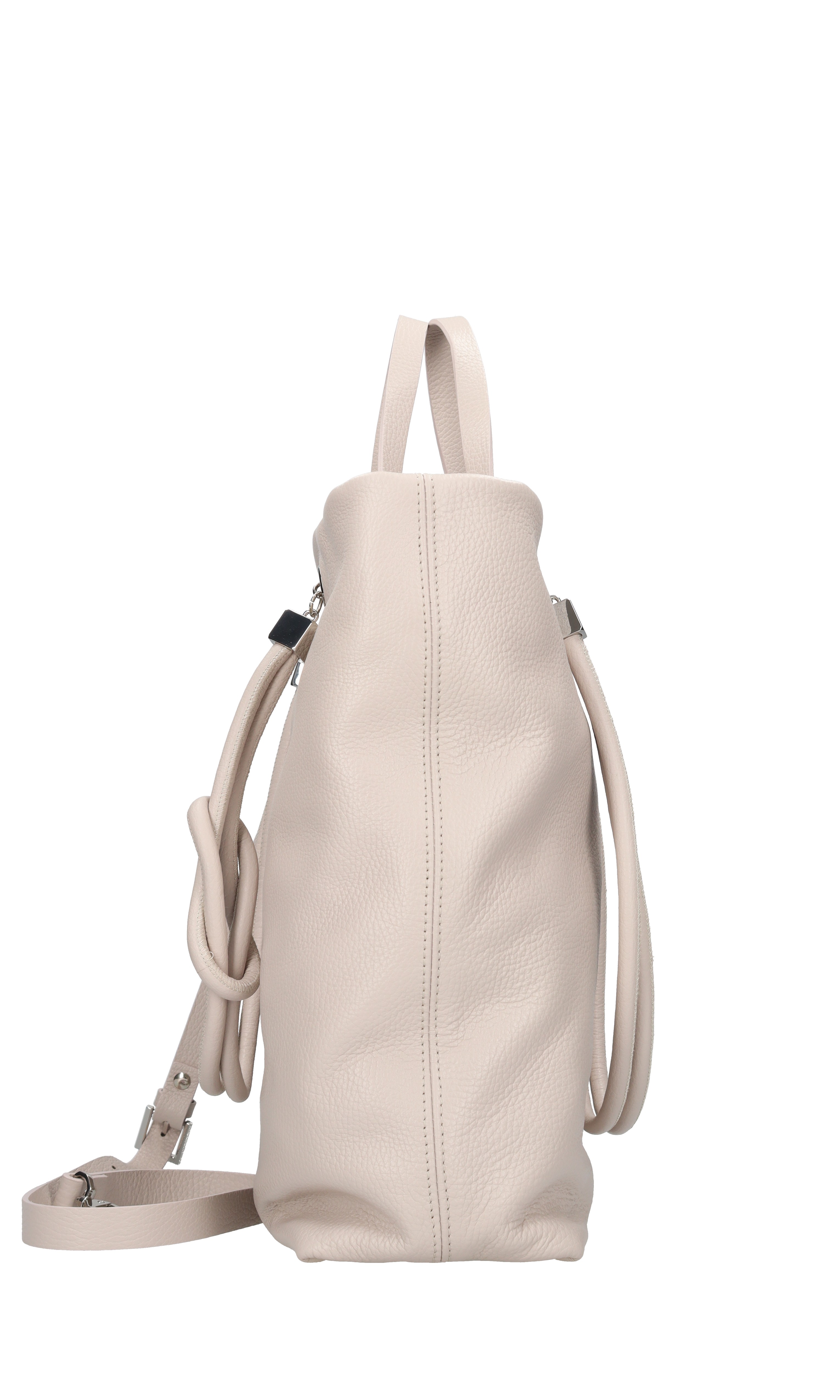 Sac en cuir. 1 compartiment. Fermeture à glissière. Il comporte des poignées de deux tailles et une bandoulière en cuir amovible.