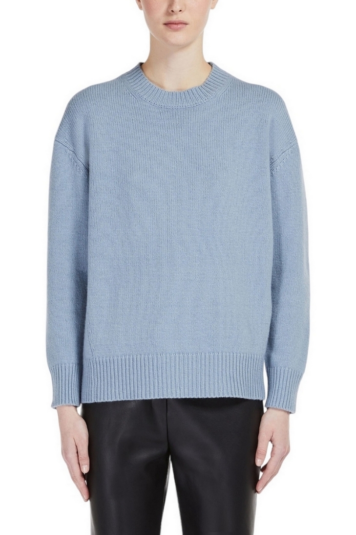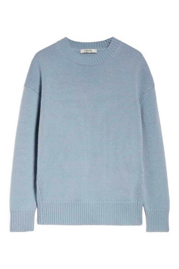 S MaxMara pull en laine et cachemire. Col rond, détails côtelés. En forme. Composition : 80% laine, 20% cachemire.