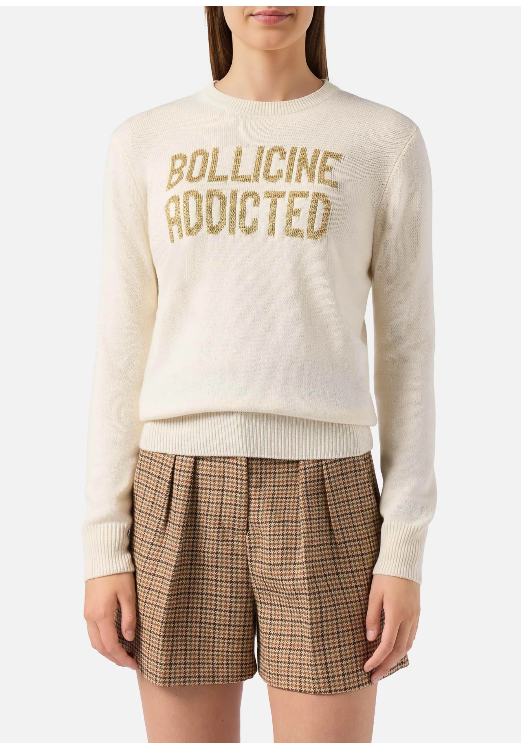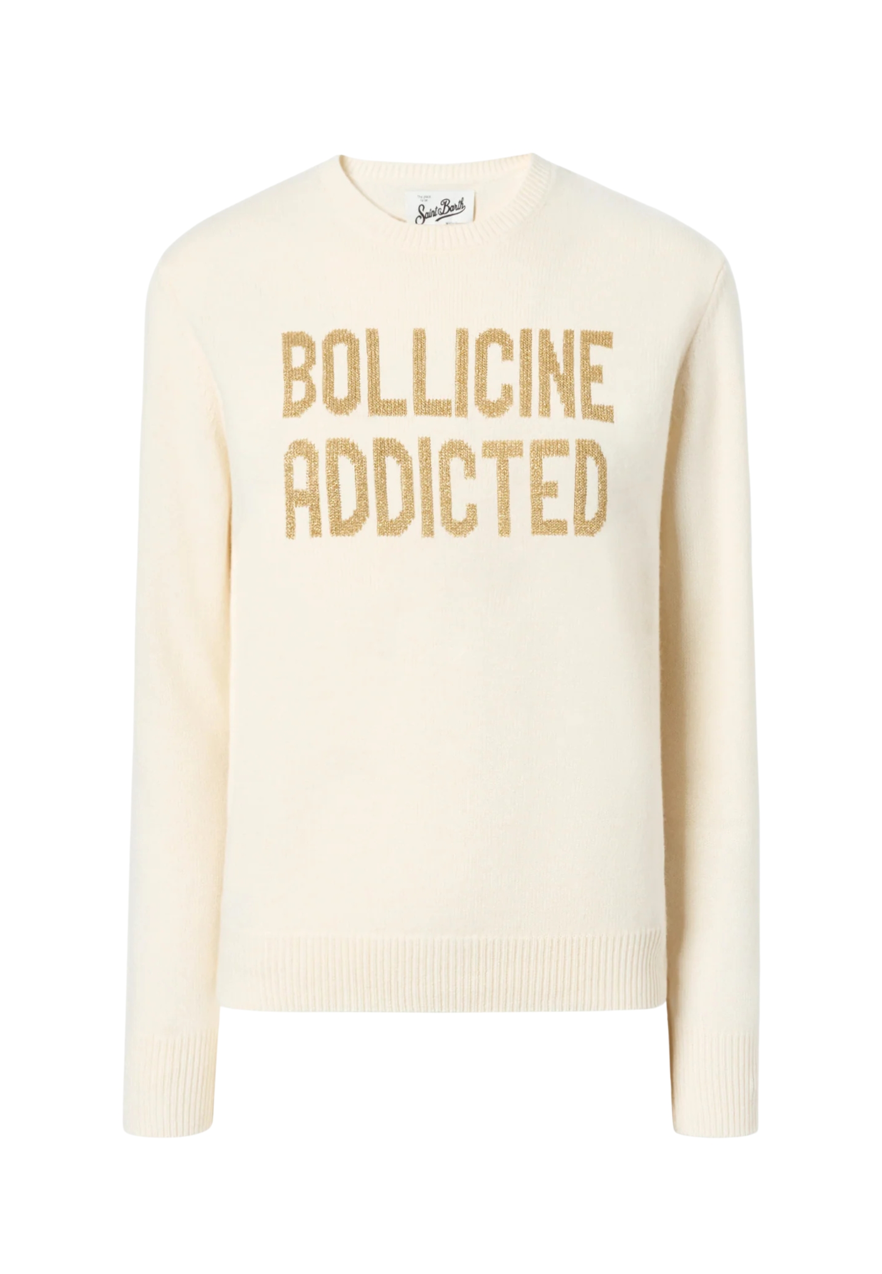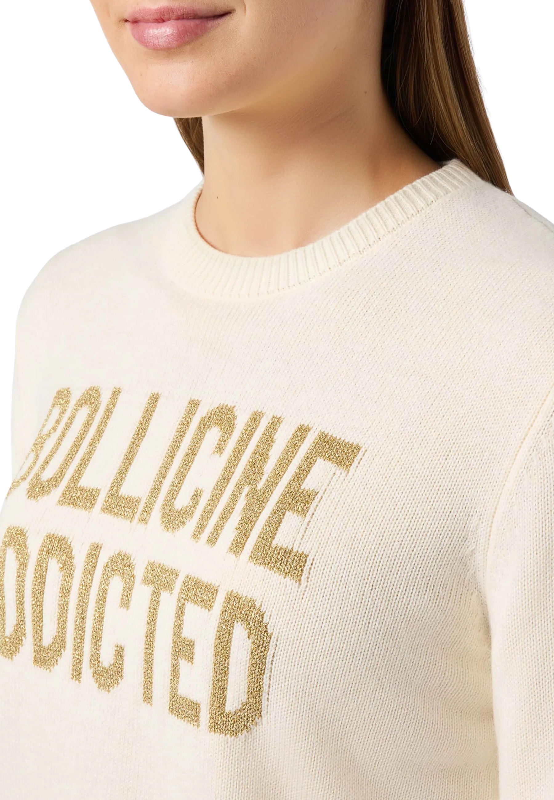 paricollo maille en crème de laine avec lurex or "bollicine addicted".