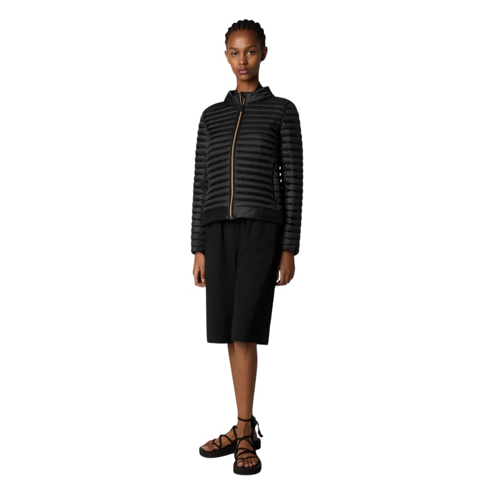 Fabriqué en nylon léger matelassé la veste Alyssa sans animaux comme pour la ligne A avec un col de liste et un détail lisse au bas. Une fermeture éclair brillante et des poches sur les côtés se distinguent par le tirazip personnalisé et le logo rond appliqué sur la manche gauche à la fois ton sur ton.