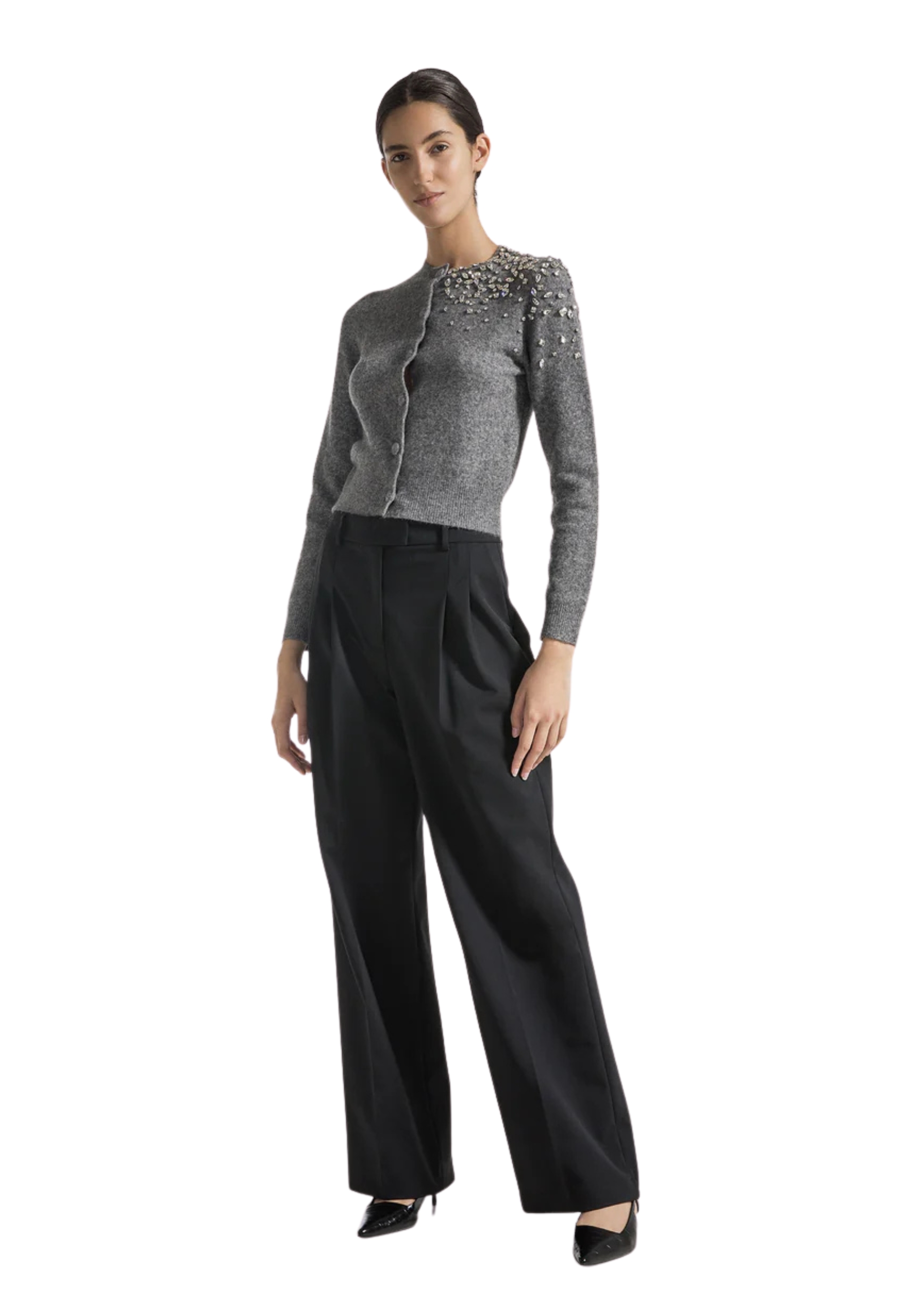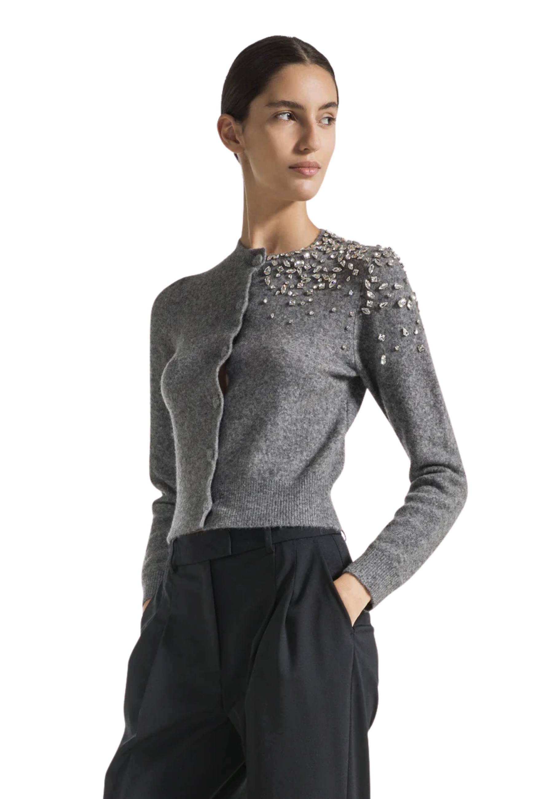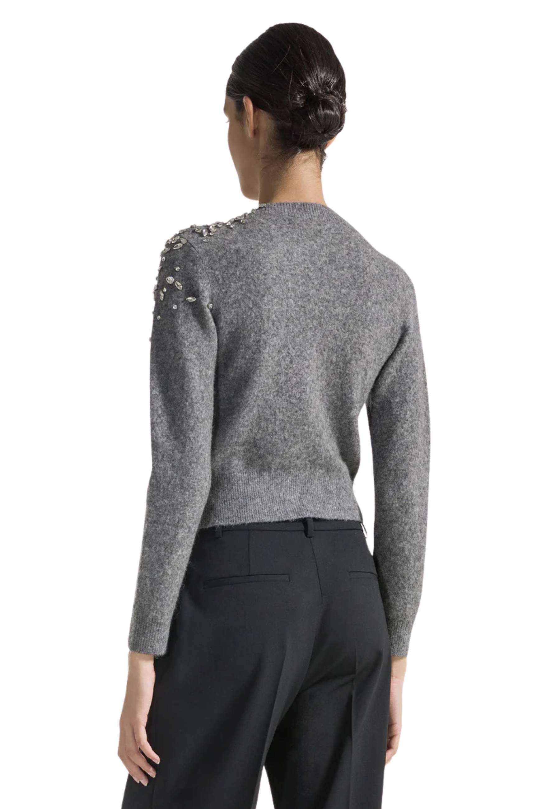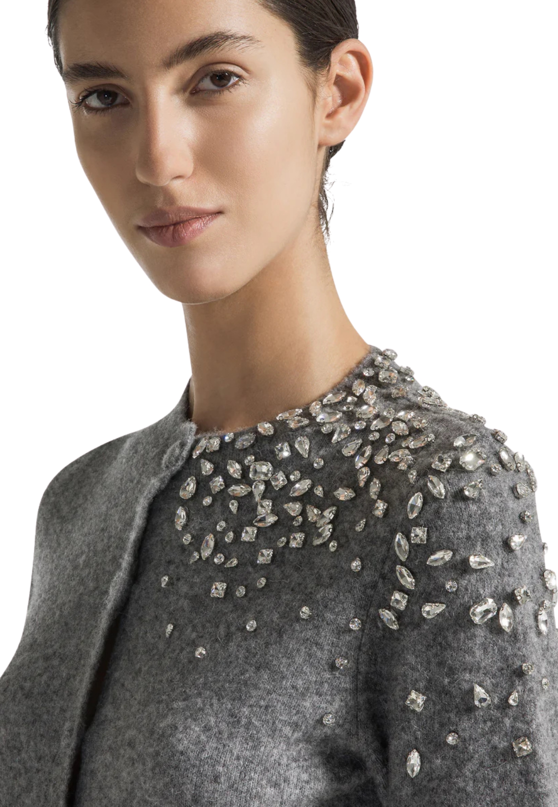 Laine coréenne et bébé alpaga stretch avec bijou de broderie en strass appliqué à la main.